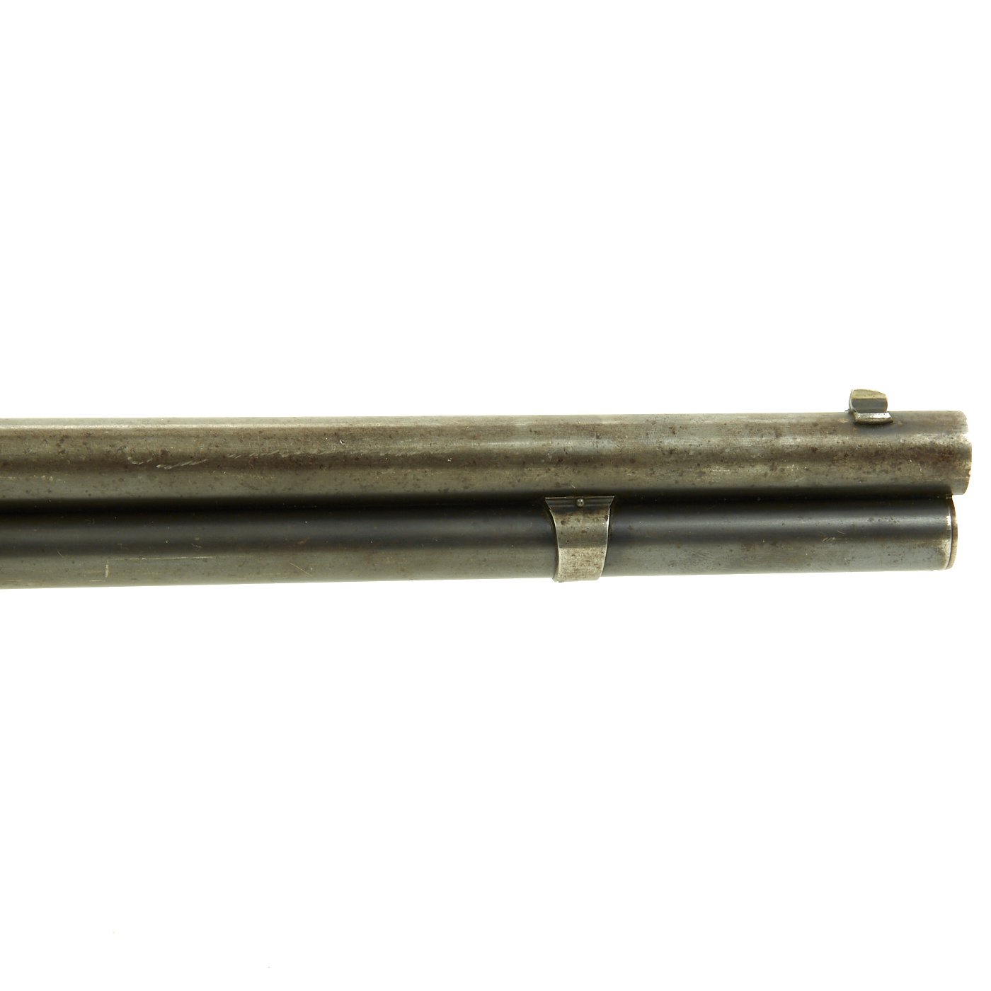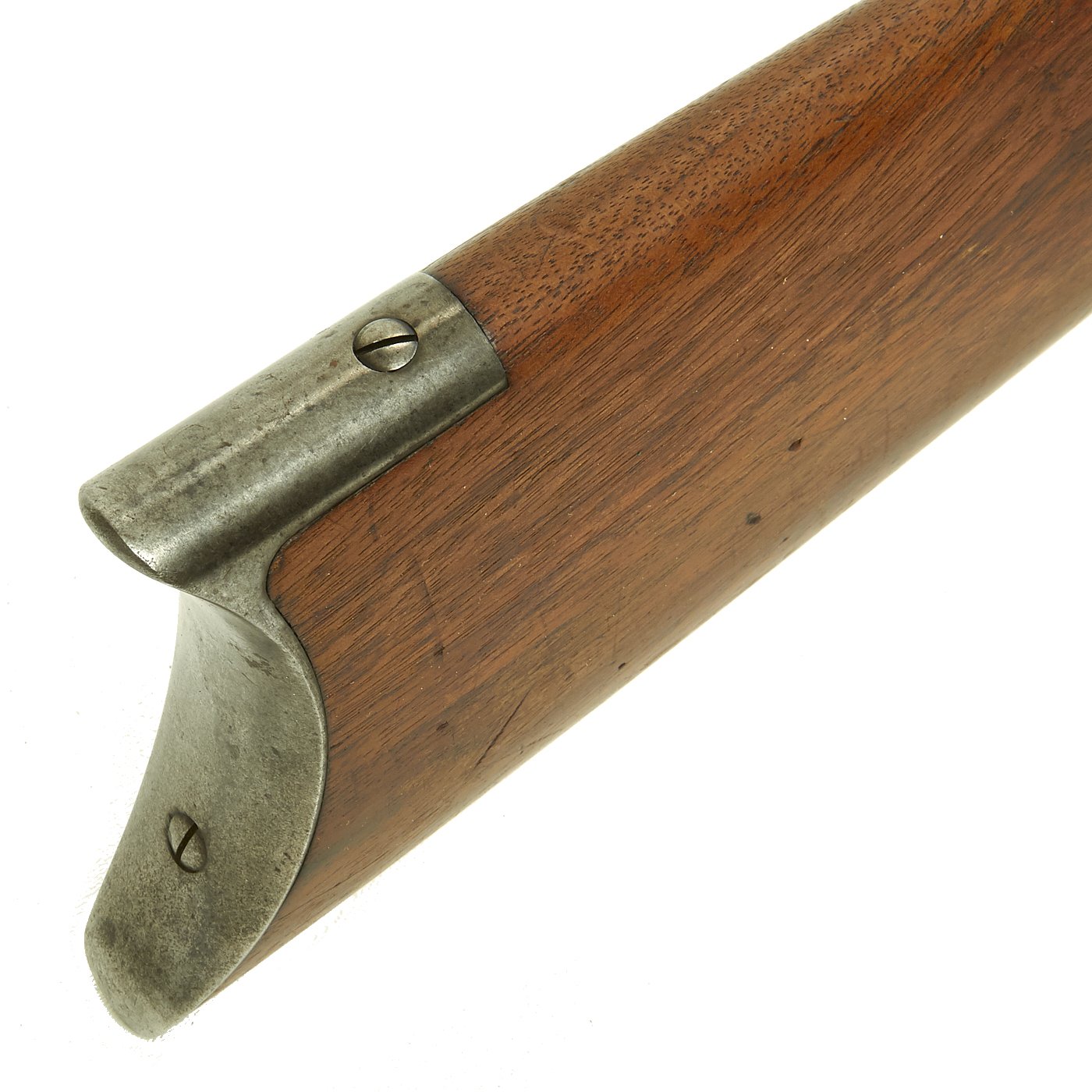 This example is offered with a crisp tight action in fully functional condition. Metal work is very good, still retaining much of the factory finish, with a great lightly worn patina. Barrel markings are fully legible. The bore shows clear lands and grooves, with a partly bright finish, showing some wear and fouling. Probably rates a 6-7 out of 10.