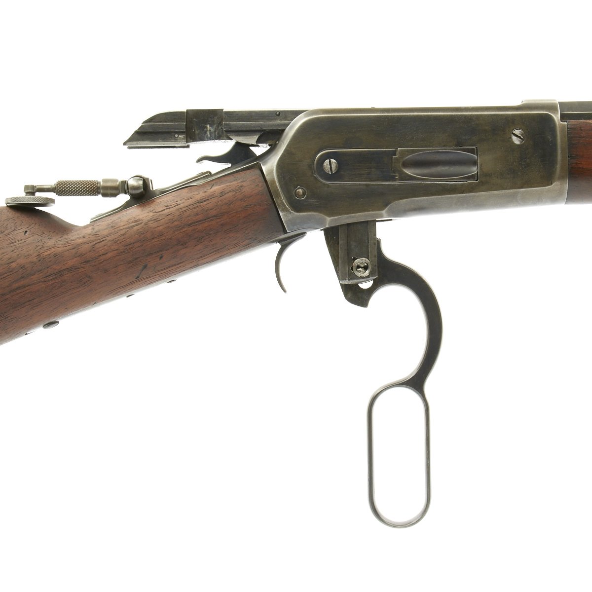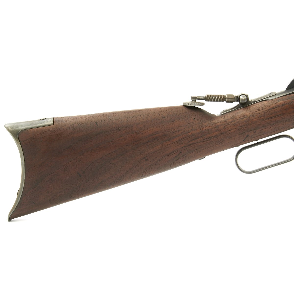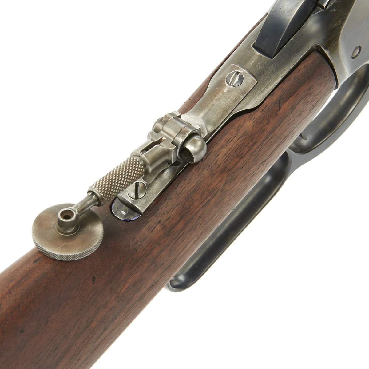 Original Item: Only One Available. This pretty much is the Cadillac of late 19th century big game hunting rifles! Many consider the Winchester 1886 to be the finest lever action repeating rifle ever made! This very fine examle is in .45-70 Government caliber (marked 45-70 over the chamber) with a long 28" barrel, the longest barrel that Winchester made on this model. It also has been fitted with front and rear precision "peep" sights, for a very accurate aim. The original rear sight bed is filled in with a dovetailed insert. The serial number is 99278 denoting the year of manufacture as 1895.