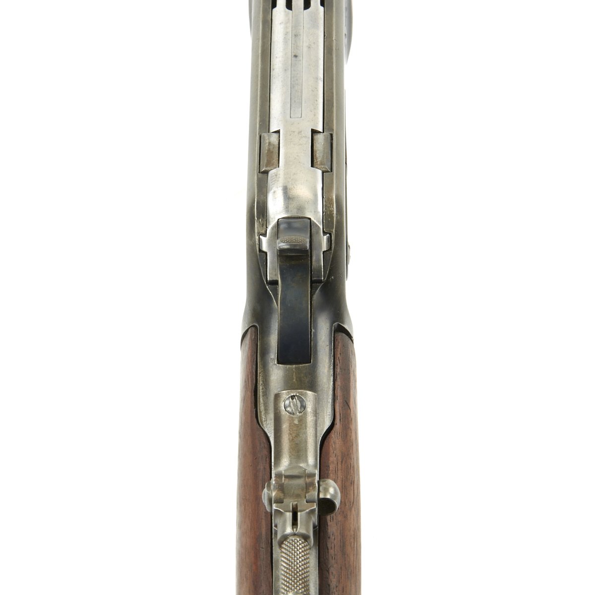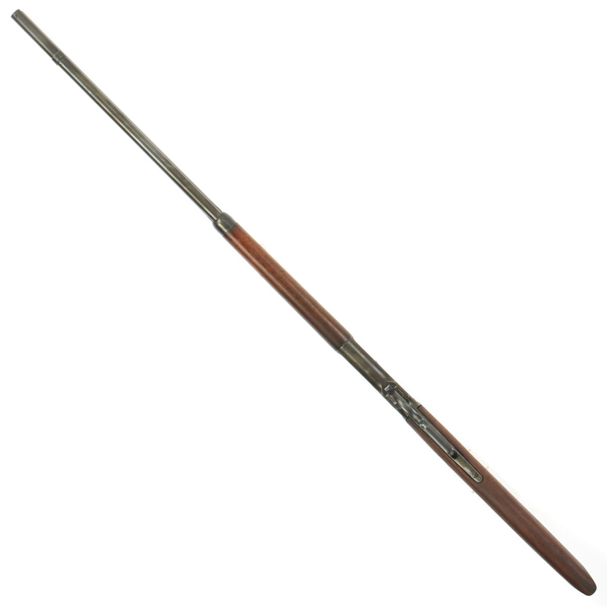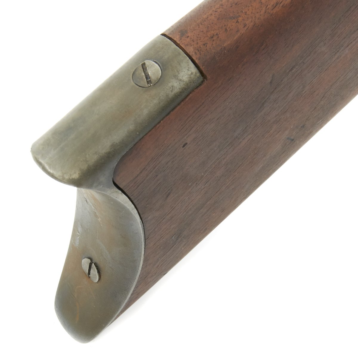 This example is offered with a crisp tight action in fully functional condition. Metal work is very good, still retaining much of the factory blued finish, with a great aged patina. Barrel markings are fully legible. The bore is quite nice, with clear lands and grooves, with a mostly bright finish. There is minimal wear, and just a few areas of oxidation. Probably a 7-8 out of 10.