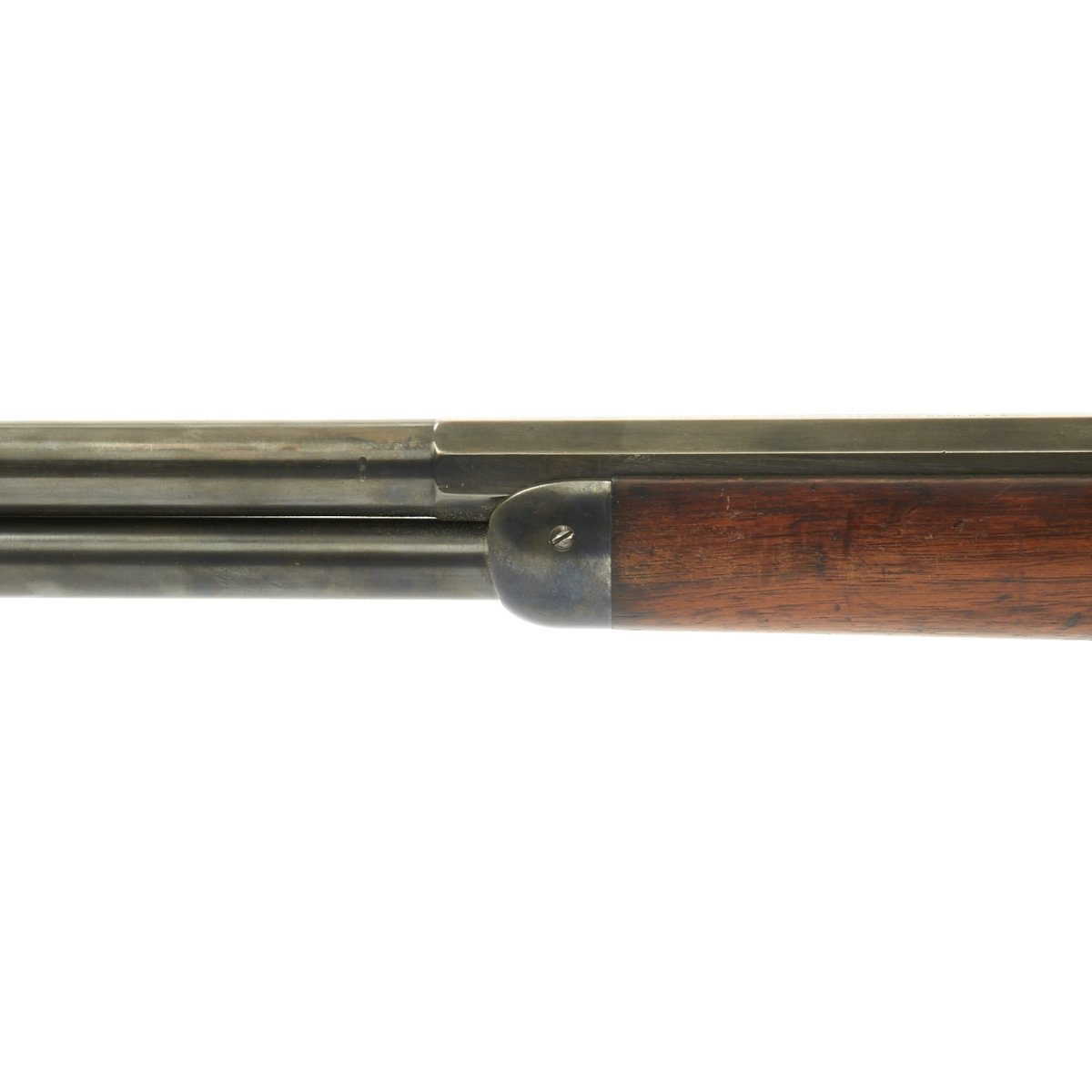 This 1886 has John Browning's OCT. 14. 1884 and JAN. 20. 1885 patent dates stamped on the lower receiver tang. The upper tang simply marked MODEL 1886, and is currently underneath the base of the rear sight.