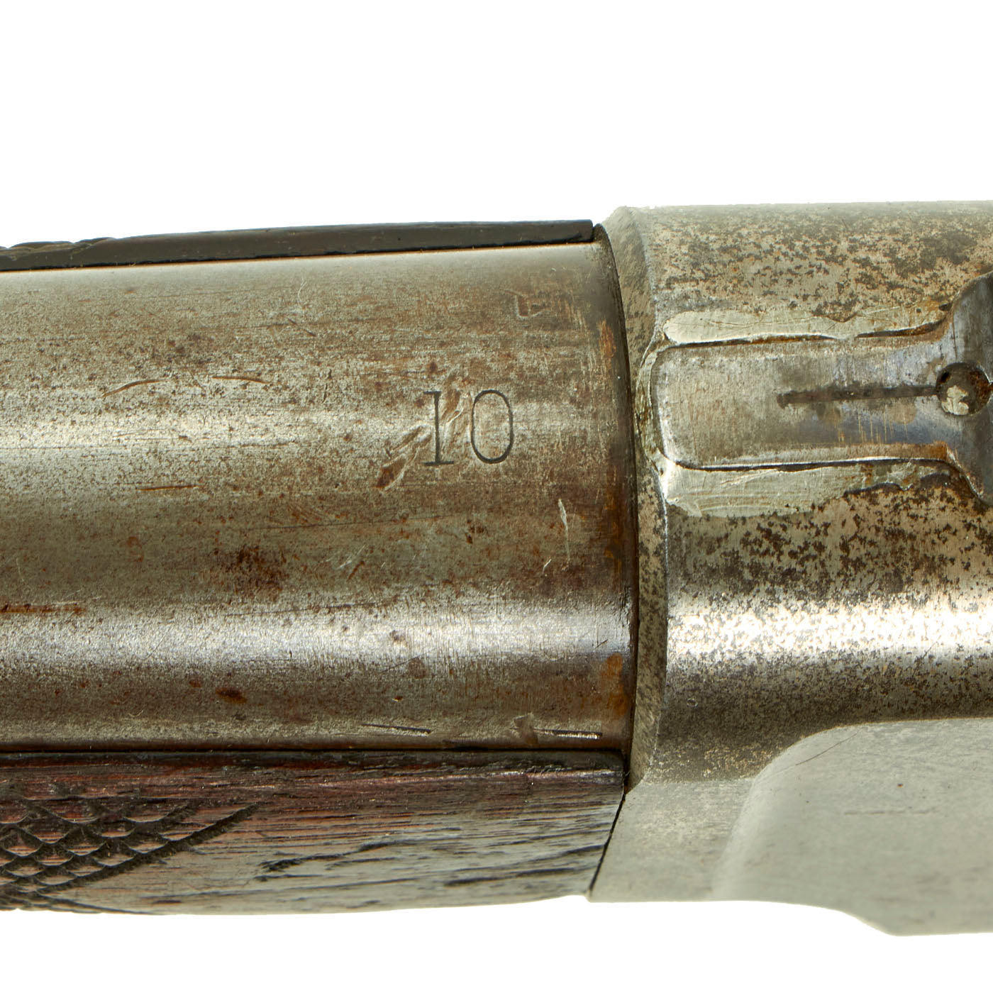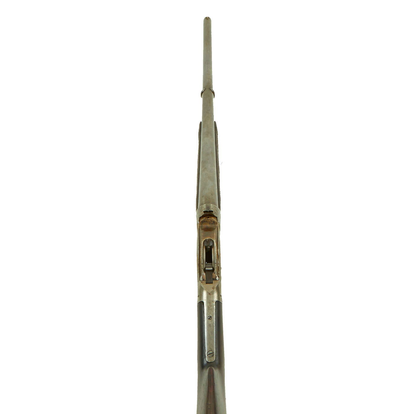 These antique guns are not sold in "live" condition, and are not tested for the the ability to feed or load any type of cartridge. They are sold as collector's items or as "wall hangers" not for use, and we make no guarantees regarding functionality aside from what is stated in the description. Any attempt at restoring an antique gun to be operational is strongly discouraged and is done so at the risk of the customer. By purchasing an antique gun from IMA you thereby release IMA, its employees and corporate officers from any and all liability associated with use of our Antique guns.