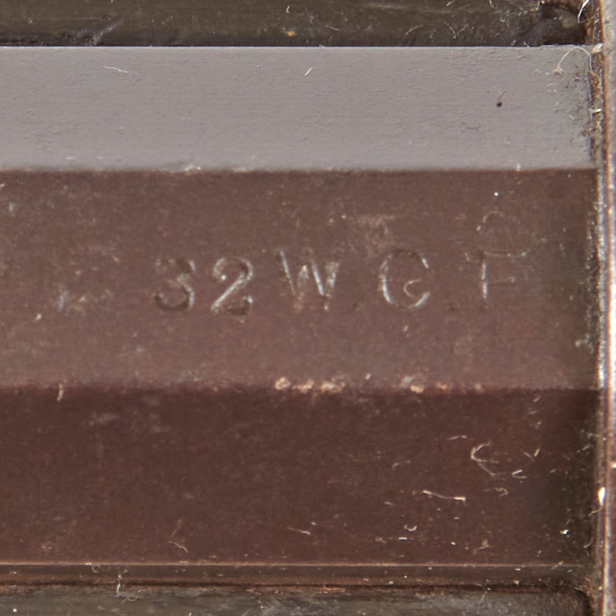 The metal work is a nice aged patina, with the finish overall now showing a dark plum color. There is some evidence of past peppering, now cleaned away, but no major pitting or major oxidation. We can see that some of the screws are a bit chewed up from servicing in the past, while others have been replaced. The magazine tube also looks to have been replaced with a factory original. The action is in fully functional condition and cycles well, with no sticking or excessive slop. The bore is in very good condition, showing a mostly bright finish with clear lands and grooves. There is evidence of past oxidation and fouling, now cleaned away, but overall it is quite nice, probably rating about a 6-7 out of 10. We did notice that there is a bit of a counterbore at the muzzle, probably from removing damage.