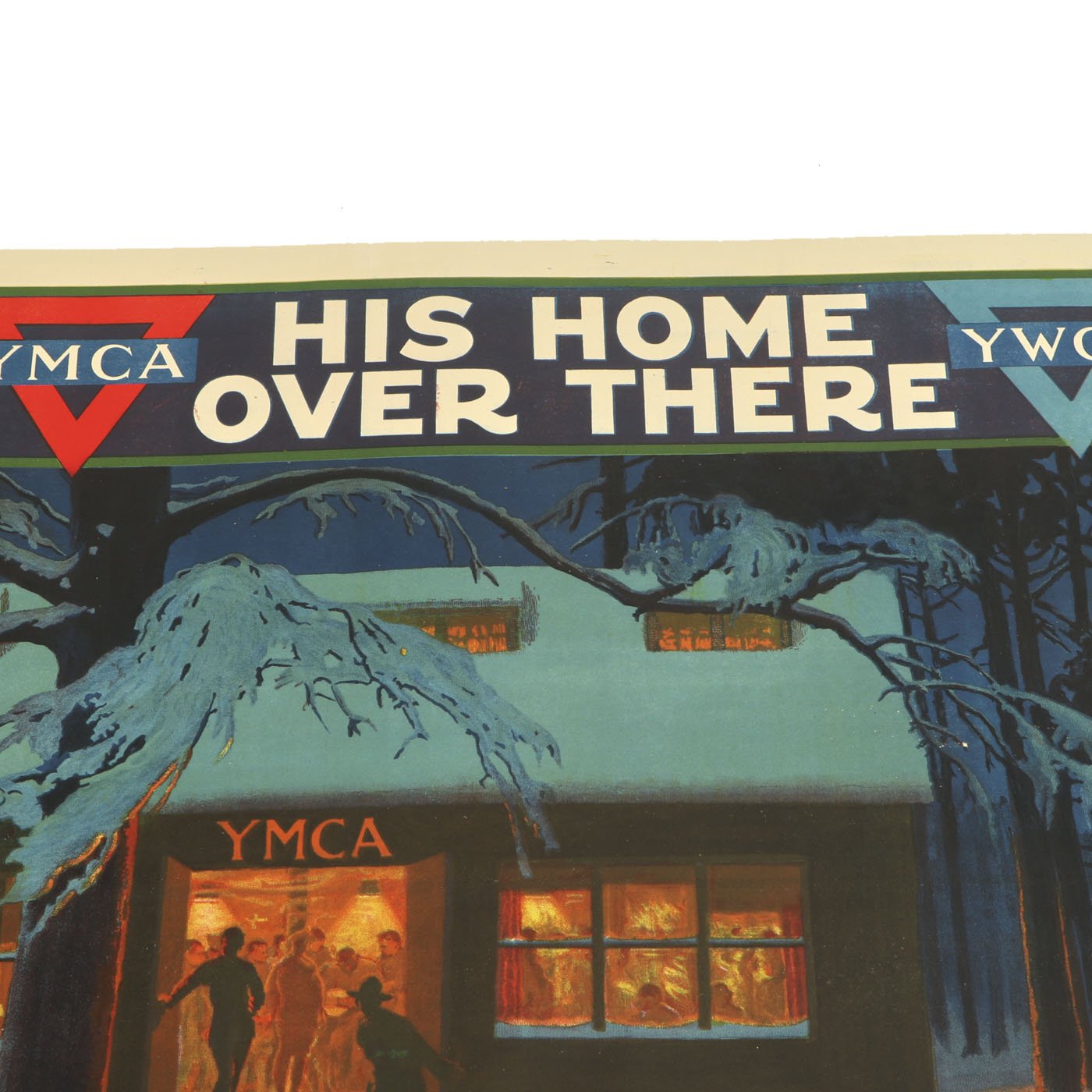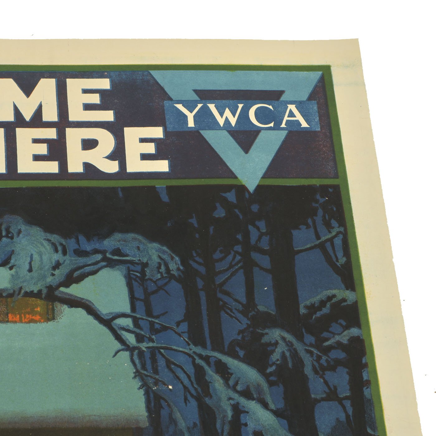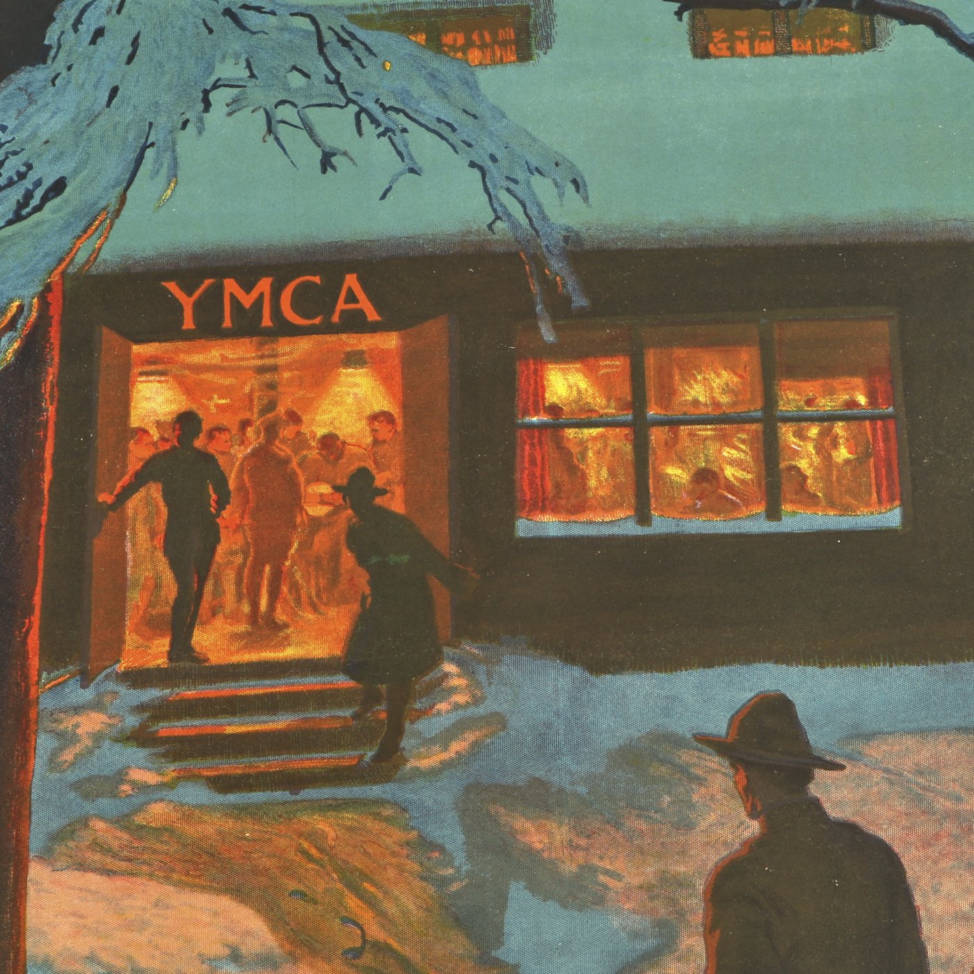 “His Home Over There” was one of many posters issued during World War I to encourage support of the war. The poster features men standing in the snow entering a cozy building labeled the YMCA. At the top of the poster, the insignias of the YMCA and the YWCA are placed with the caption, “More than 2,000 such homes for our boys- United War Work Campaign, November 11-18.” According to researcher Michelle Ule, during WW1 the YMCA provided for 90% of the general welfare to American troops numbering over 4 million with the help of 26,000 paid workers and 35,000 volunteers. They provided entertainment for the troops and managed the US mail, helping soldiers write letters to loved ones. They also provided morale boosters with religious activities and even set up roller skating rinks. They also provided coffee, tea, donuts, and cigarettes at mobile canteens, where soldiers from the front lines could come a relax and recover. The Young Women’s Christian Association, or the YWCA, aimed to support the war efforts as well. During WWI, the YWCA was responsible for forming work councils, operating hostess houses on camp grounds as well as manufacturing areas. Their mission was to do its share for men in uniform, with its main purpose to meet the needs of women and girls, including the wives and families of servicemen, nurses and employees at military posts, workers in war industries, and others directly affected by the emergency needs of the nation. The local YWCA formed a patriotic league for its members and concentrated on food conservation and Red Cross work. Throughout the Great War, the YMCA and YWCA made significant and critical contributions to the war effort (MDHS Library Department, 2014).