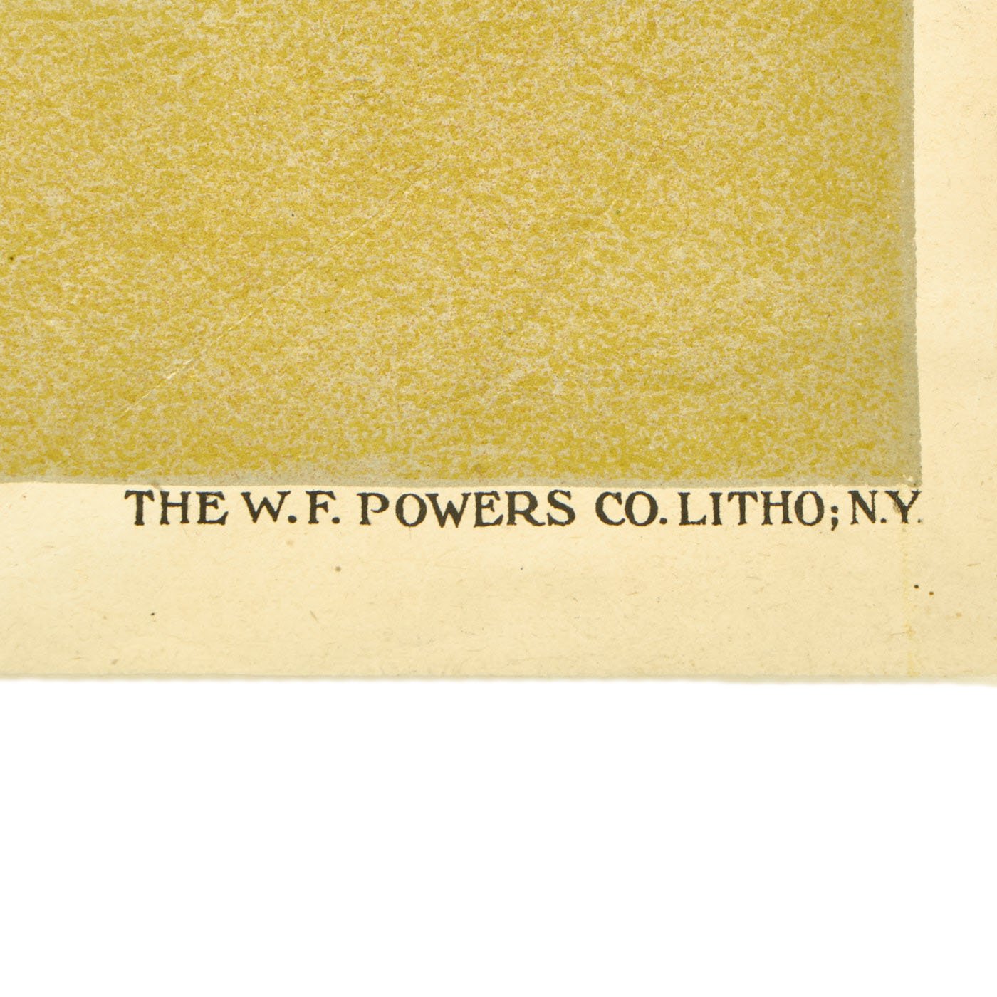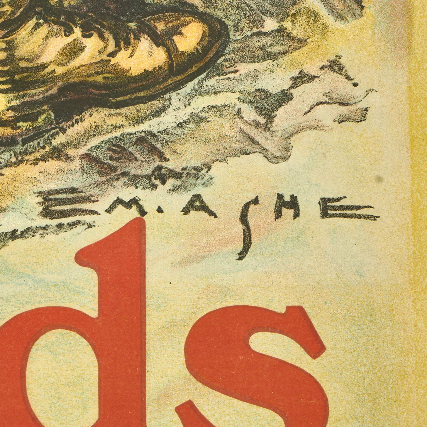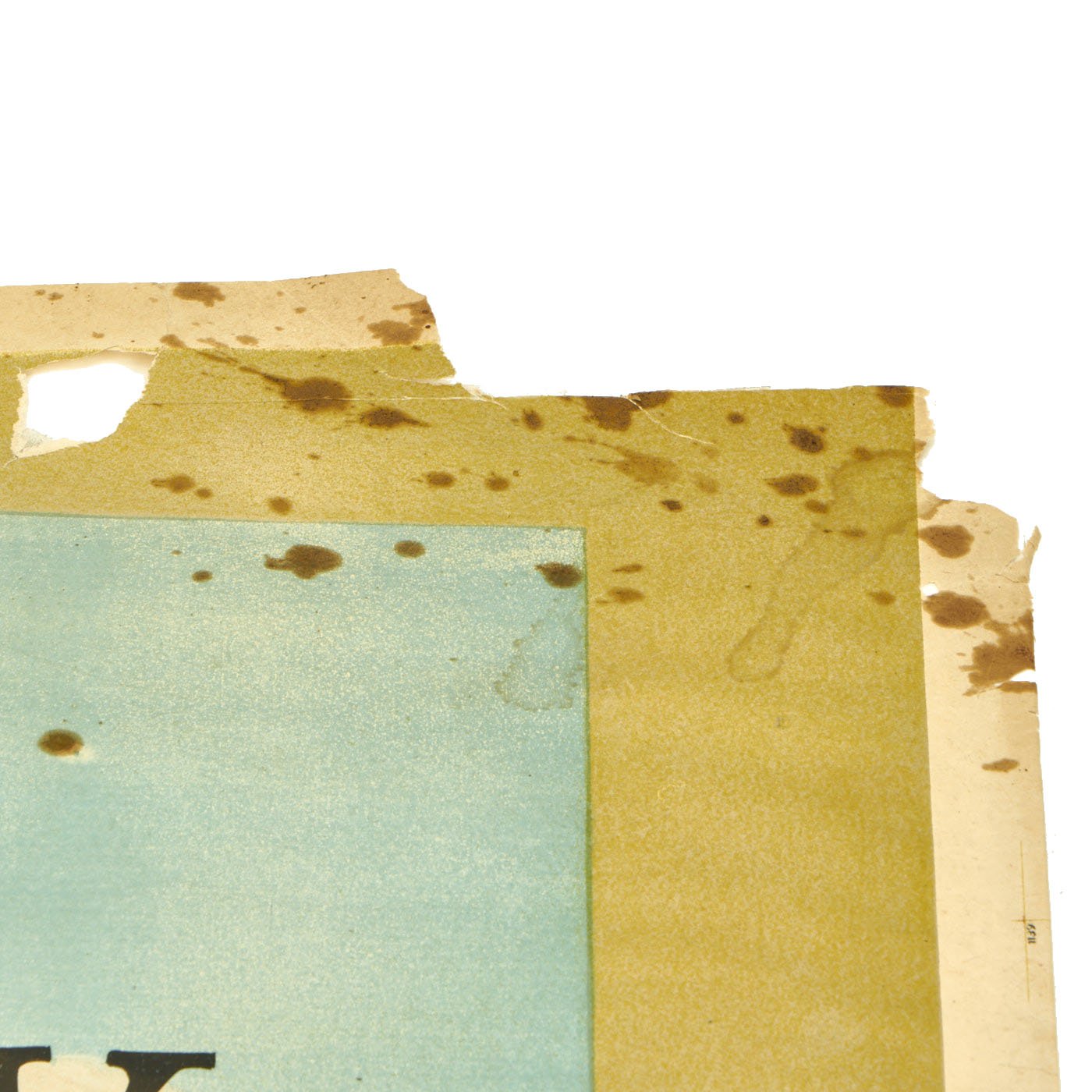 Original Item: Only One Available. This powerful and dramatic WWI poster is the only known war poster designed by the newspaper correspondent and artist Edmund M. Ashe. An American Army doughboy hurls a hand grenade as German soldiers with glistening bayonets look up from the protection of their trench. Smoke billows from something burning in the distance in a hellish war scene adding emphasis to the poster’s message to “Lend As They Fight – Buy War Bonds To Your UTMOST!”. The lower margin indicates “The W.F. Powers Co. Litho, N.Y.”. Measures 40.75" x 26.75"