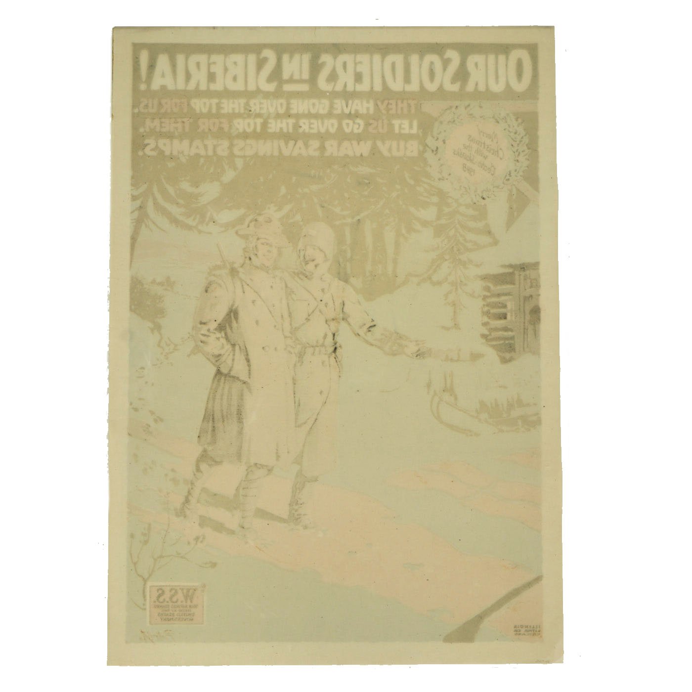 Original Item: Only One Available. Our soldiers in Siberia! They have gone over the top for us. Let us go over the top for them. Buy War Saving Stamps. Merry Christmas with the Čecho-Slováks, 1918.