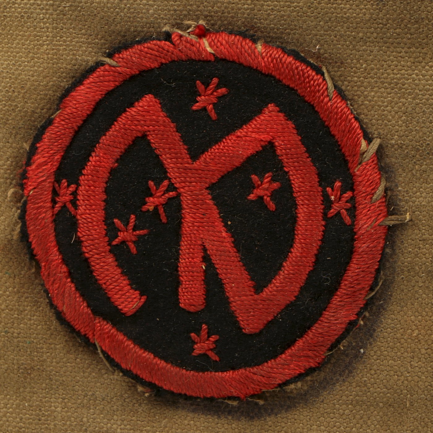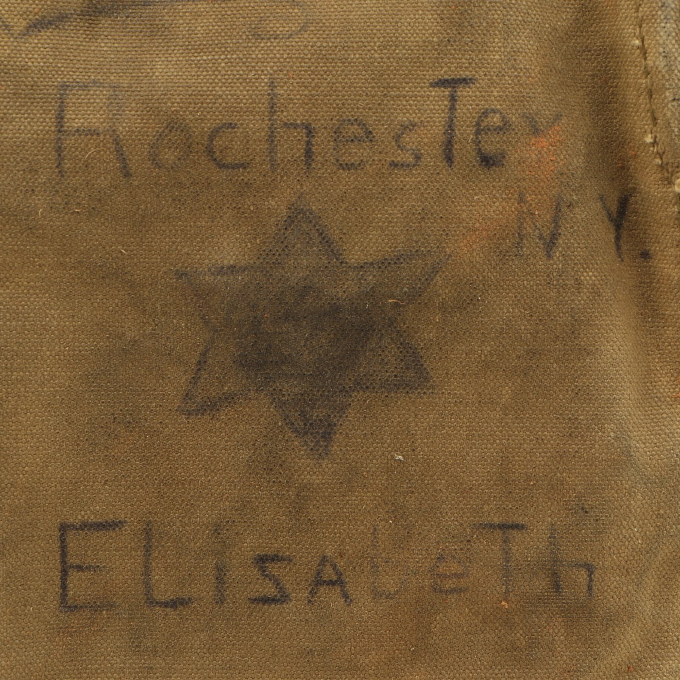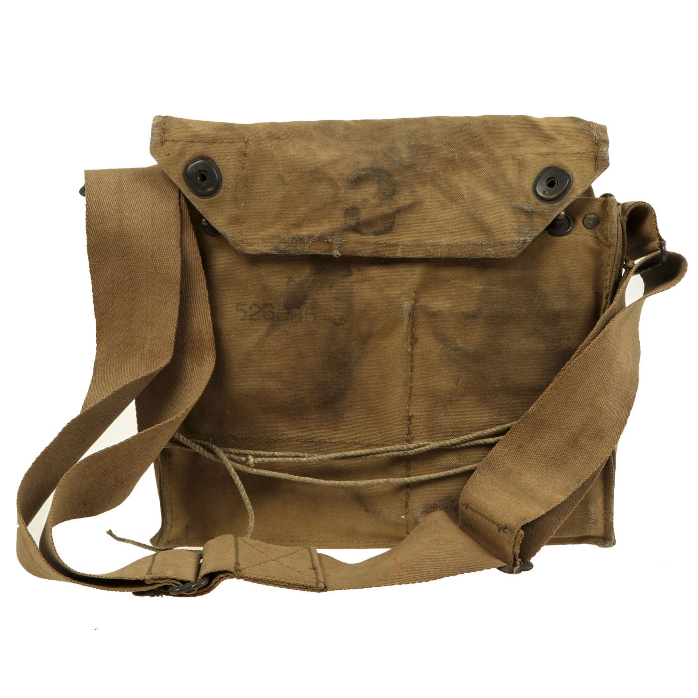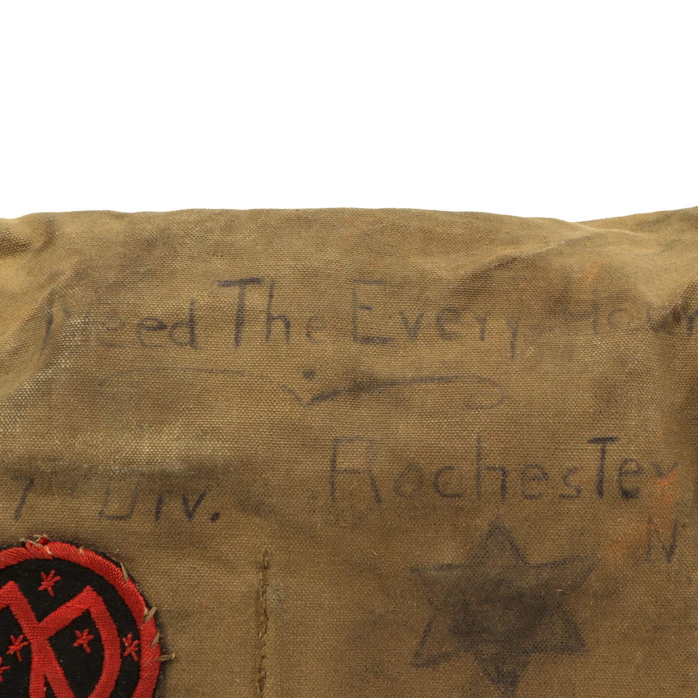 However, the excellent personalization on the satchel more than makes up for the condition of the mask. It is named to PvT. Nelson S. Hall, Co. G 108 INF, A.E.F.. This unit was part of the 54th Infantry brigade, along with the 106th and 107th Regiments. The outside also indicates that they were deployed with the British 2nd & 4th Army "Over The Top" Sept. 29th + Oct 17th - 18. There are additional personalization as shown.