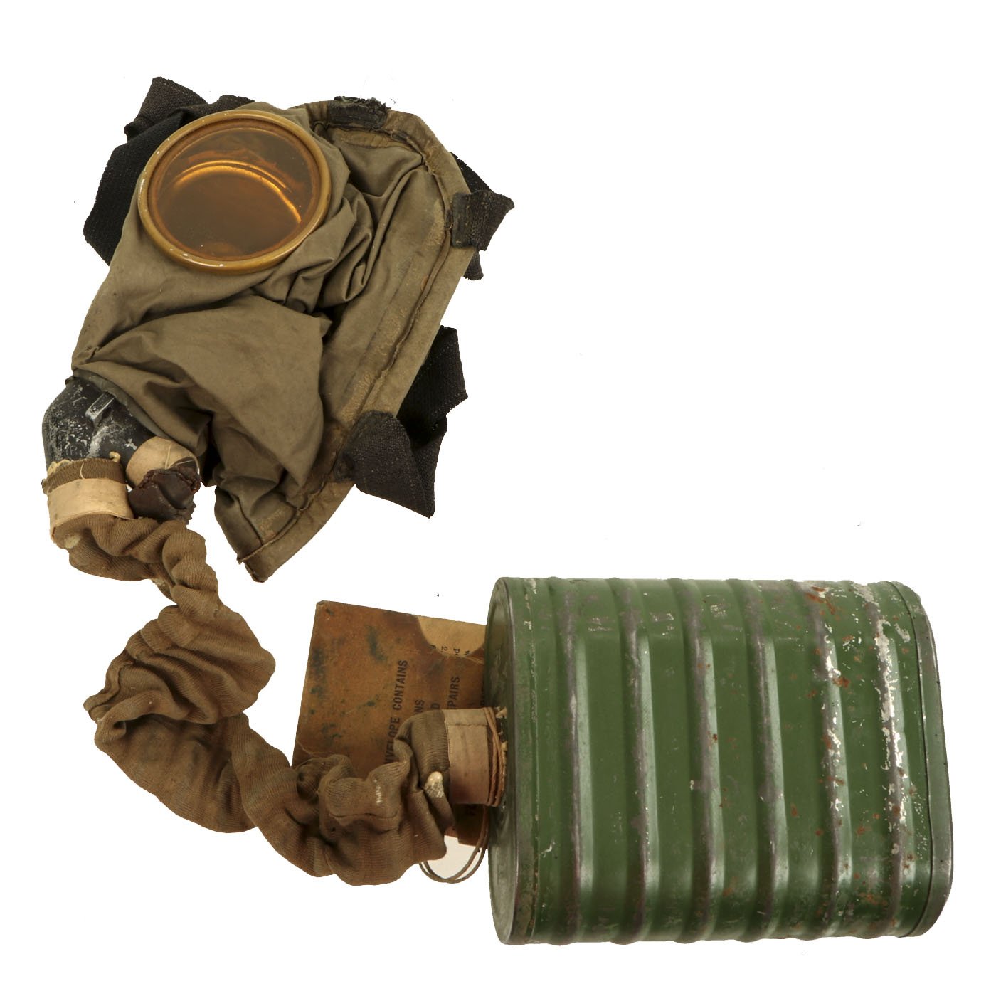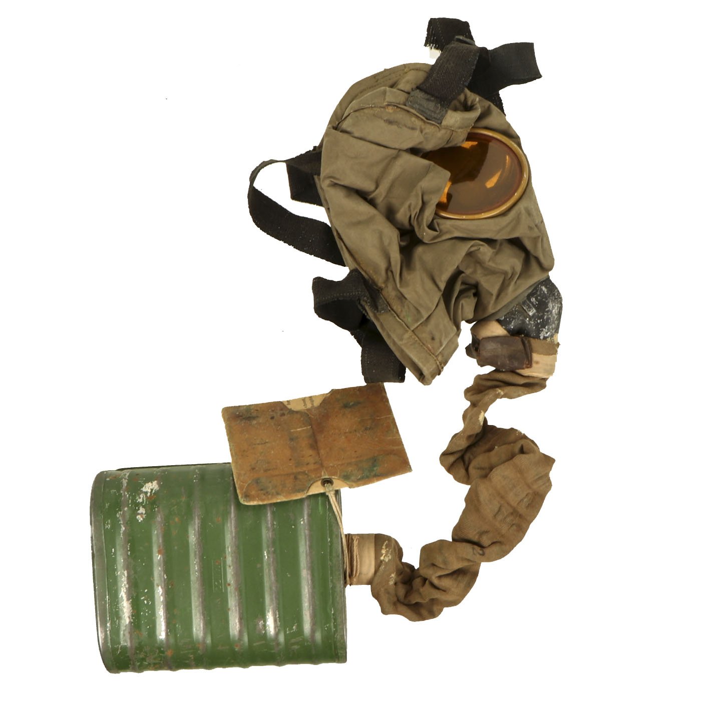 Unfortunately the mask itself, as well as the hose, has deteriorated almost completely due to the rubber rotting out. This is unfortunately the fate of almost all WWI U.S. gas masks, as the early rubber was not really able to last 100 years. Even modern rubber often deteriorates in a few decades, depending on the composition.