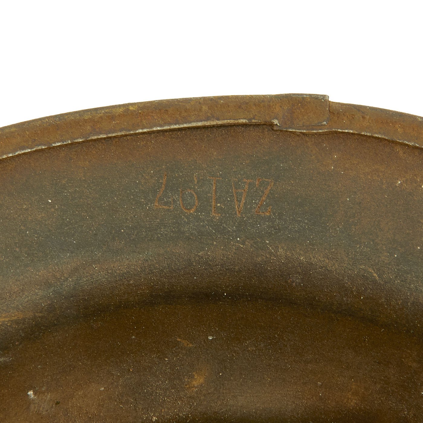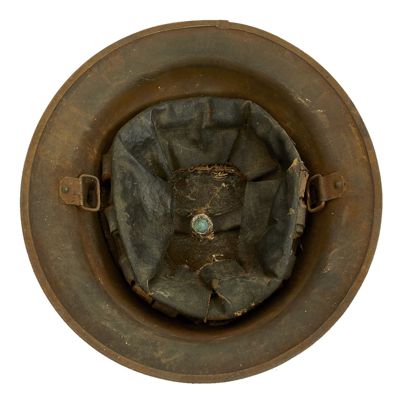 - Original U.S. WWI M1917 Doughboy Helmet with Original 28th division insignia painted on the side. The shell is maker marked with a stamping on the underside of the rim that reads ZA 197.