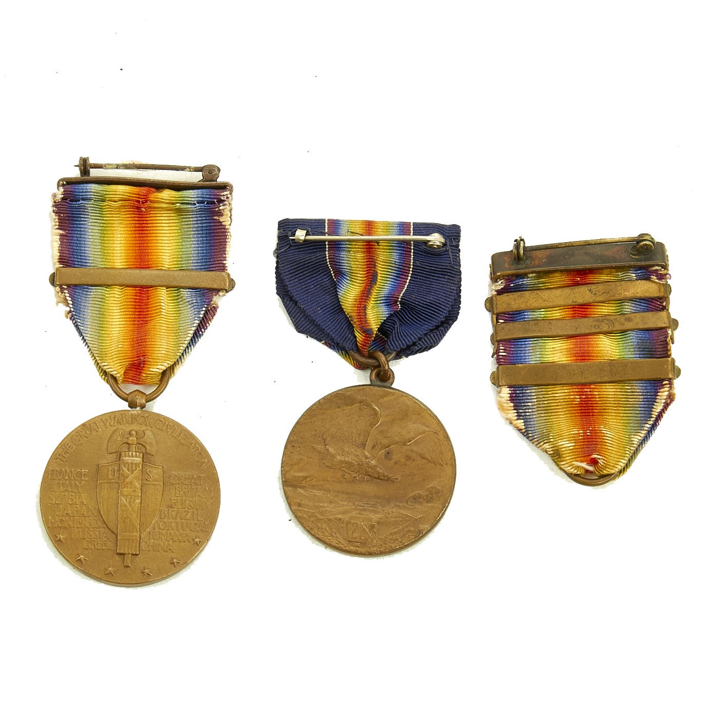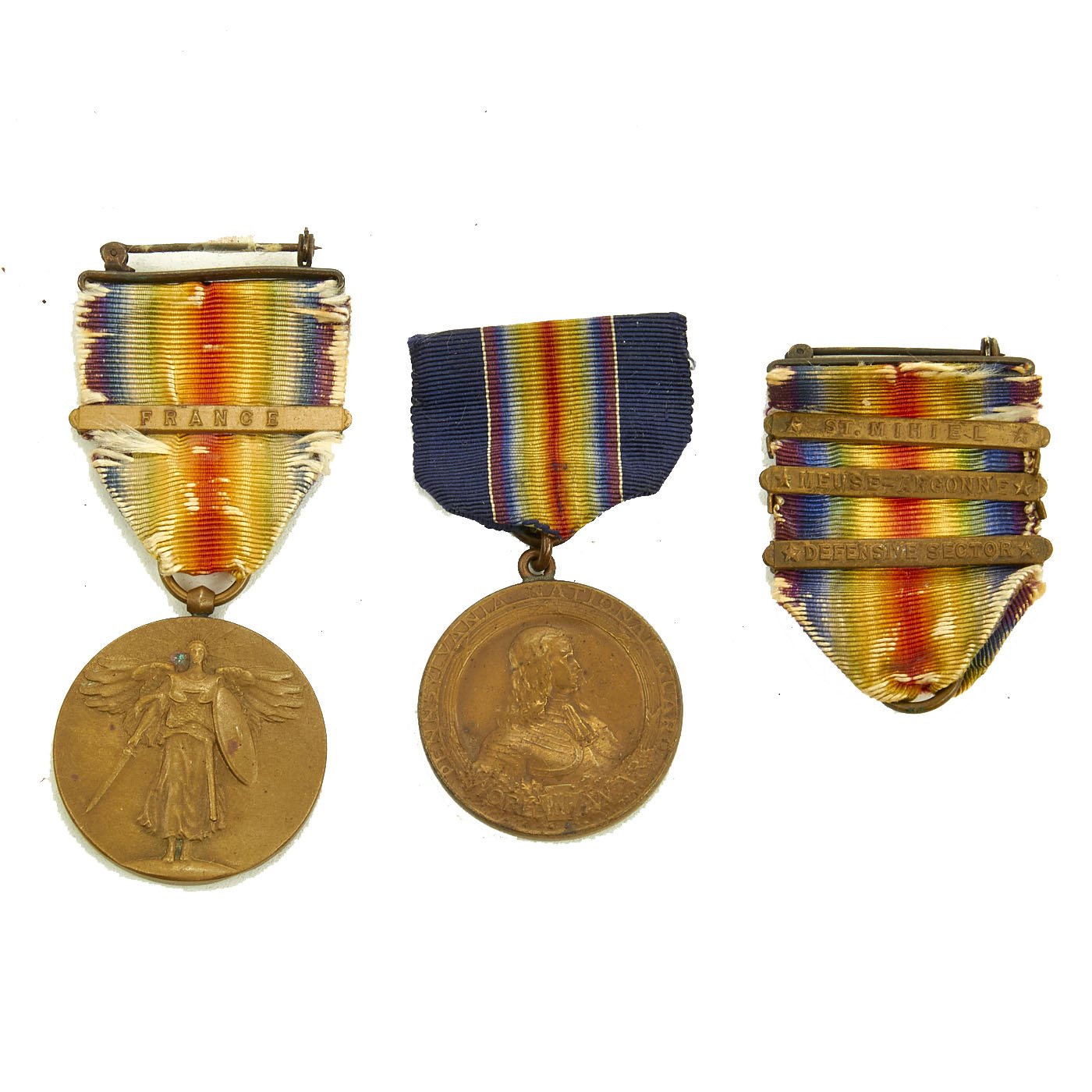 - Original U.S. WWI Victory medal ribbon with box and campaign bars for St. Mihiel O Meuse-Argonne, Defensive Sector.