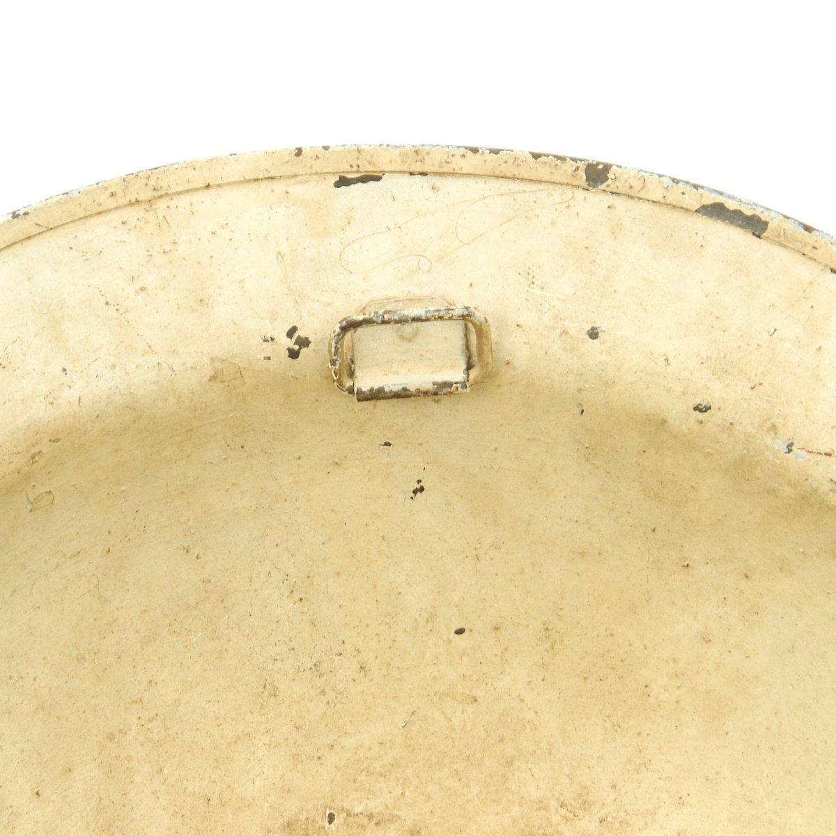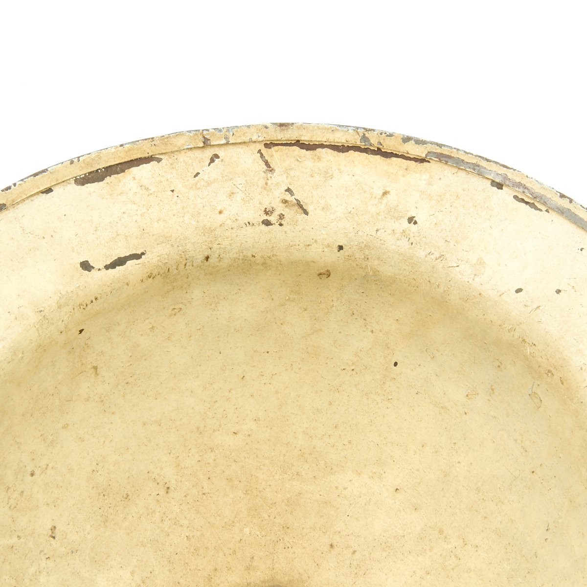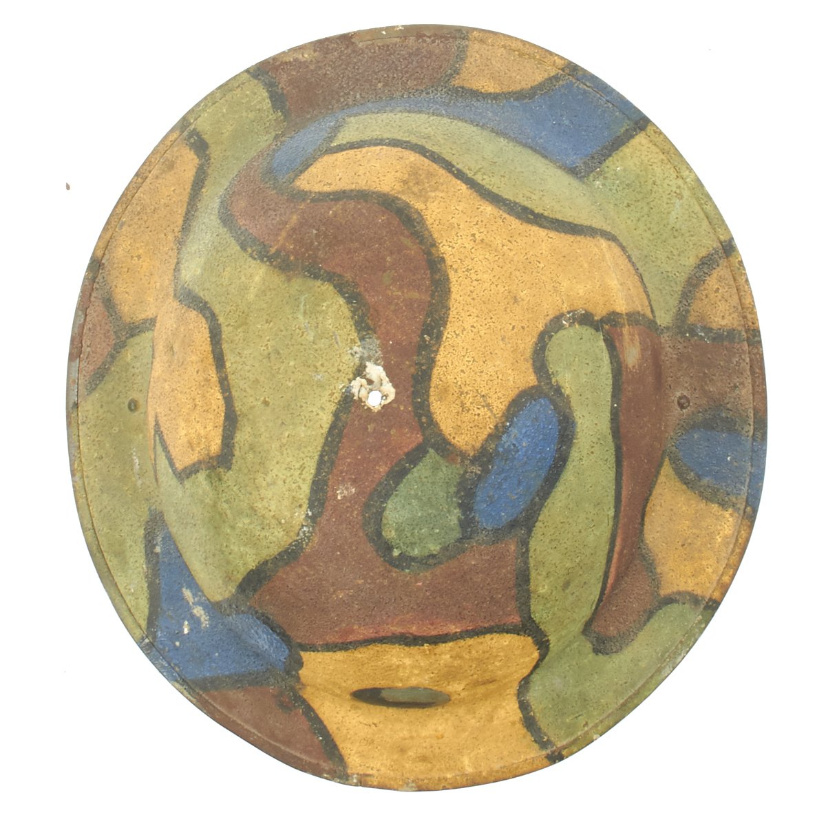 This wonderful example features original period textured camouflage paint. The paint pattern is stunning in its use of colors that include blue, gray, yellow, green, maroon and black. There is no liner or chinstrap, but regardless, this is one of the most memorable M1917 World War One helmets we've ever seen.