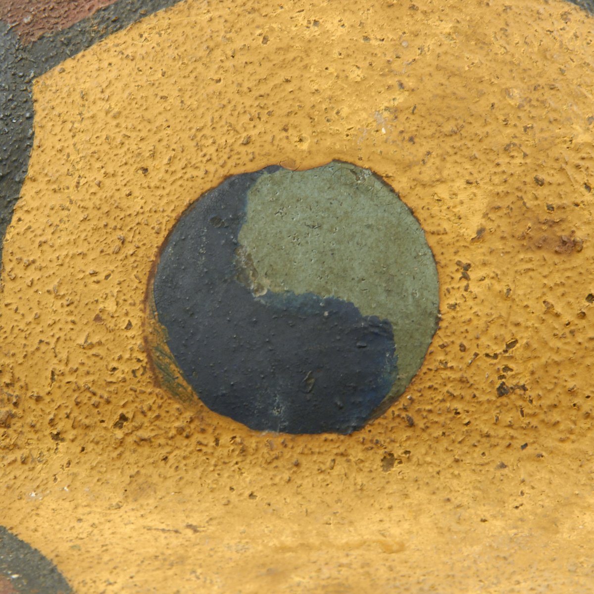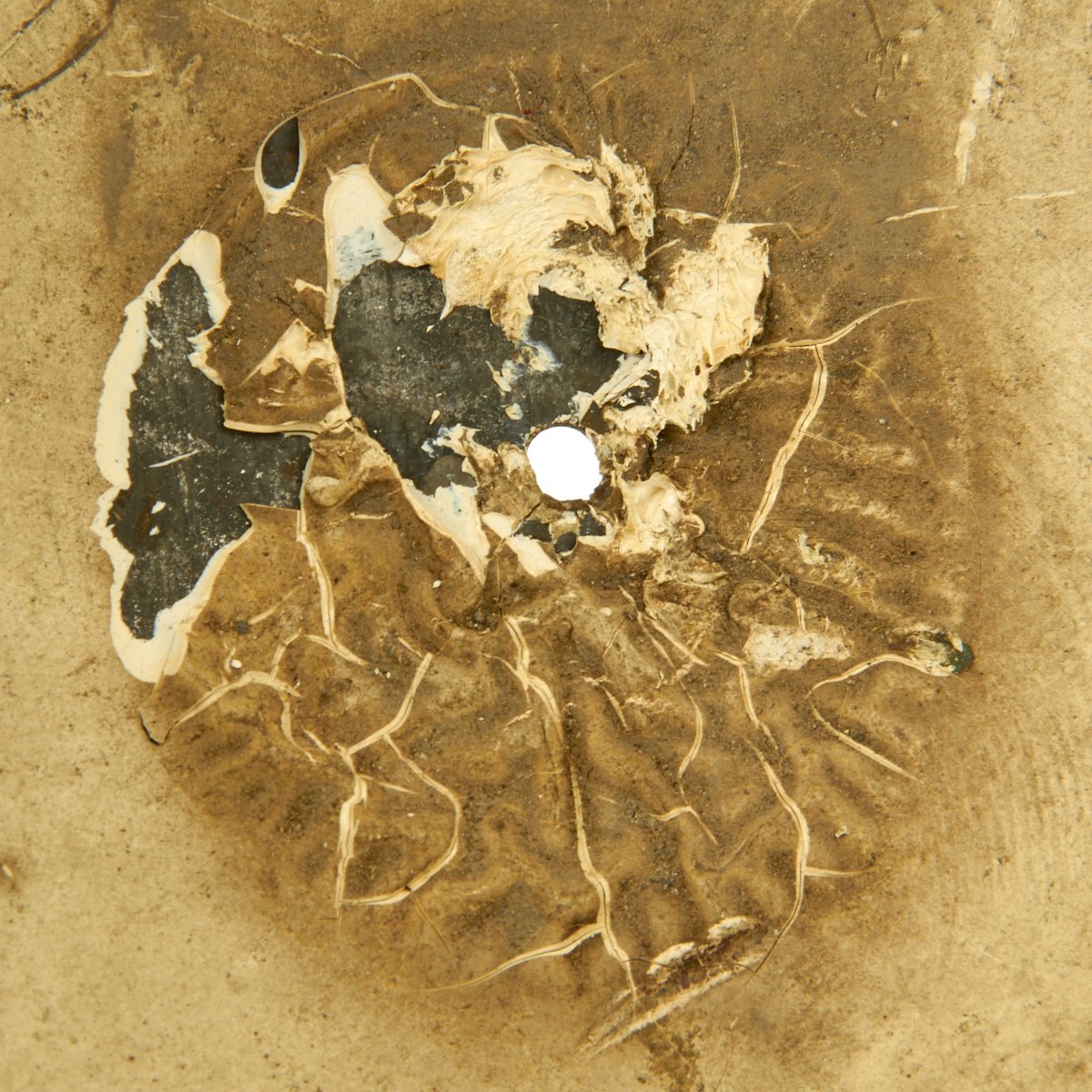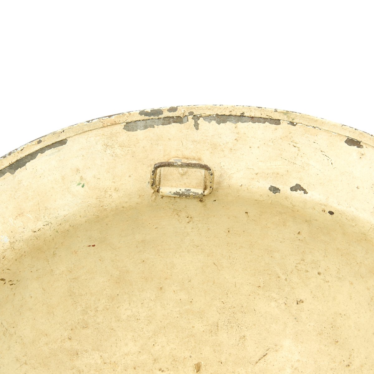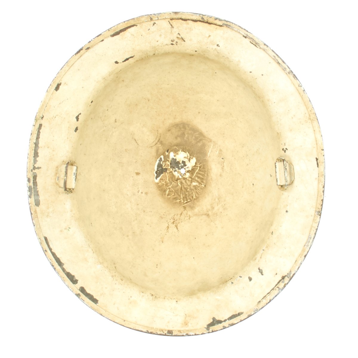 This wonderful example features original period textured camouflage paint. The paint pattern is stunning in its use of colors that include blue, gray, yellow, green, maroon and black. There is no liner or chinstrap, but regardless, this is one of the most memorable M1917 World War One helmets we've ever seen.