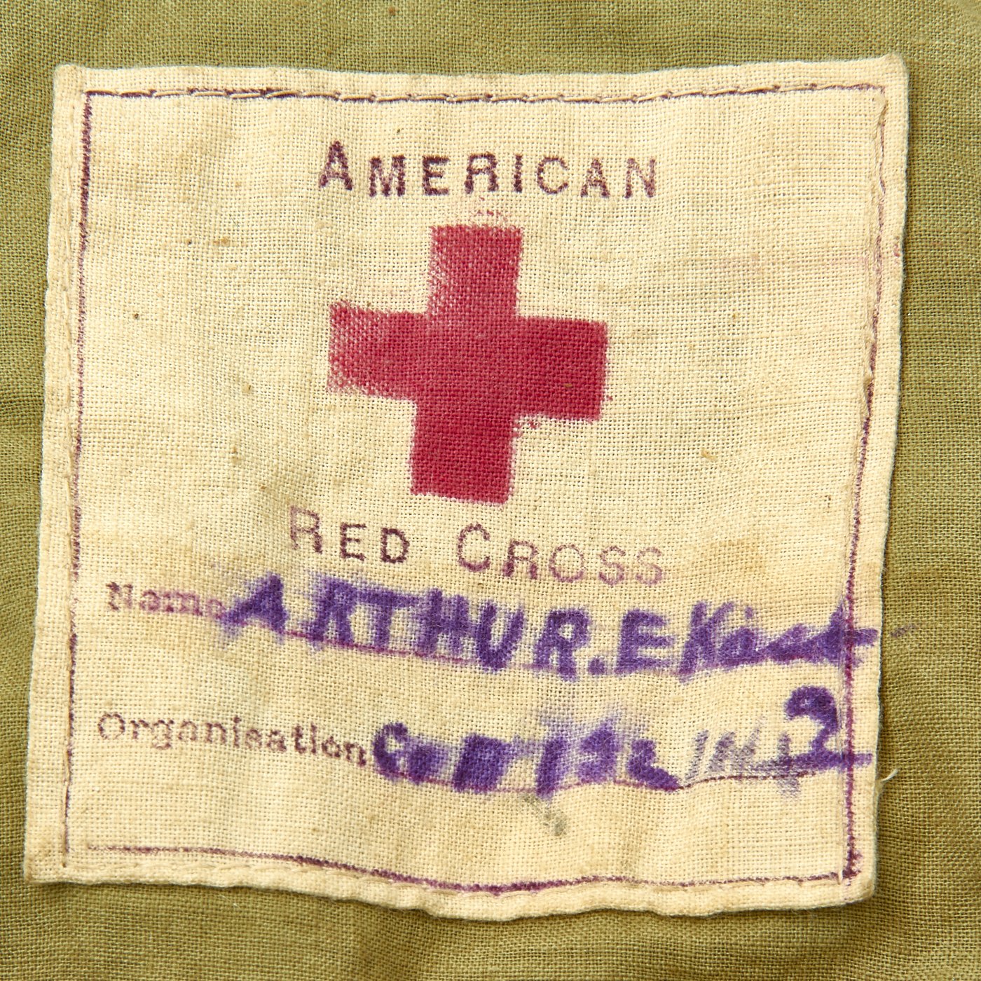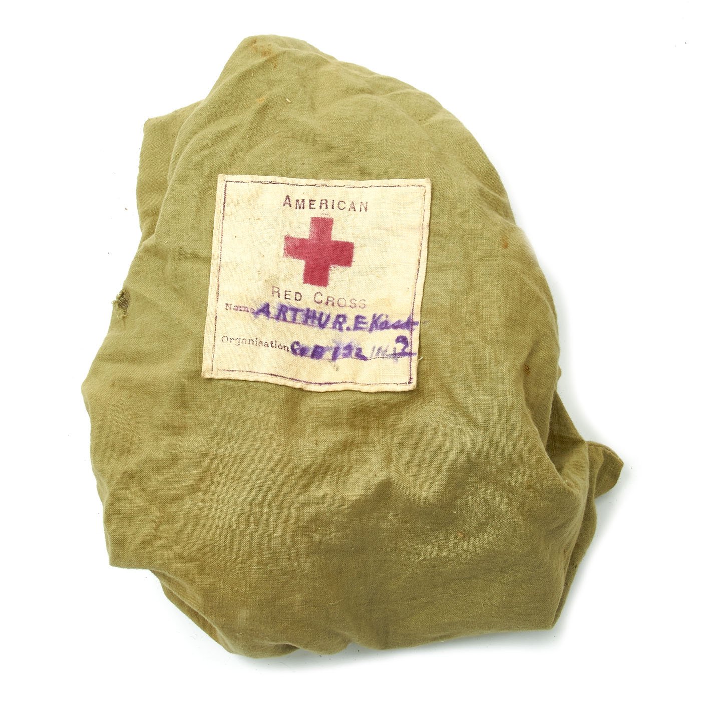 - Original American Red Cross ditty bag with shaving kits, buttons, sewing things and broken German Iron Cross.