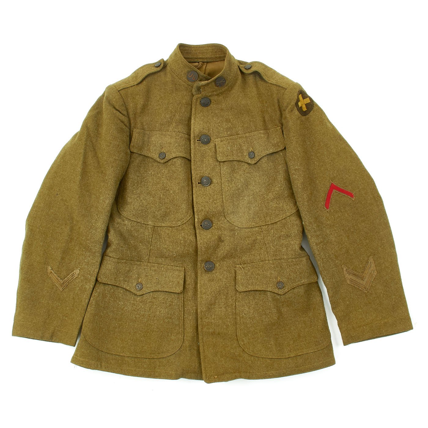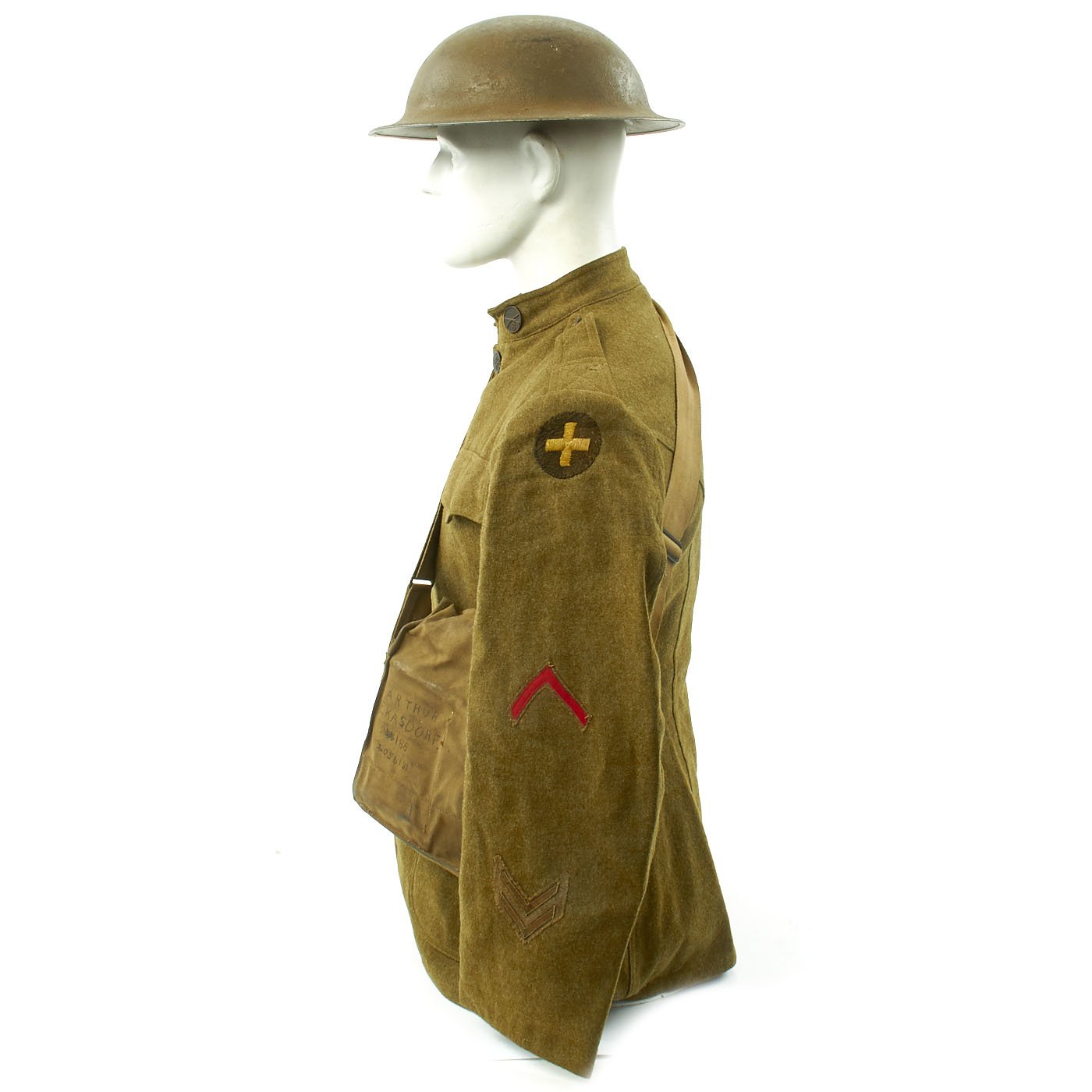 Original Items: One-of-a-kind Set. Private First Class Arthur Earl Kasdorf ASN 2056131 from Fairfield Ohio was born in 1895 and ws drafted when he was 21. He served in the Company A, 132nd Infantry Regiment, 33rd Infantry Division. He fought in World War One in the Meuse-Argonne Offensive and the Second Battle of the Somme. This collection of his Army issue uniform and other gear was recently acquired from the Bob Ford collection, with Mr. Ford having acquired the group directly from Arthur Kasdor's widow in 1985.