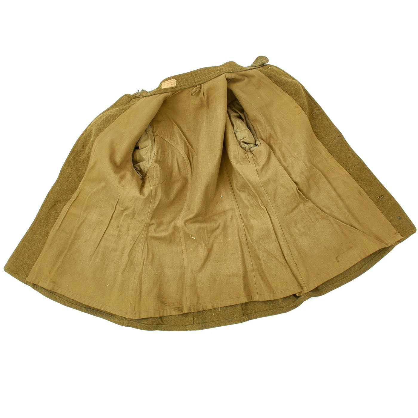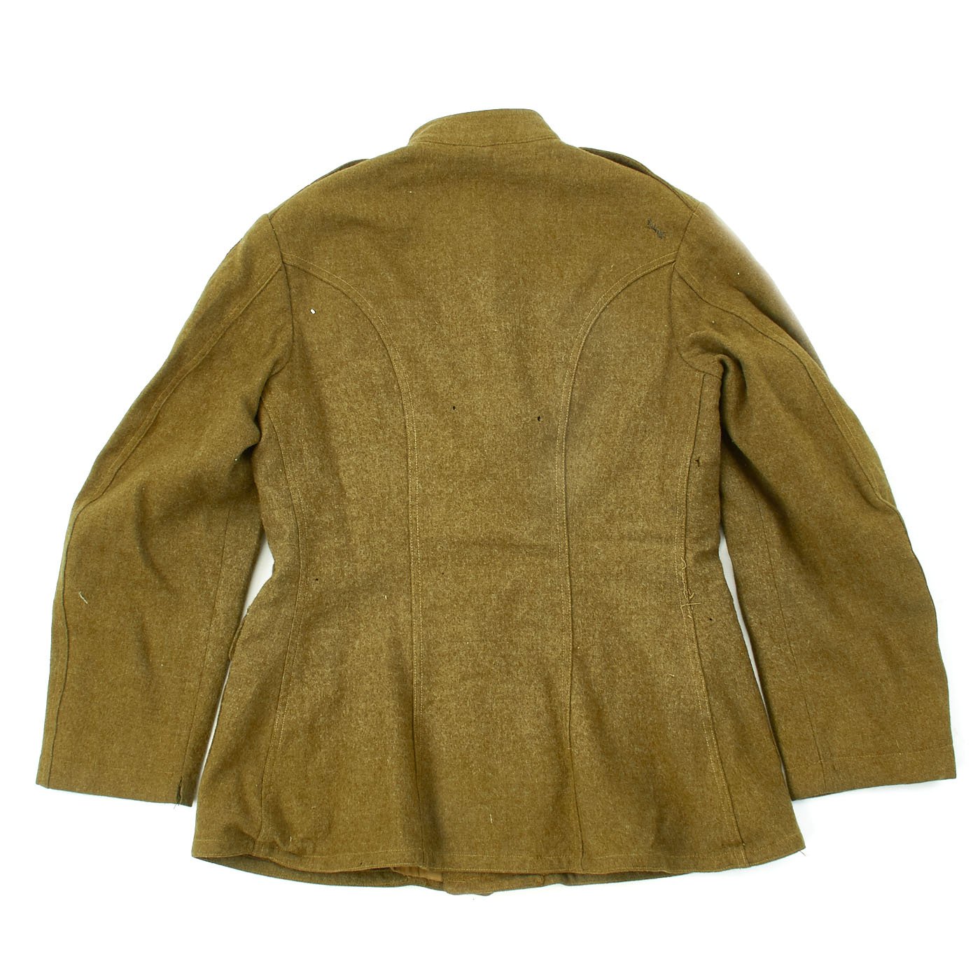 - Army tunic with 33rd Infantry Division insignia on left shoulder, private chevron, overseas chevrons, B Company Collar disc. Tunic is approximately a size 36 US. This also appears to be the exact same tunic as is in the photograph of Pvt. Kasdorf.