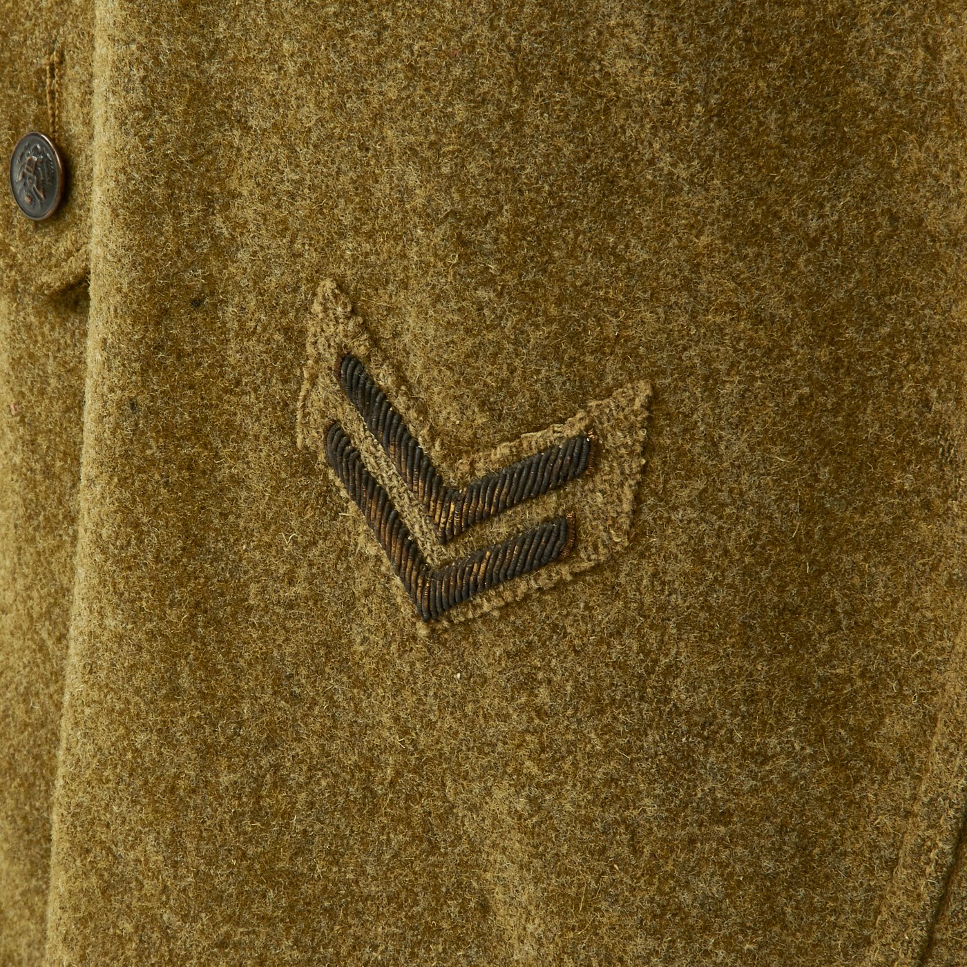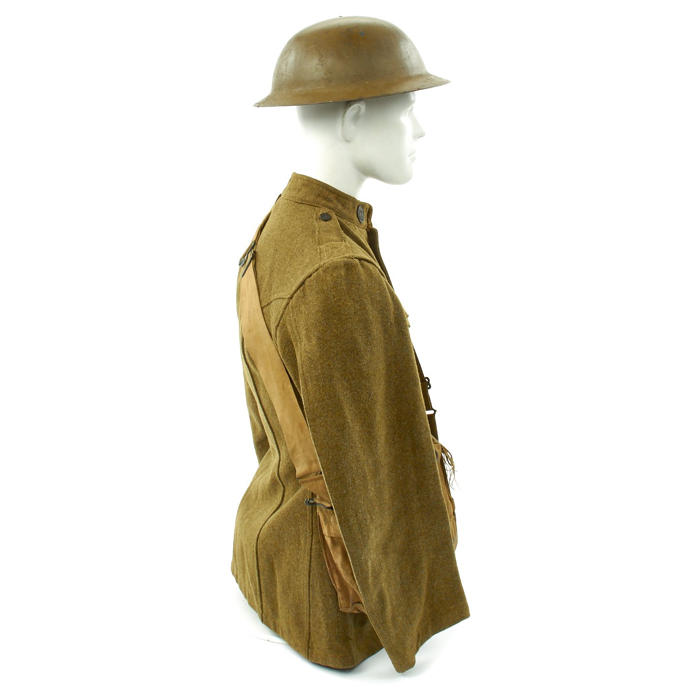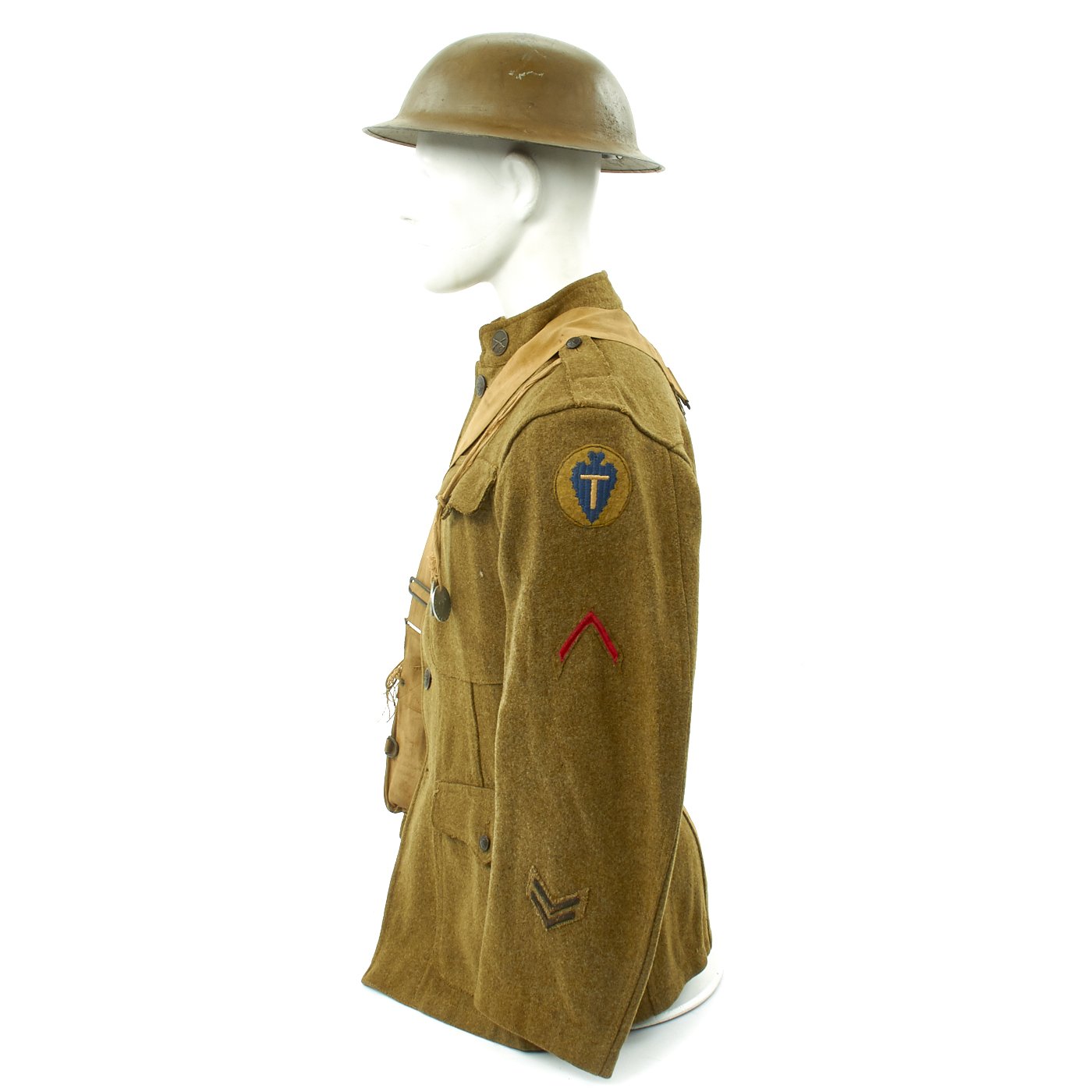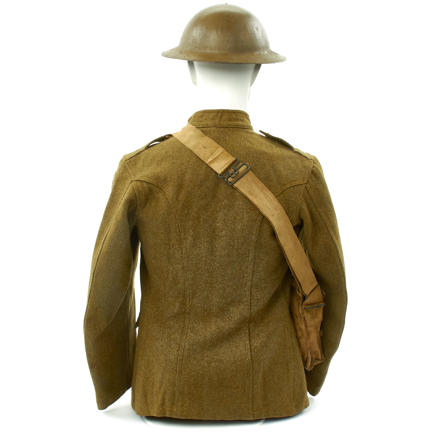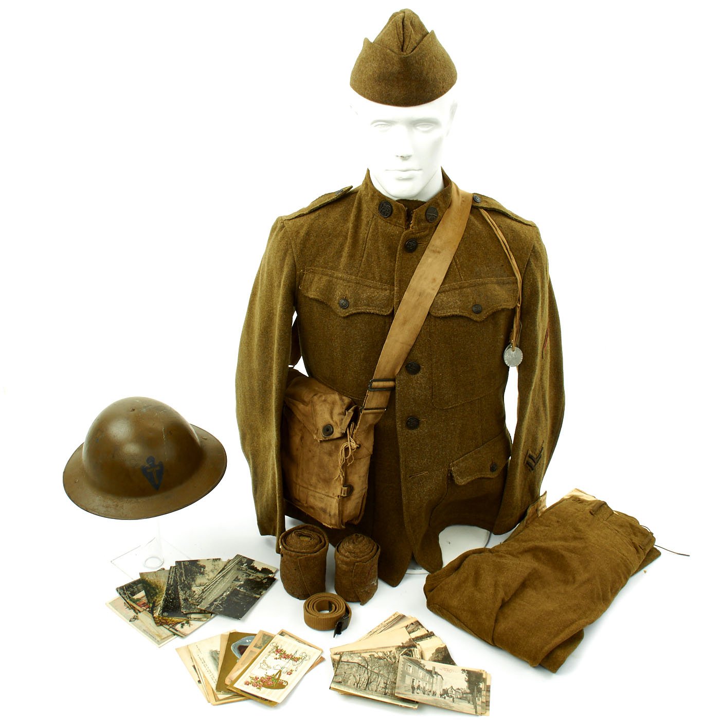 Original Items: One-of-a-kind Set. Private First Class Early Erwin Baggett ASN 1489163 of Dodge City Kansas served in the 36th Division 141st Infantry Machine Gun Company. He fought in World War One at the Meuse-Argonne campaign and this collection of his Army issue uniform and other gear was recently acquired from the Bob Ford collection, with Mr. Ford having acquired the group directly from Private Baggett's widow Alice.