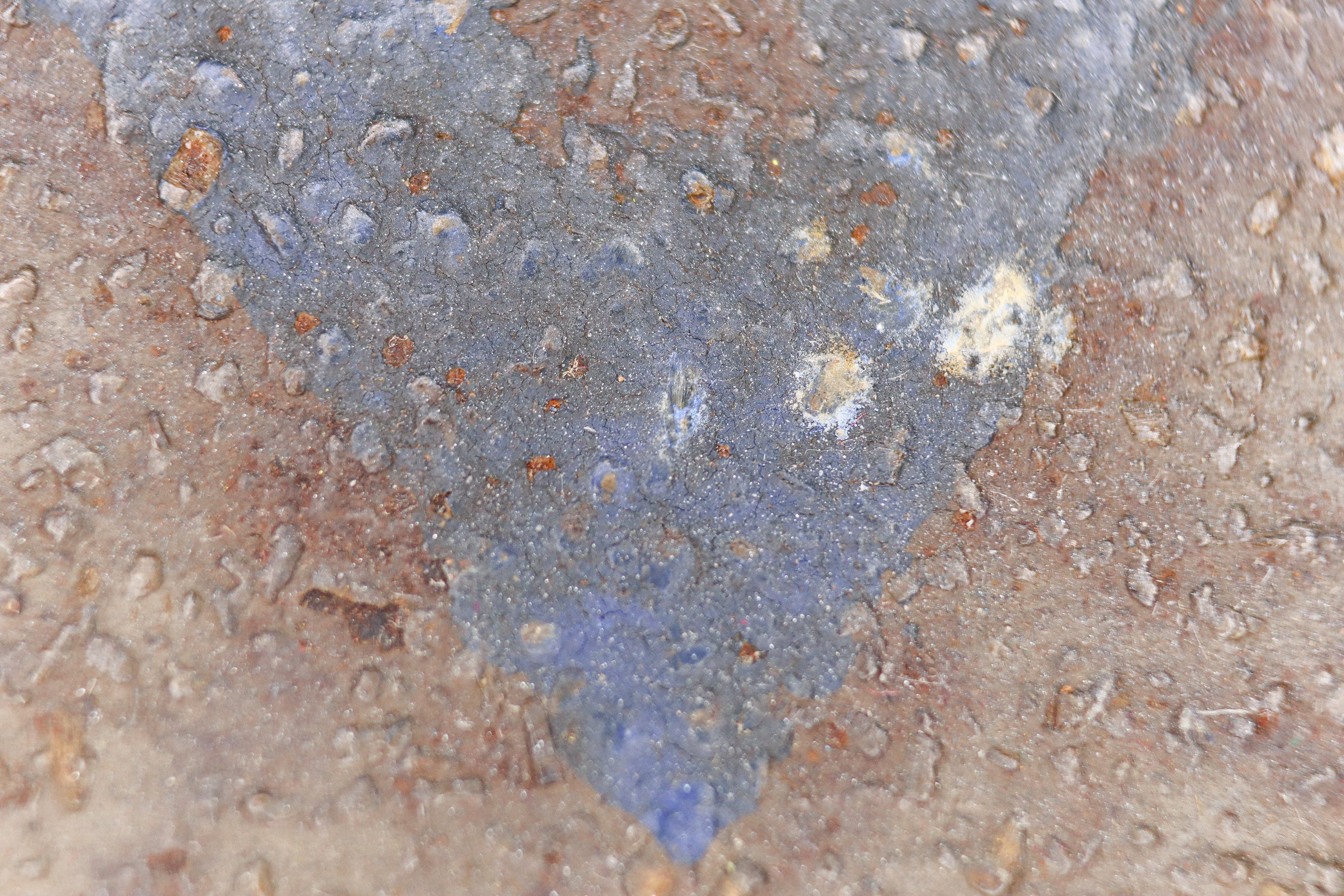 The paint is somewhat worn, and definitely shows use, but it has a great look and the colors are still easily discernible. The interior of the helmet has some of the original paint present but it is mostly worn away and replaced with minor surface rust.