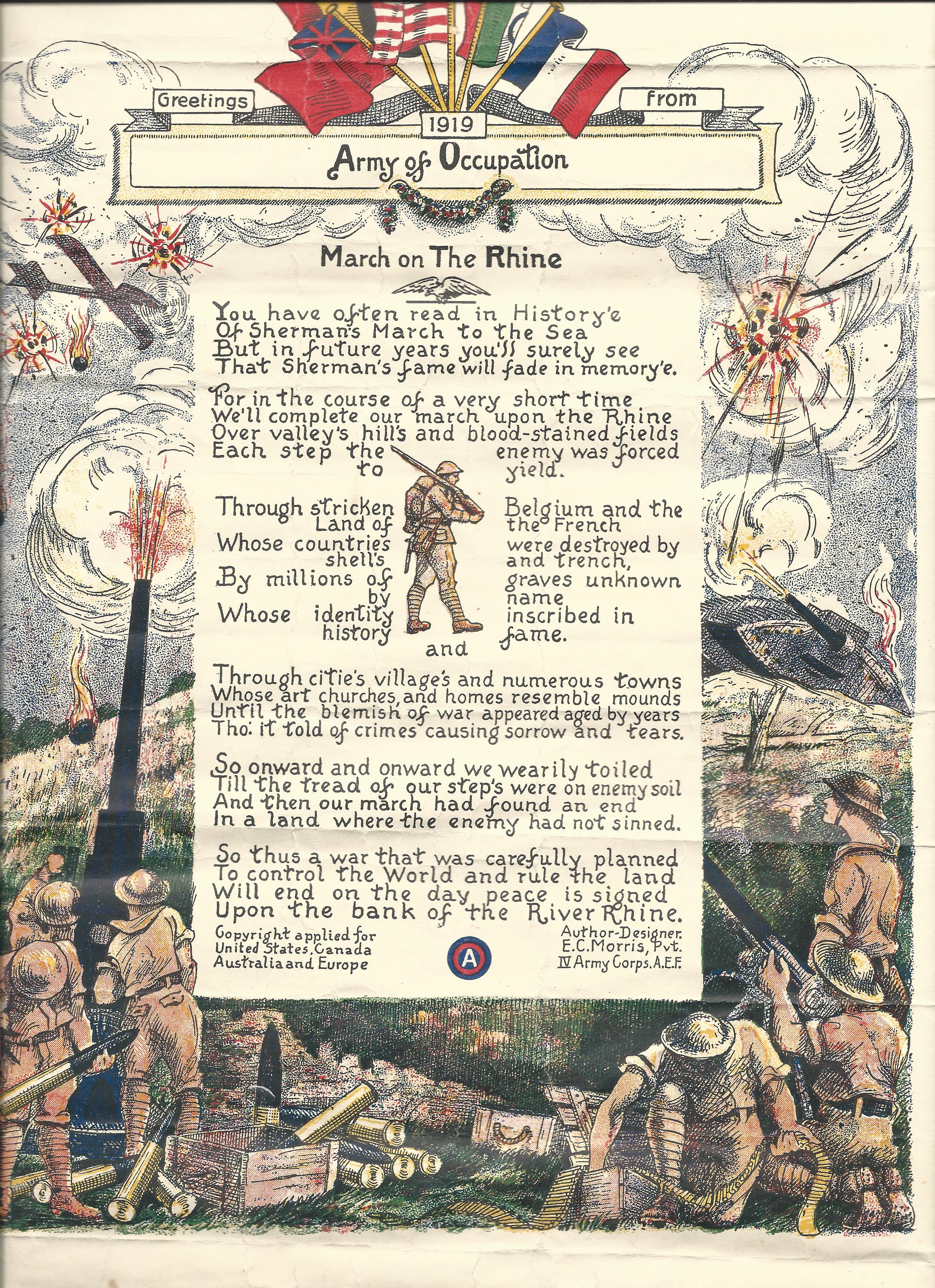 - Full color edition of 1919 Original Army of Occupation "March on the Rhine" Poem from VII Corps.