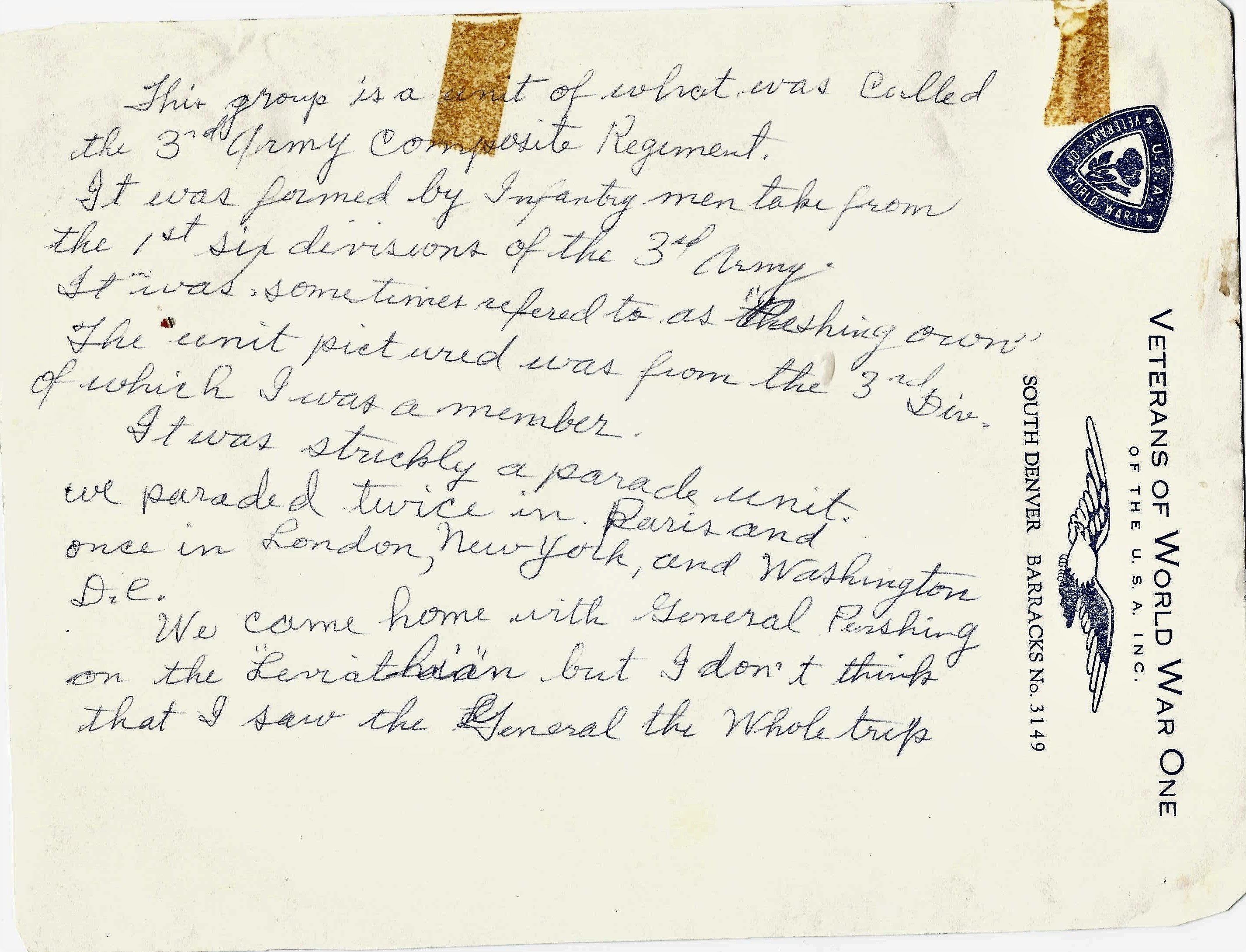 Original Items: One-of-a-kind Set. Private First Class Thomas J. Ingram served in the 3rd Infantry Division and fought in Europe. After the armistice he was assigned to the 3rd Army Composite Regiment which was comprised of men from the first six divisions of the 3rd Army. This unit was stirictly used for parades. They paraded twice in Paris, once in London, New York, and Washington D.C. They came home with General Pershing aboard the USS Leviathan. This collection of Private Ingram's Army issue uniform and other gear was recently acquired from the Bob Ford collection, with Mr. Ford having acquired the group directly from Thomas J. Ingram in 1982.