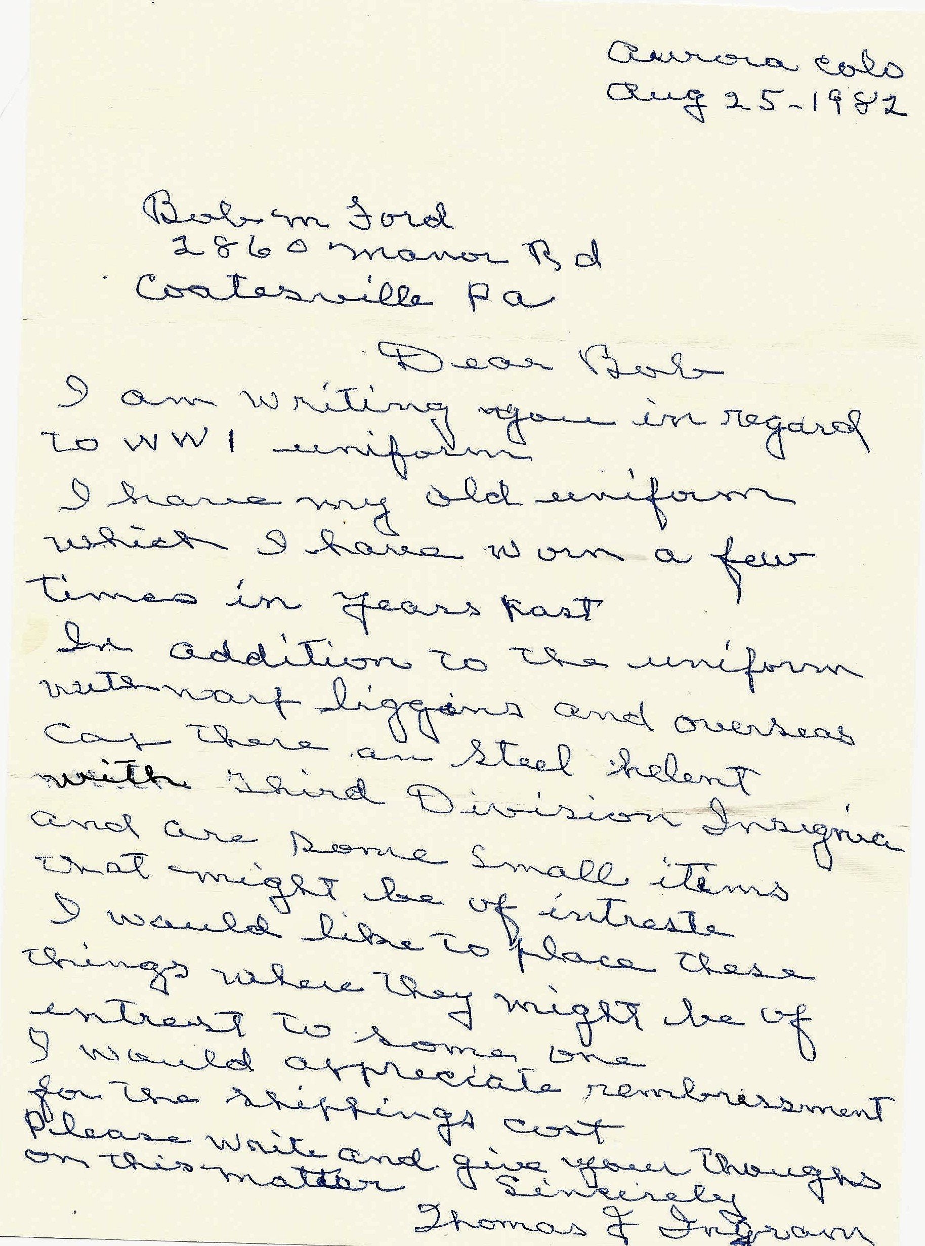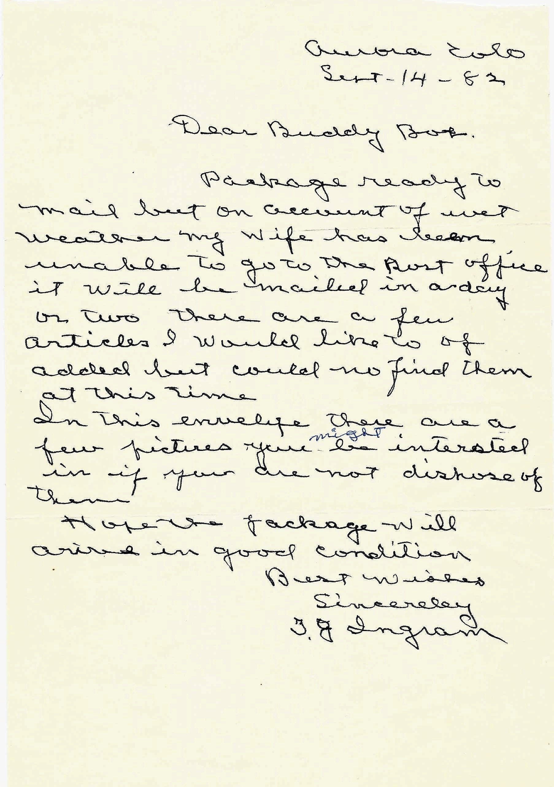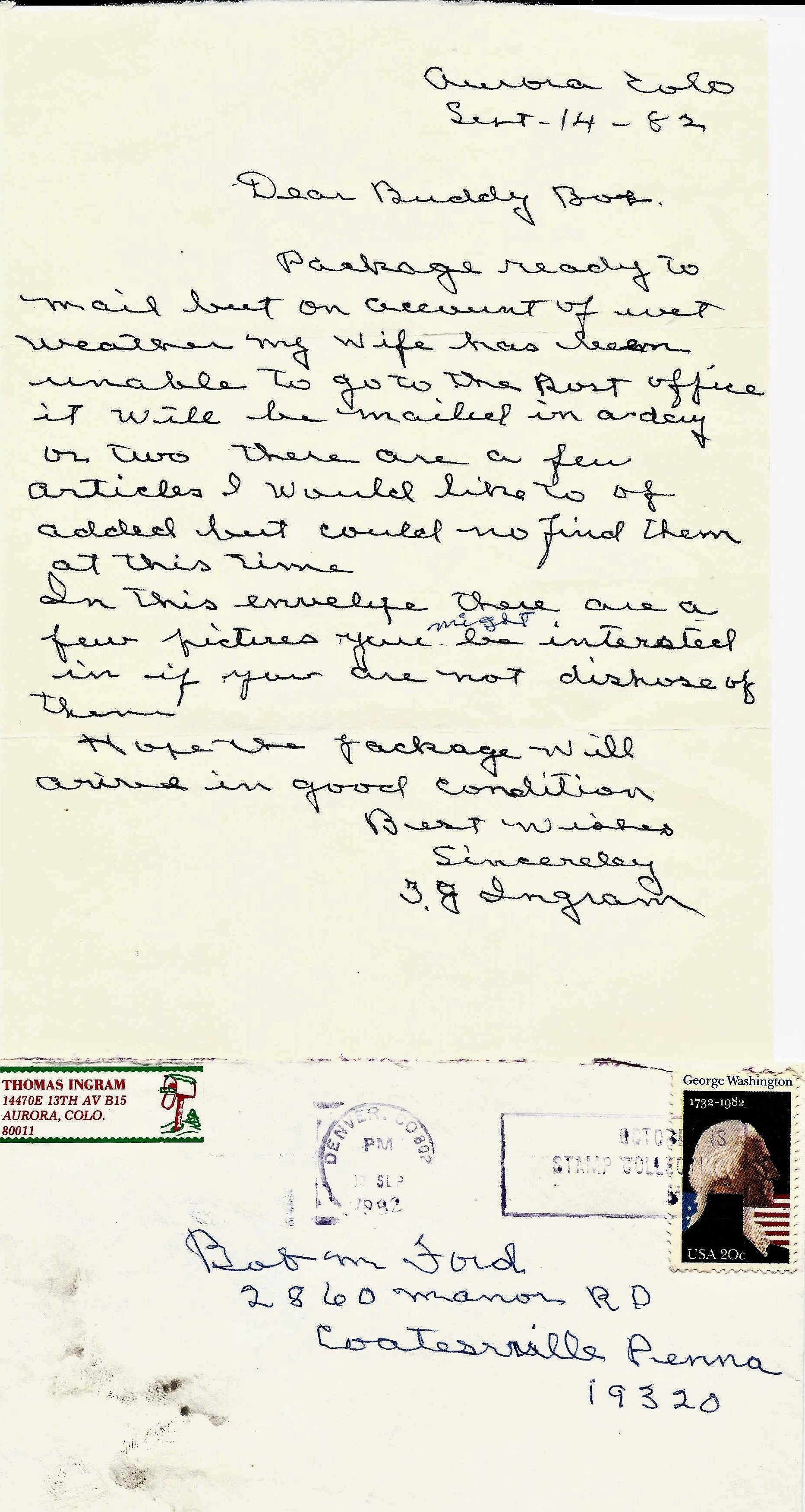 - Multiple letters from Ingram to Bob Ford discussing the collection and his service all dated in 1982.