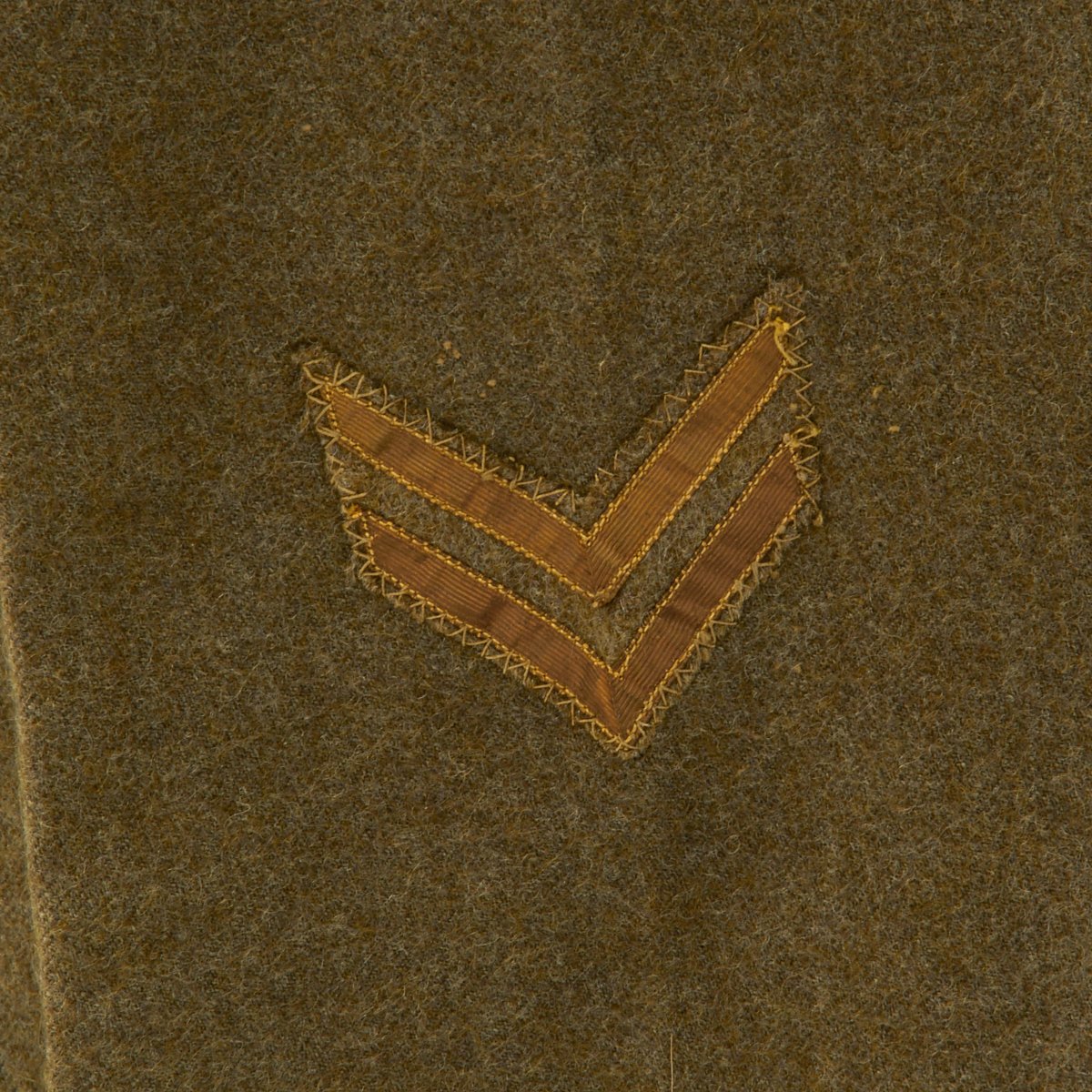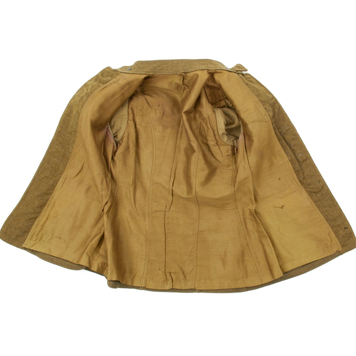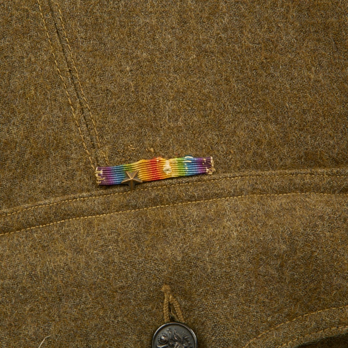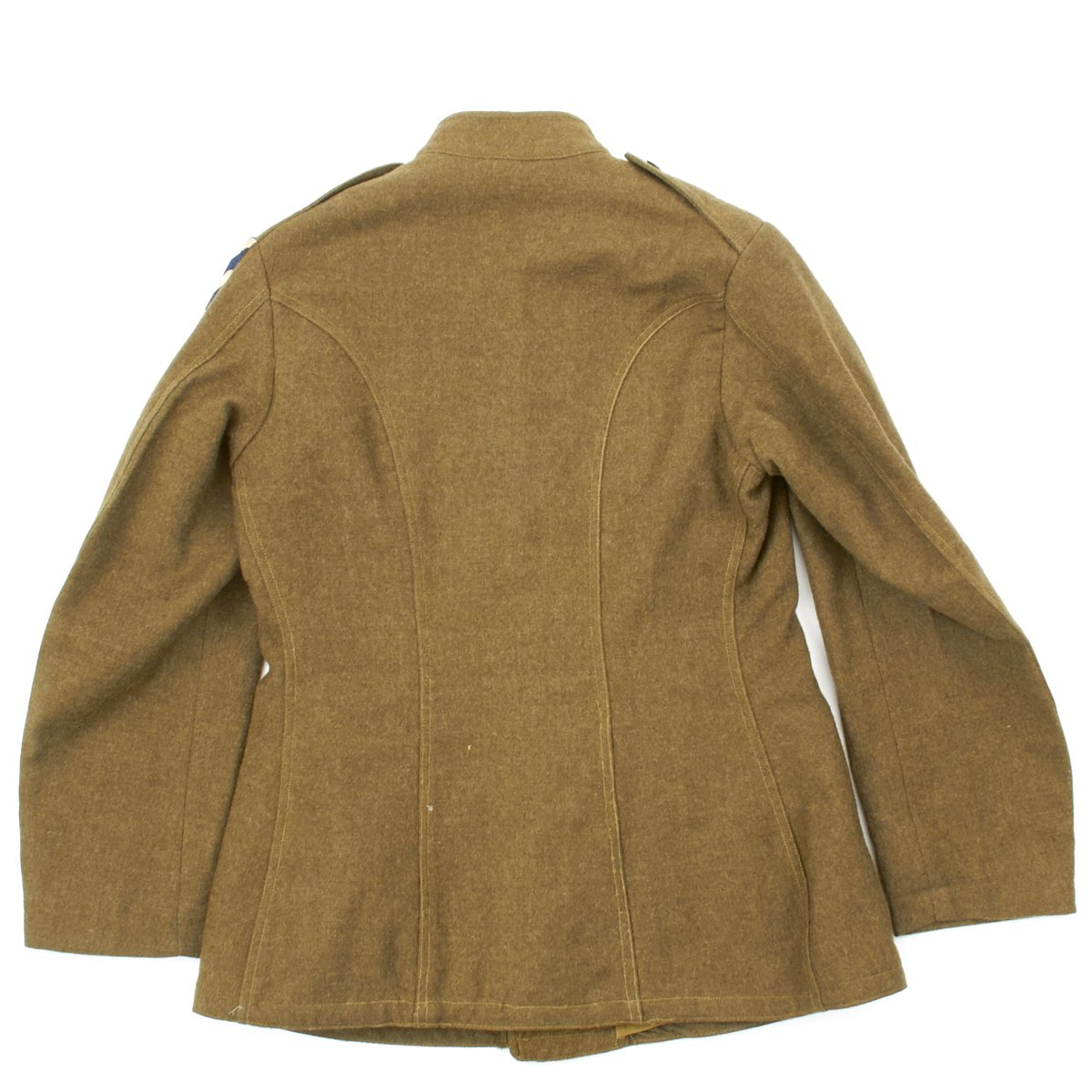 - Army tunic with 3rd Infantry Division insignia on left shoulder, private chevron, overseas service chevrons, Company C Collar disc and original buttons.