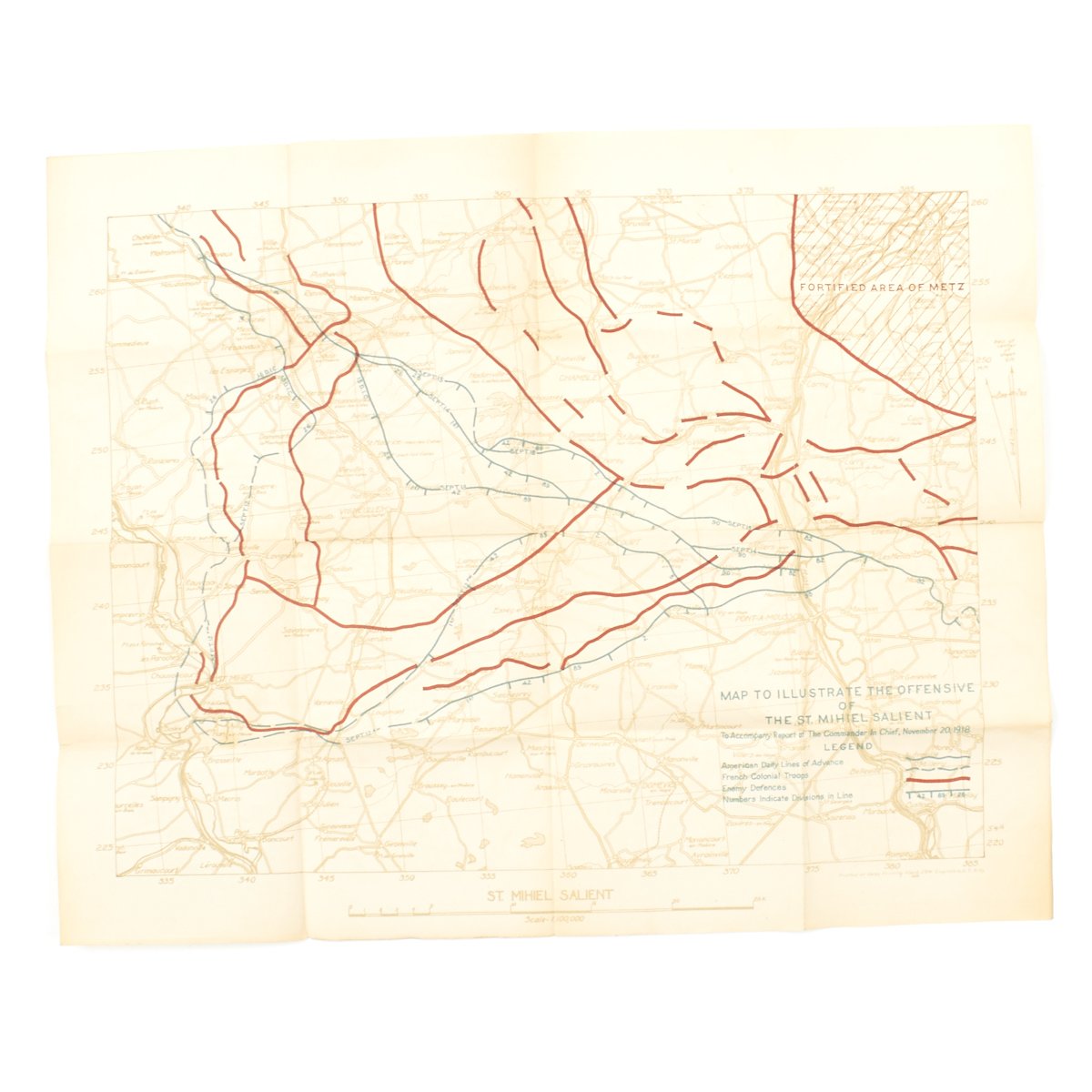 - 2 x after action maps of battle campaigns he fought in which are - Meuse-Argonne Offensive and the Battle of Saint-Mihiel.
