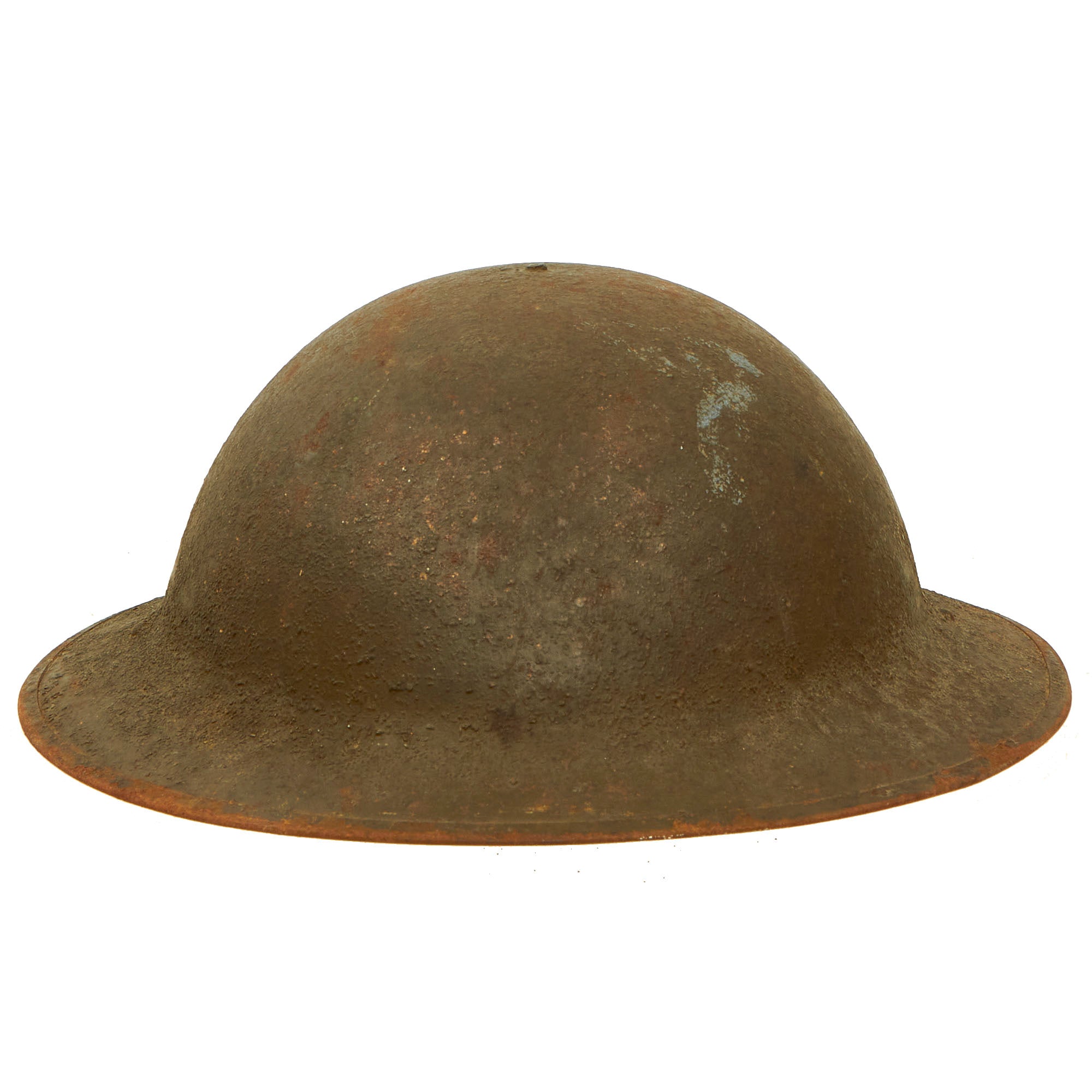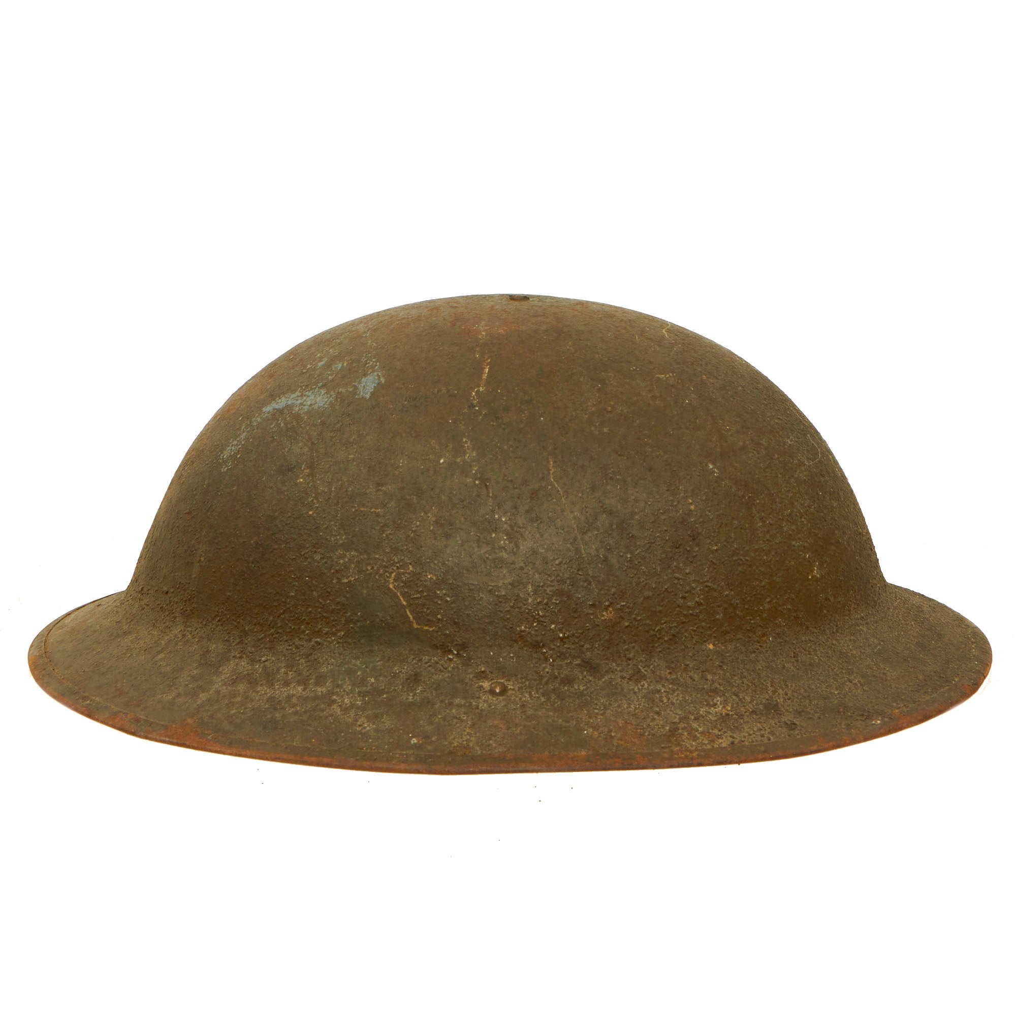 The M1917 is a near identical version of the British MkI steel helmet, and it is important to note that when the US joined the Great War in 1917 they were initially issued with a supply of around 400,000 British made Mk.Is, before production began state side. The M1917 differed slightly in its lining detail, and exhibited US manufacture markings.