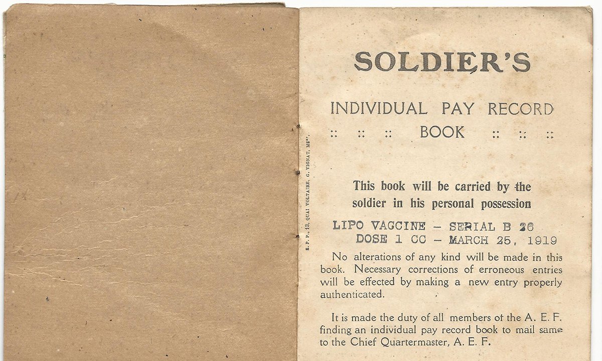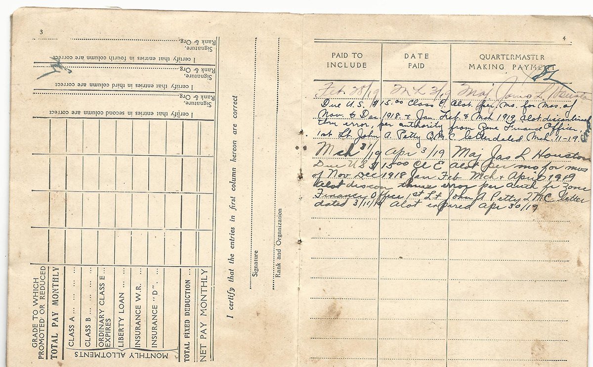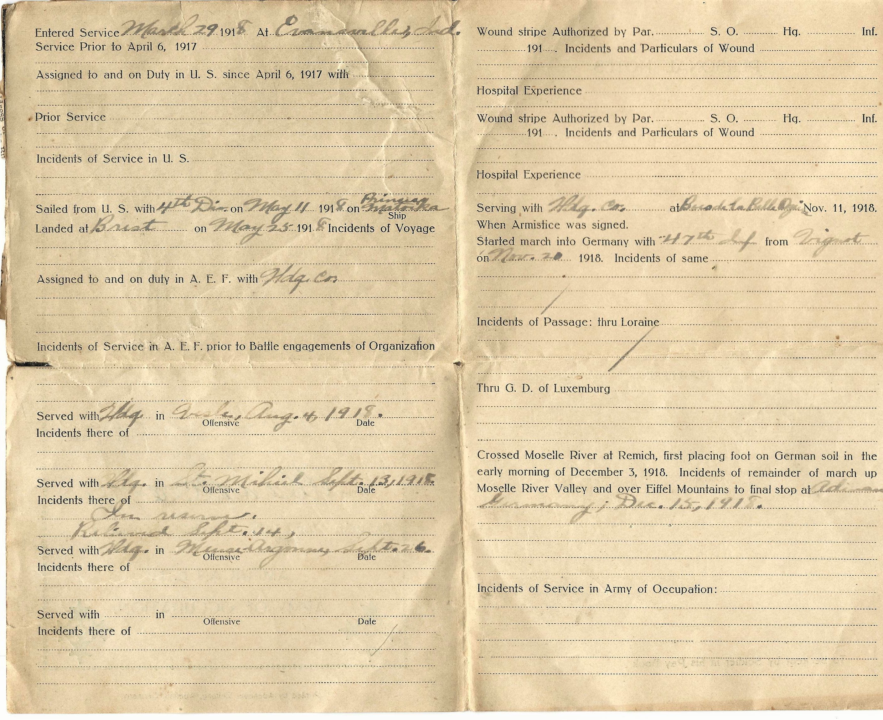 - Original Soldier's Pay book with fold out battle record filled in with pencil and dated 1918.