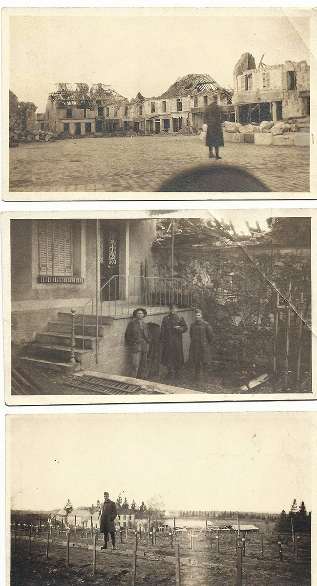 - 14 x original wartime photos of Koressel, war torn France, trenches, captured German soldiers and even one of Koressel in this very tunic!