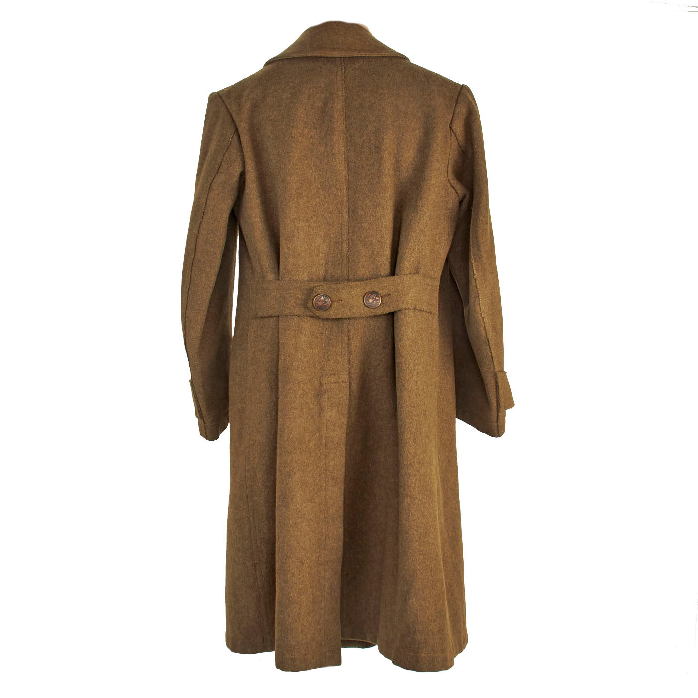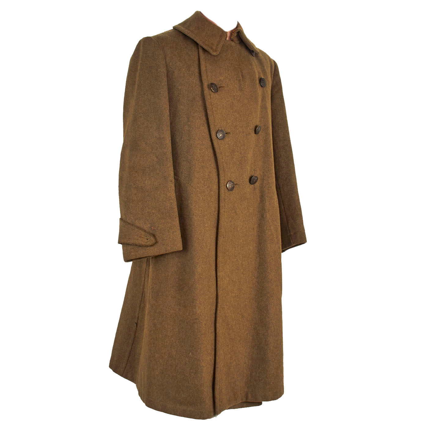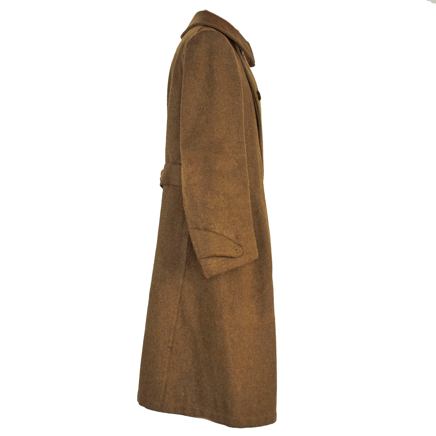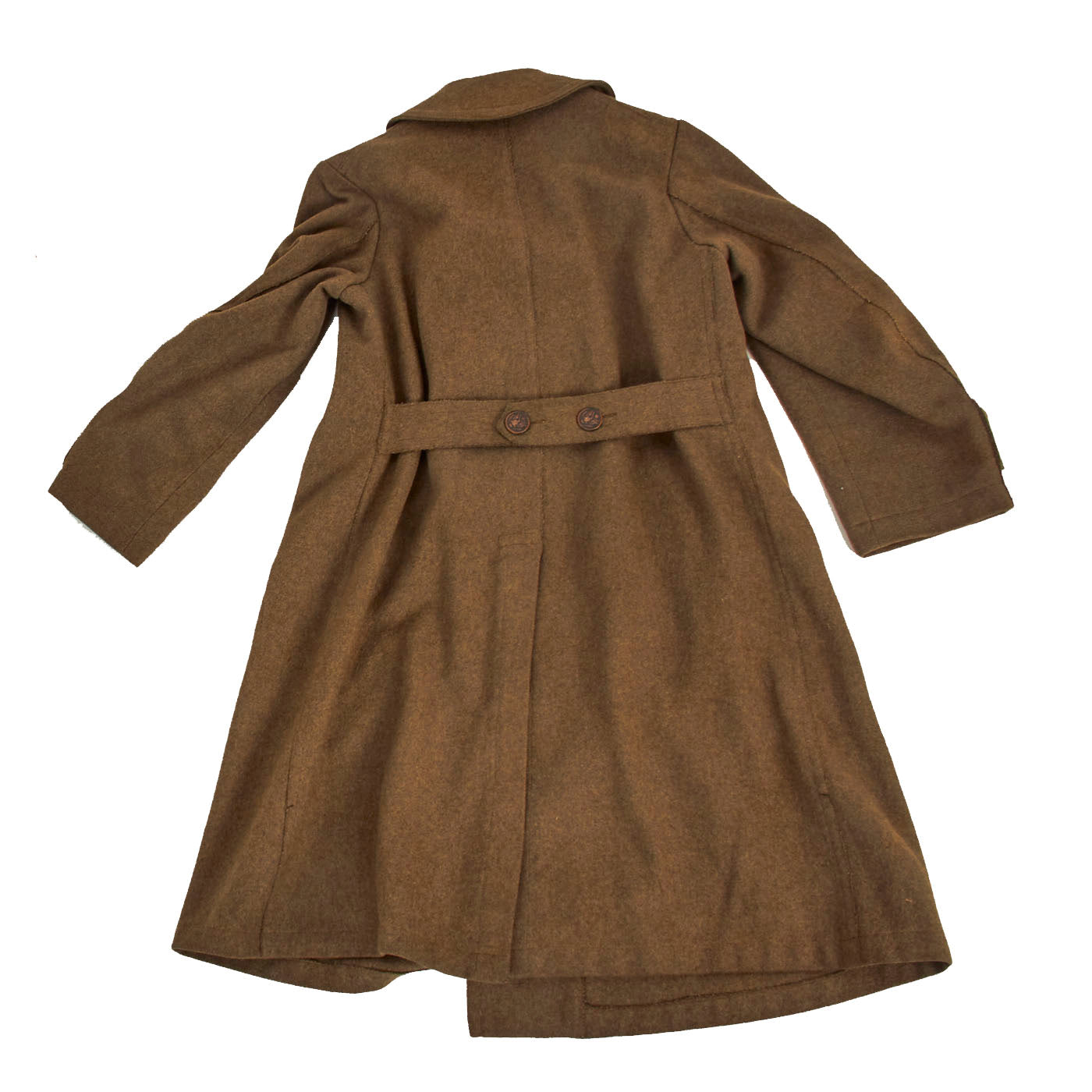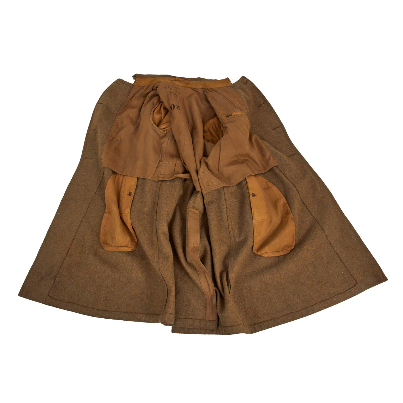 The greatcoat is in excellent condition with minor moth nips and no significant damage with all buttons present. There is a name written on the back inside lining which appears to be T.F. Pankau.