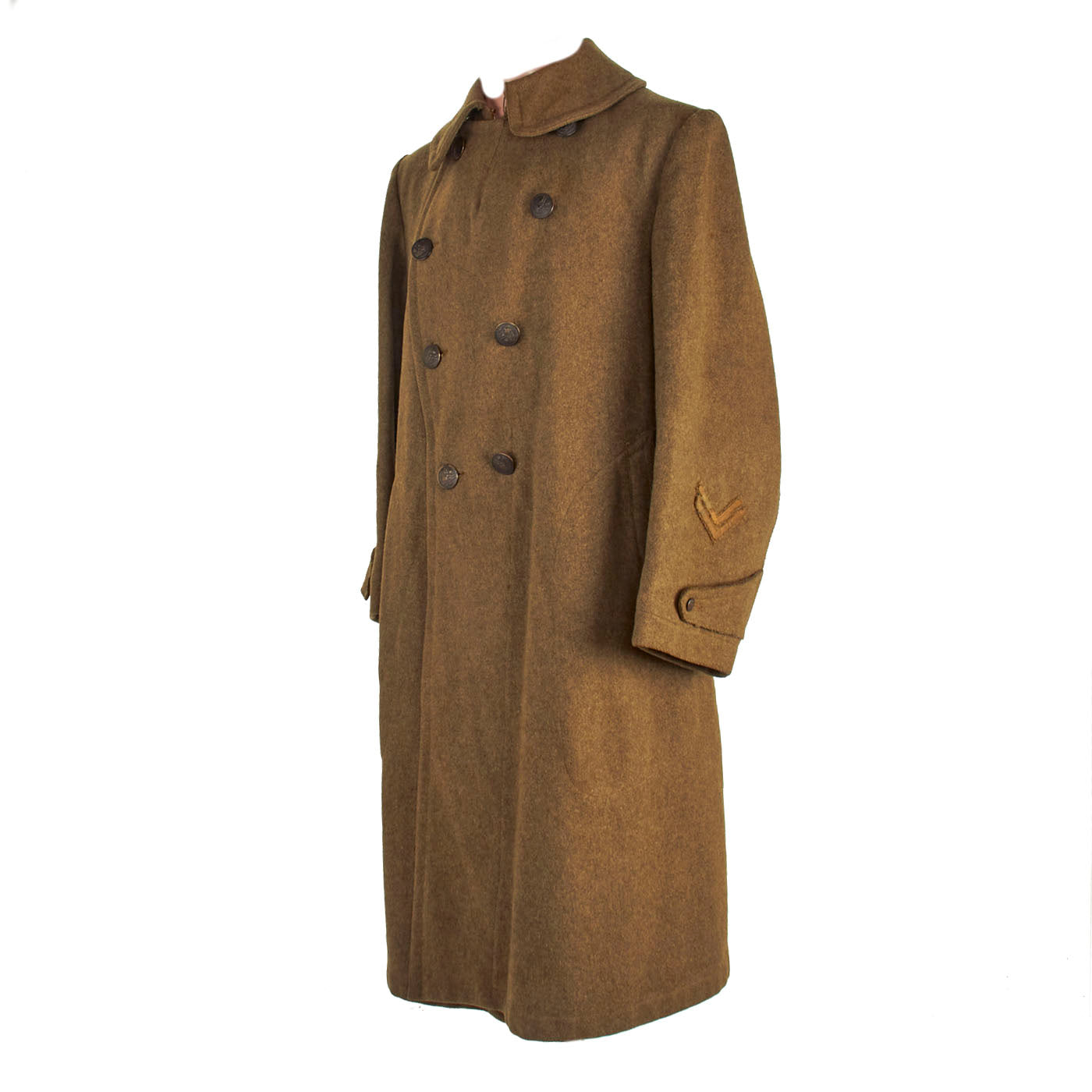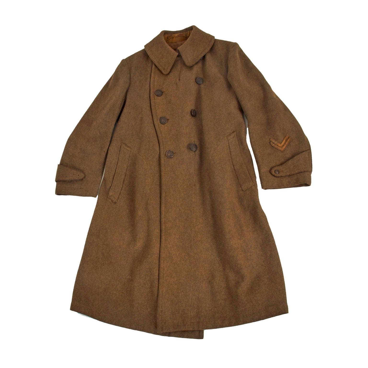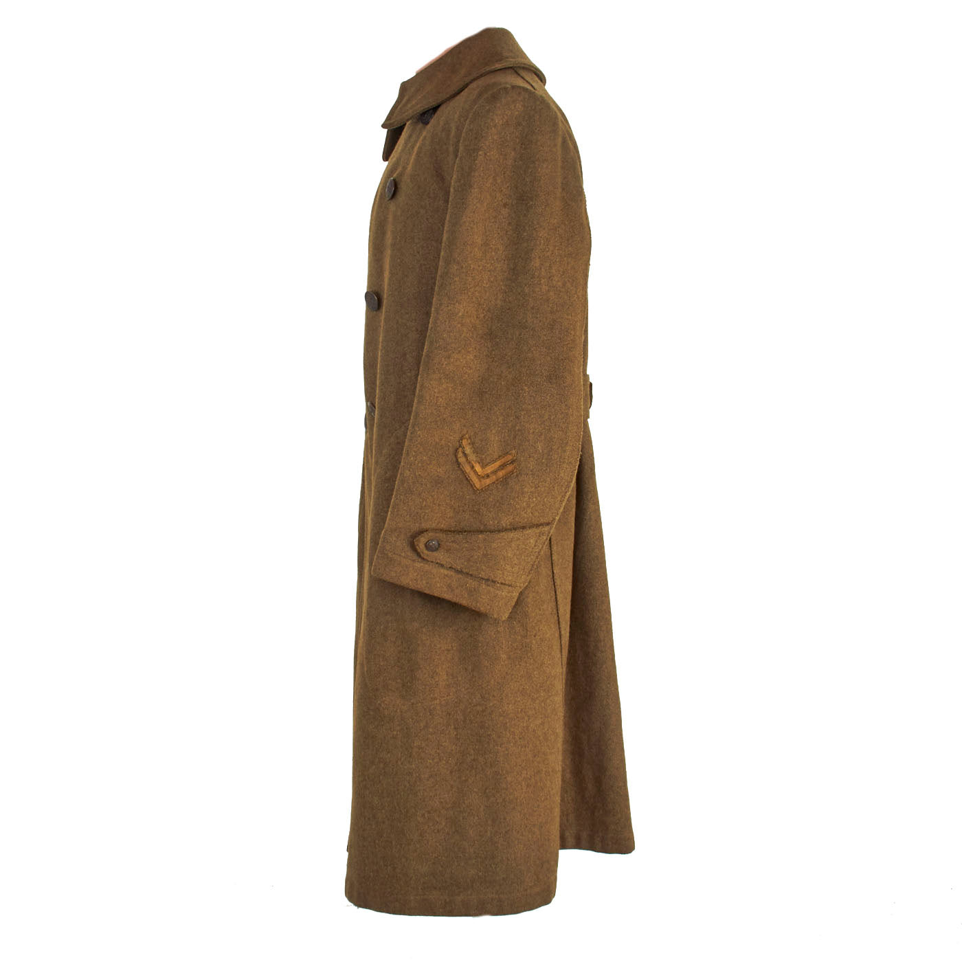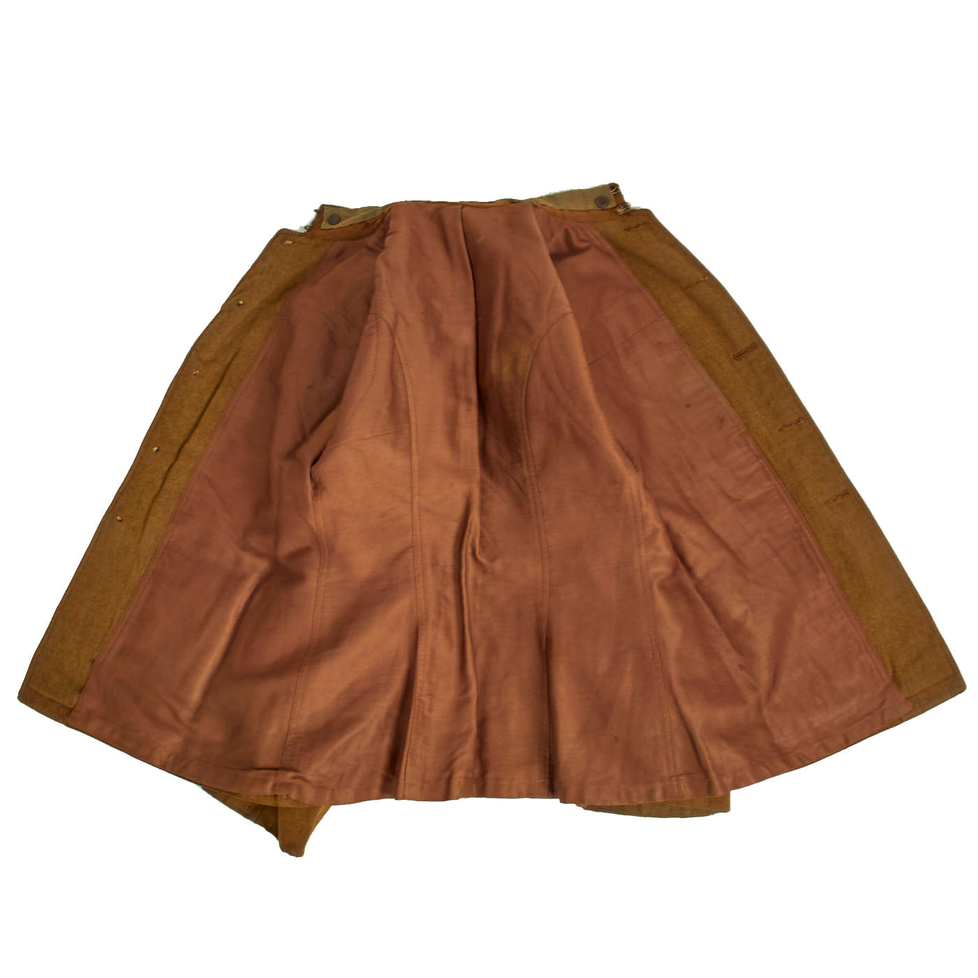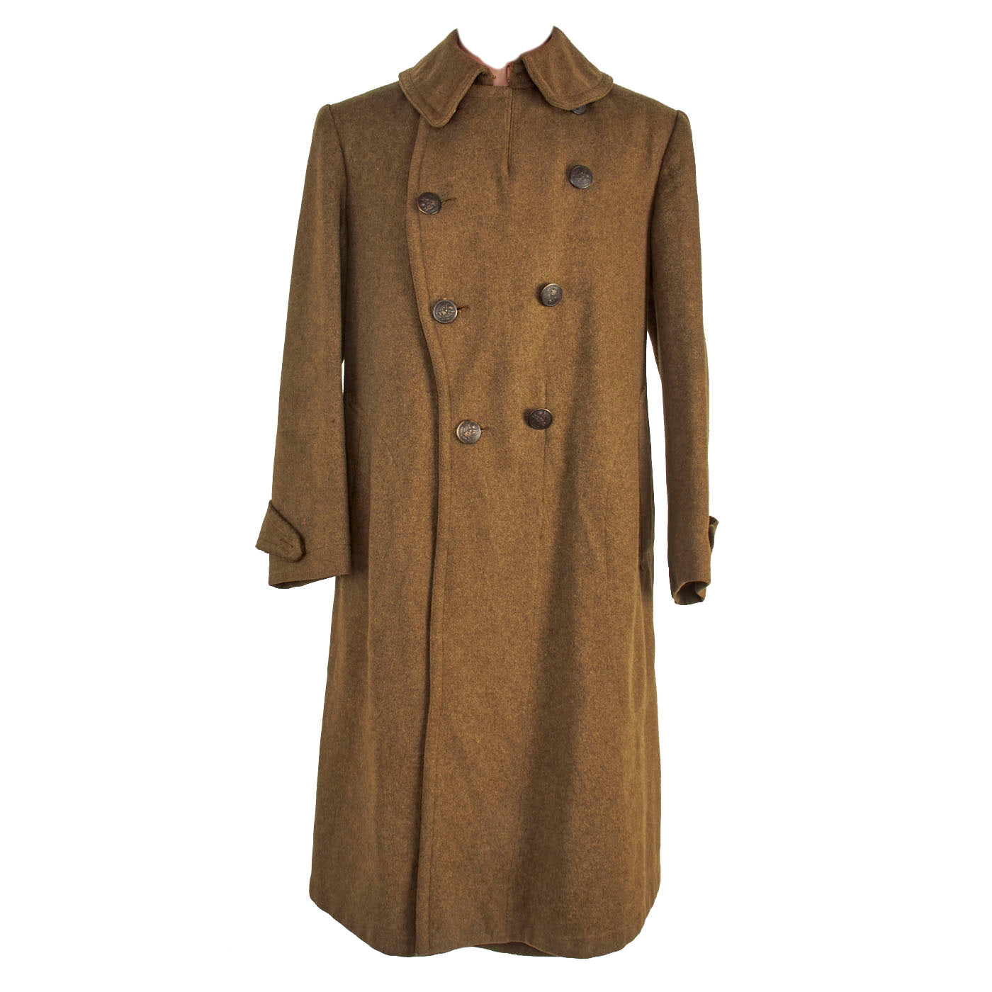 The greatcoat is in excellent condition with minor moth nips and no significant damage with all buttons present. There is a name written on the back inside lining which appears to be T.F. Pankau.