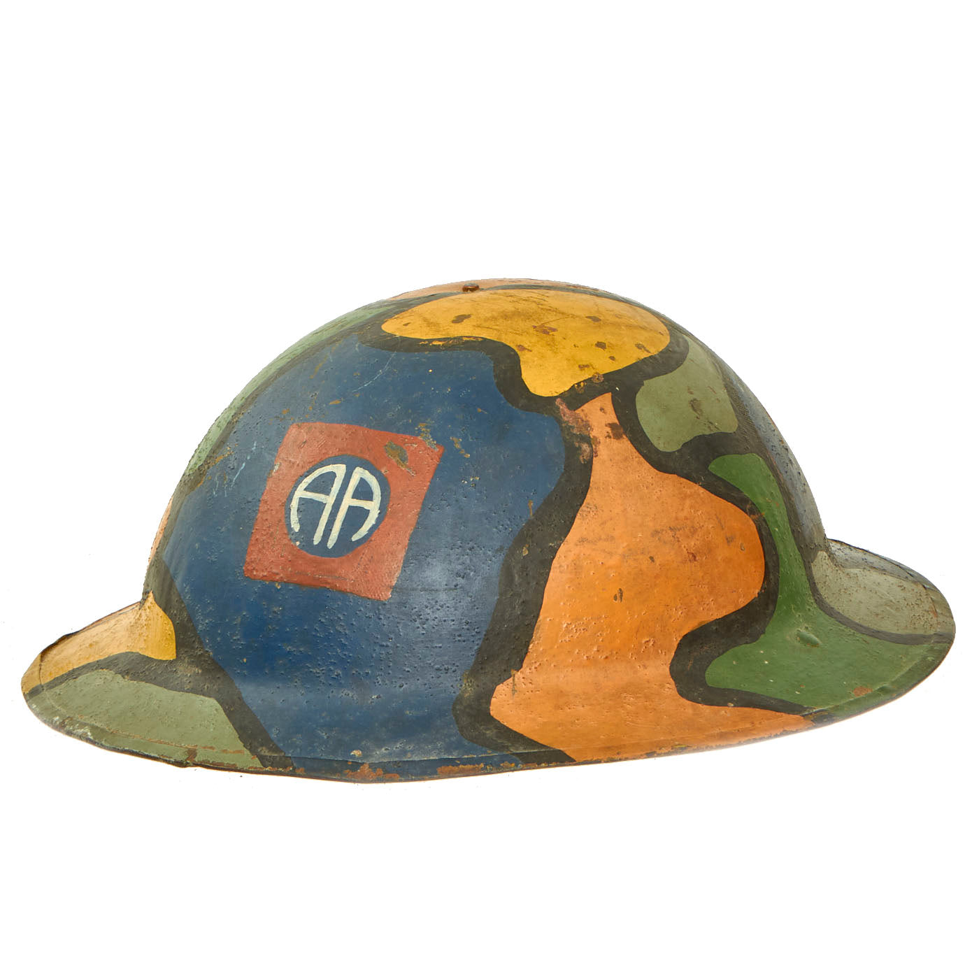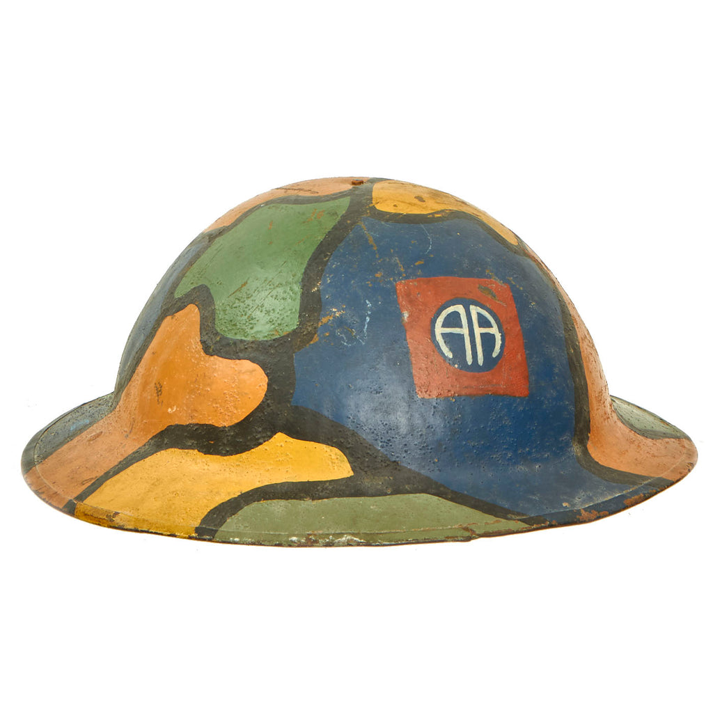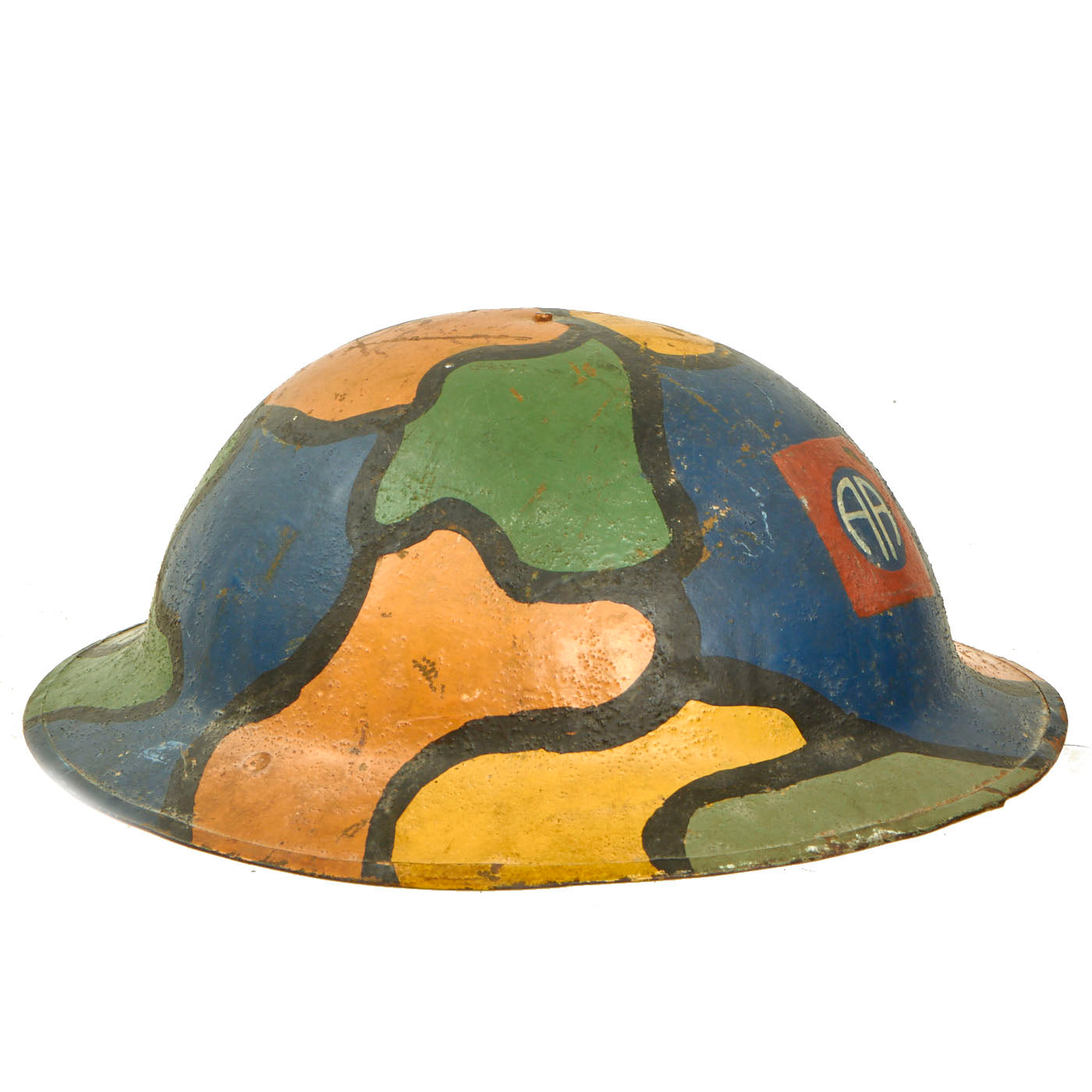 Original Item: Only One Available. When America was drawn into the European conflict it possessed no steel helmets of its own. They looked to other nations for ideas and selected the British helmet as the most suitable. Britain supplied about half a million helmets to the Americans before production of an American version was started in the U.S. This is a fantastic, genuine Great War hand painted 82nd Infantry Division British made helmet, complete with its original liner and chinstrap.