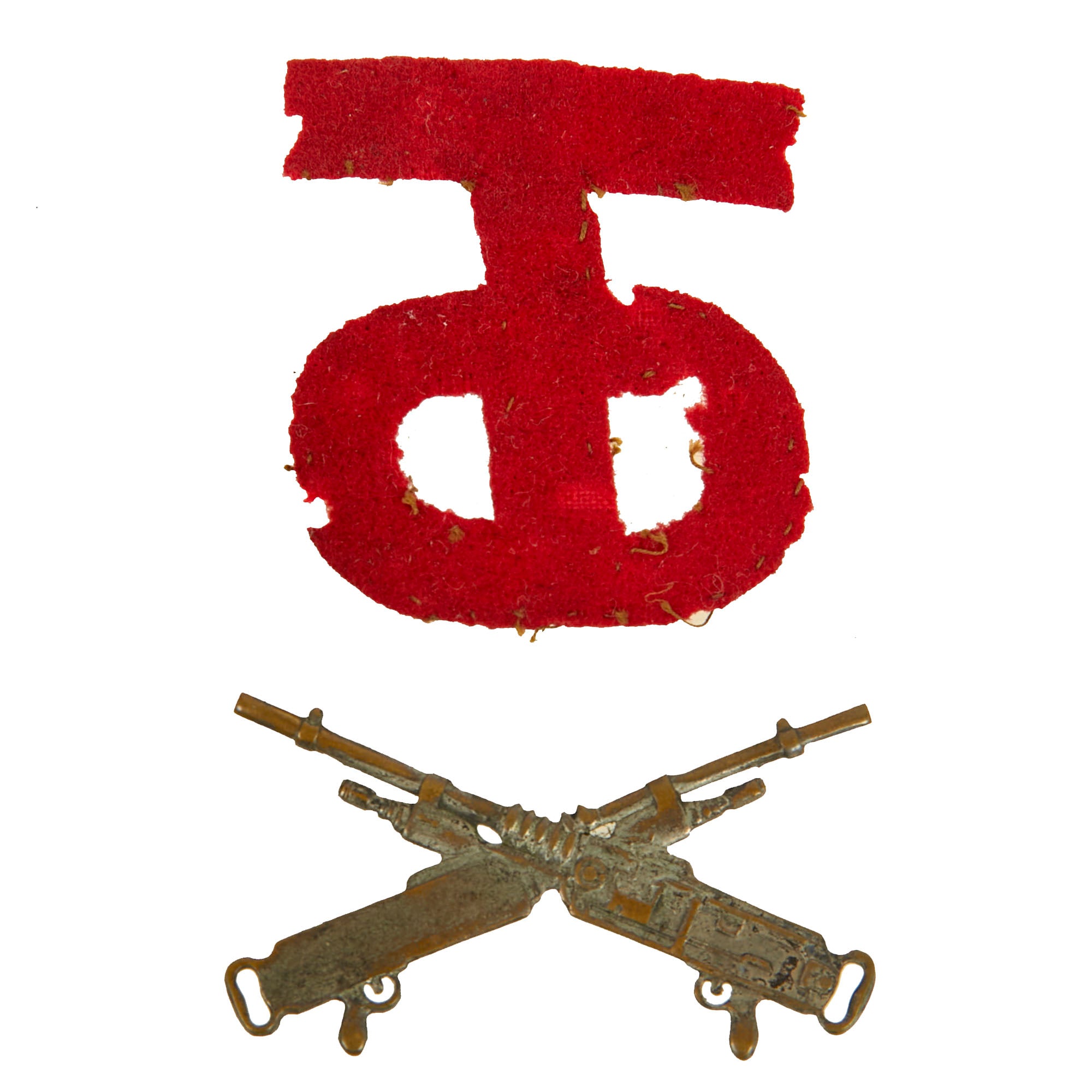 - Lovely Machine Gun Insignia with crossed French Hotchkiss MGs, a gorgeous & scarce example. If it had a pin, it’s now gone.