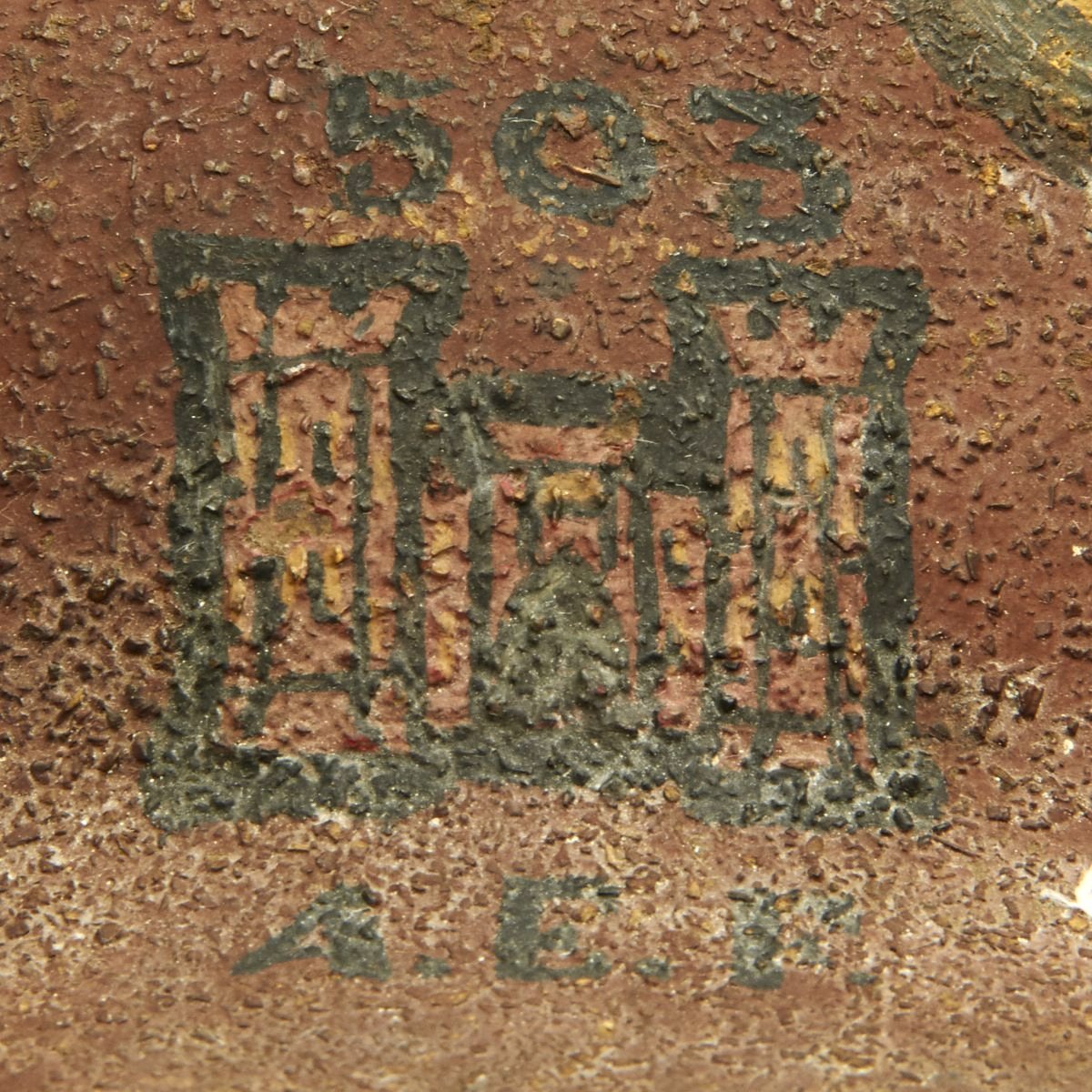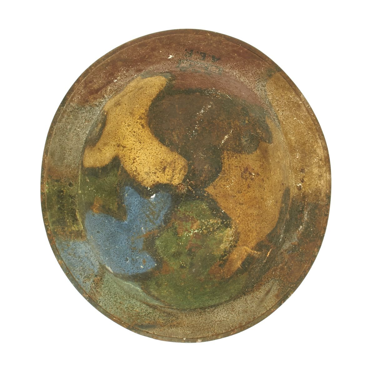 The shell has original period camouflage textured paint in yellow, black, green, dark reddish brown and blue. The front is marked with 503 over a Castle Insignia for the 503rd Engineer Service Battalion and A.E.F