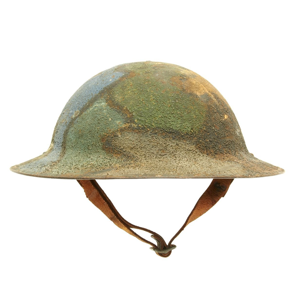 The M1917 is a near identical version of the British Mk.I steel helmet, and it is important to note that when the US joined the Great War in 1917 they were initially issued with a supply of around 400,000 British made Mk.Is, before production began state side. The M1917 differed slightly in its lining detail, and exhibited US manufacture markings.