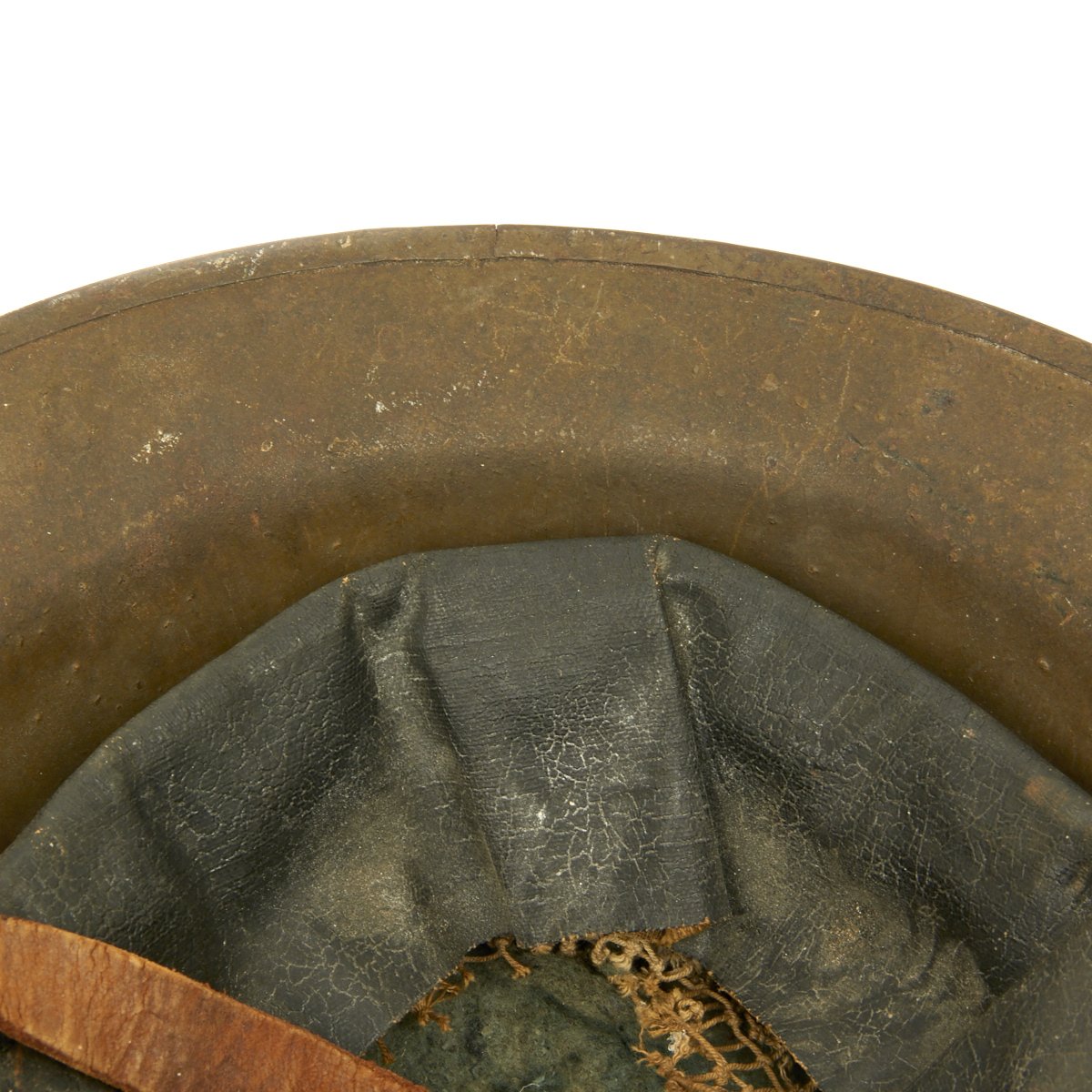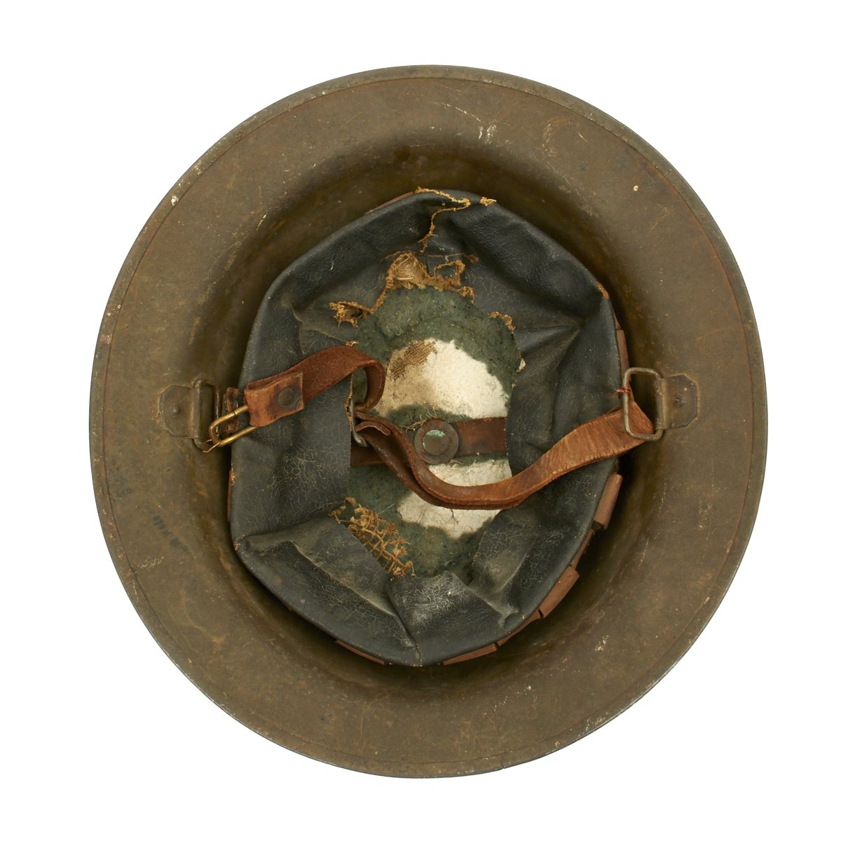 for the American Expeditionary Force. The shell is maker marked with the stamping on the underside of the rim ZC 177. Helmet is complete with complete liner and chinstrap.