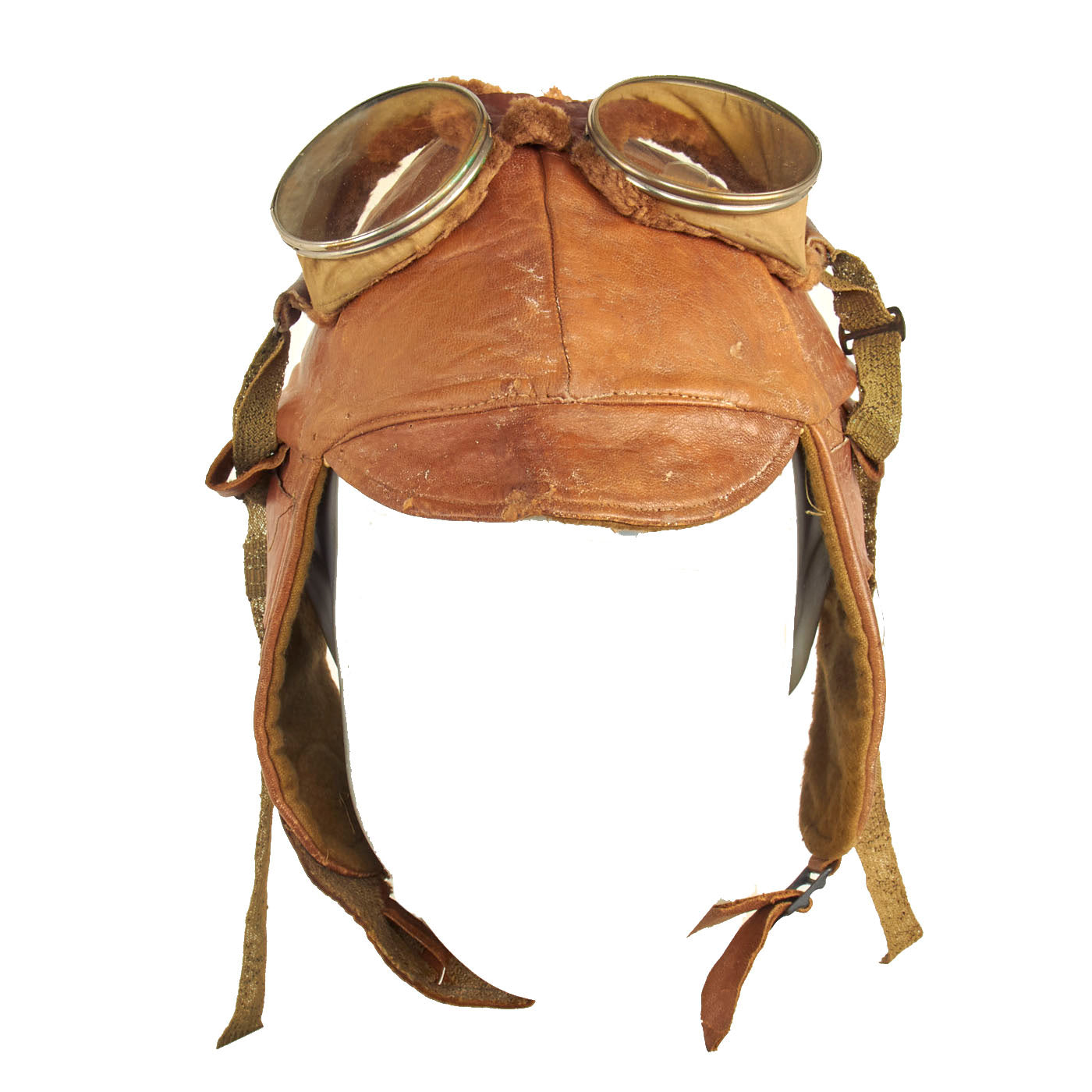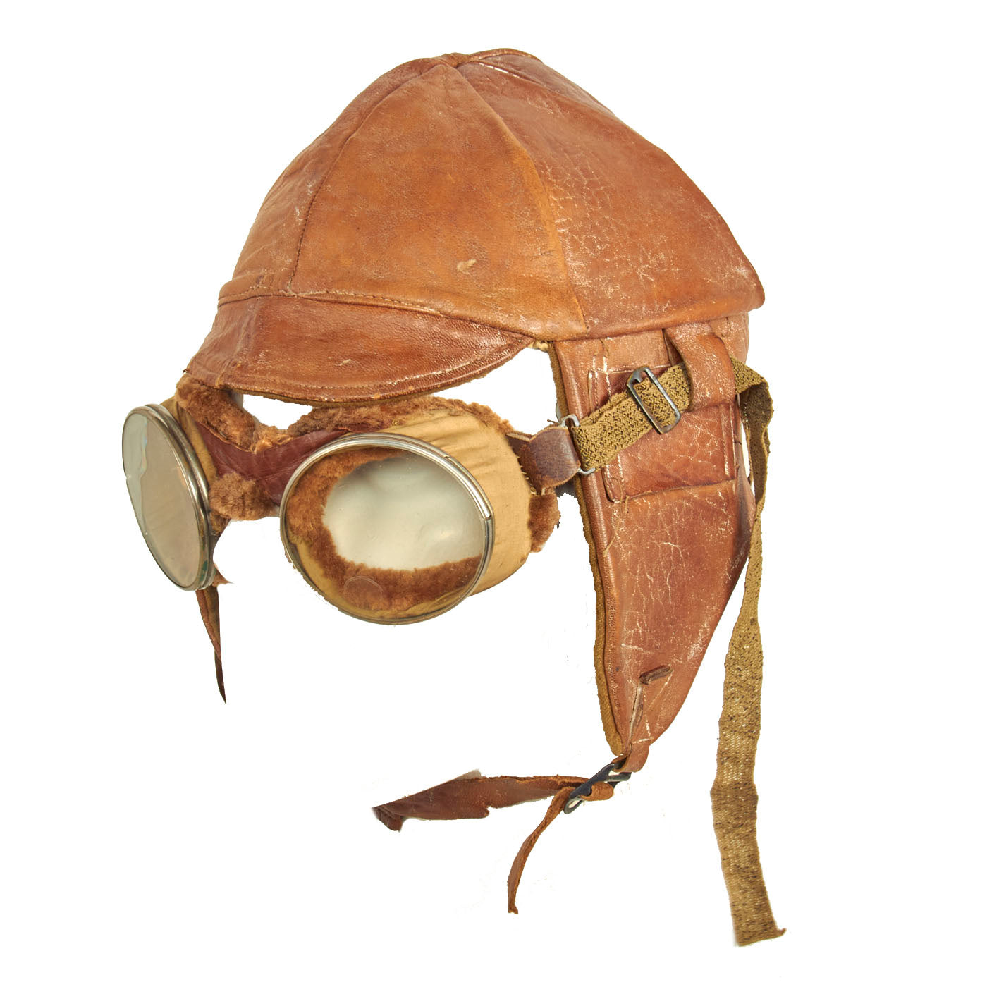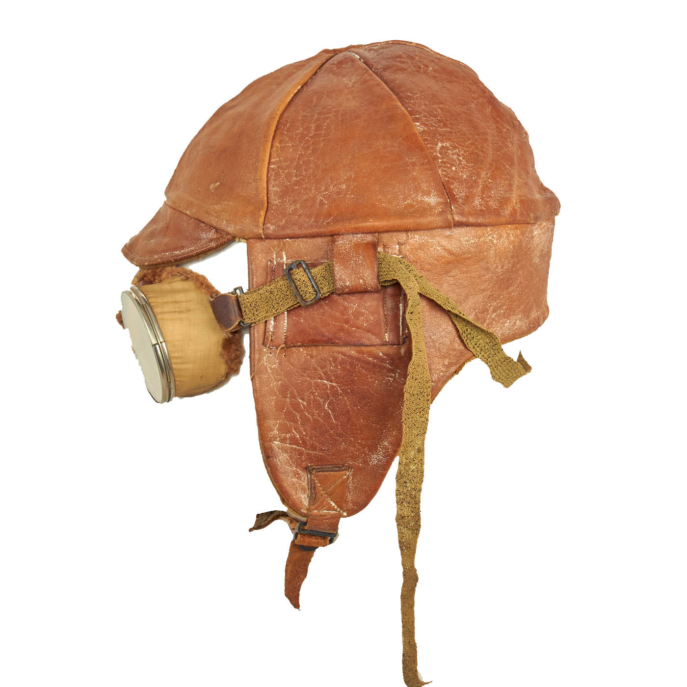Aero Squadron fliers were initially required to purchase their own flight equipment and Spalding was the foremost supplier of such gear. The largest maker of the "Protective flight helmet" was AG Spalding Company. Included still attached to the helmet is a lovely pair of fur lined flight goggles.