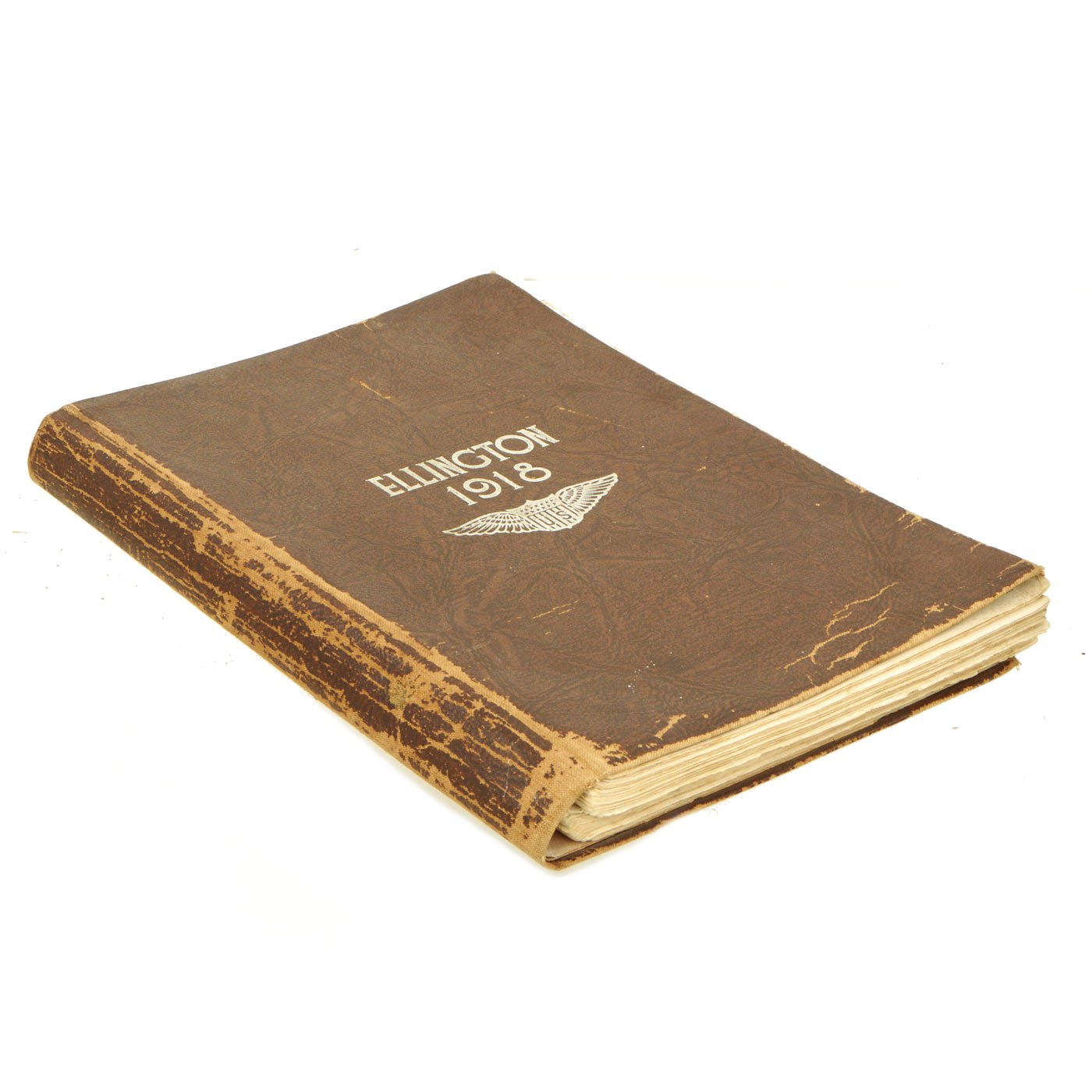 Offered in overall in very good condition, with some areas of loss to the leather apron, these helmets are incredibly difficult to find on the market today. Also included is a WWI Ellington Field 1918 year book which came with the helmet.