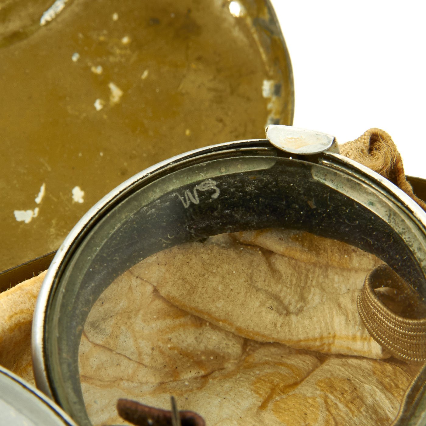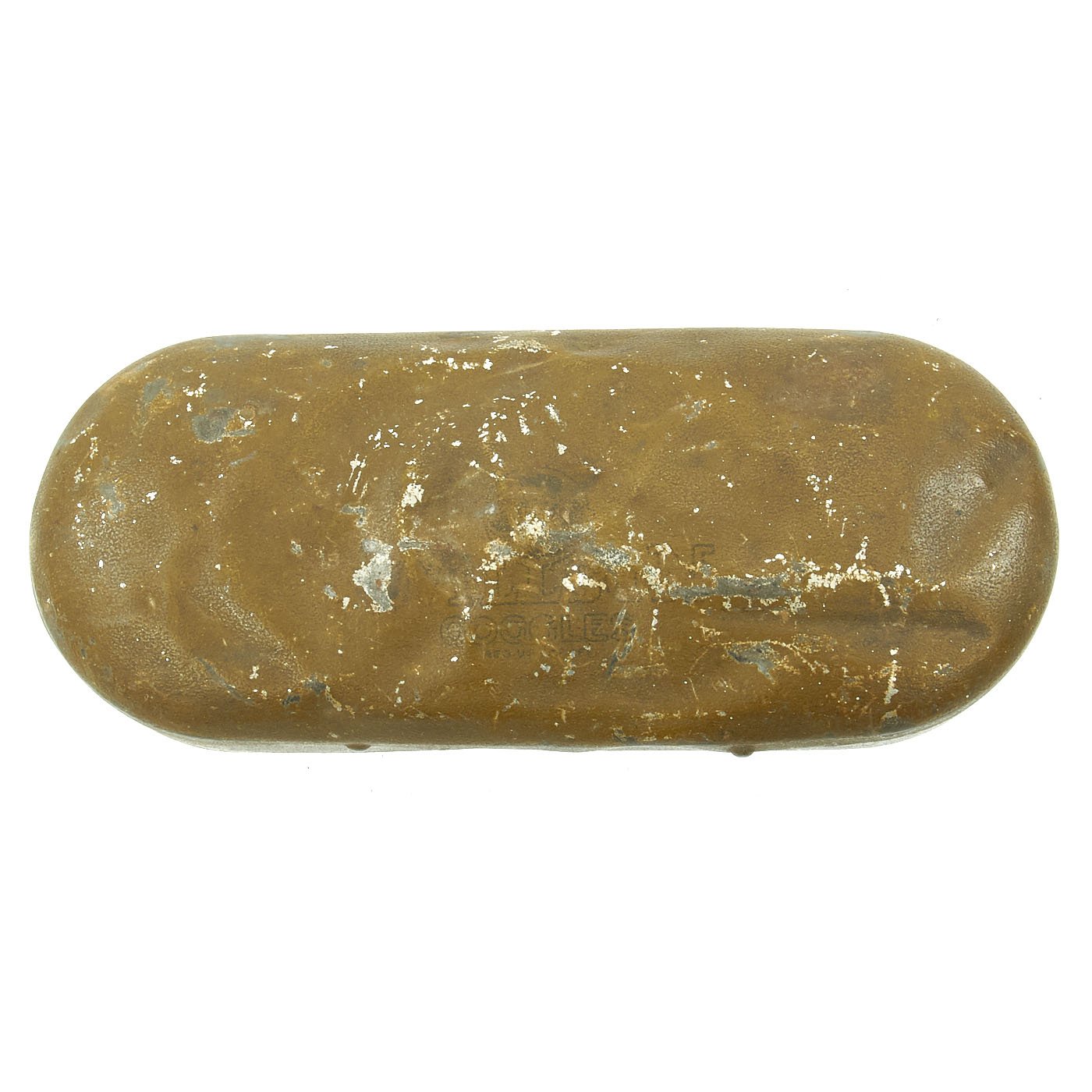 Due to the denting on the lid of the case, it is hard to make out these markings. The case does still work well, but definitely saw quite a bit of use, and did a good job of protecting the goggles from catastrophic damage. There is an old paper towel inside the case for padding. The original label insert inside the case is unfortunately missing.