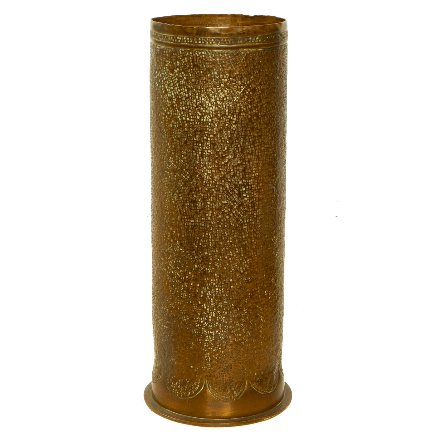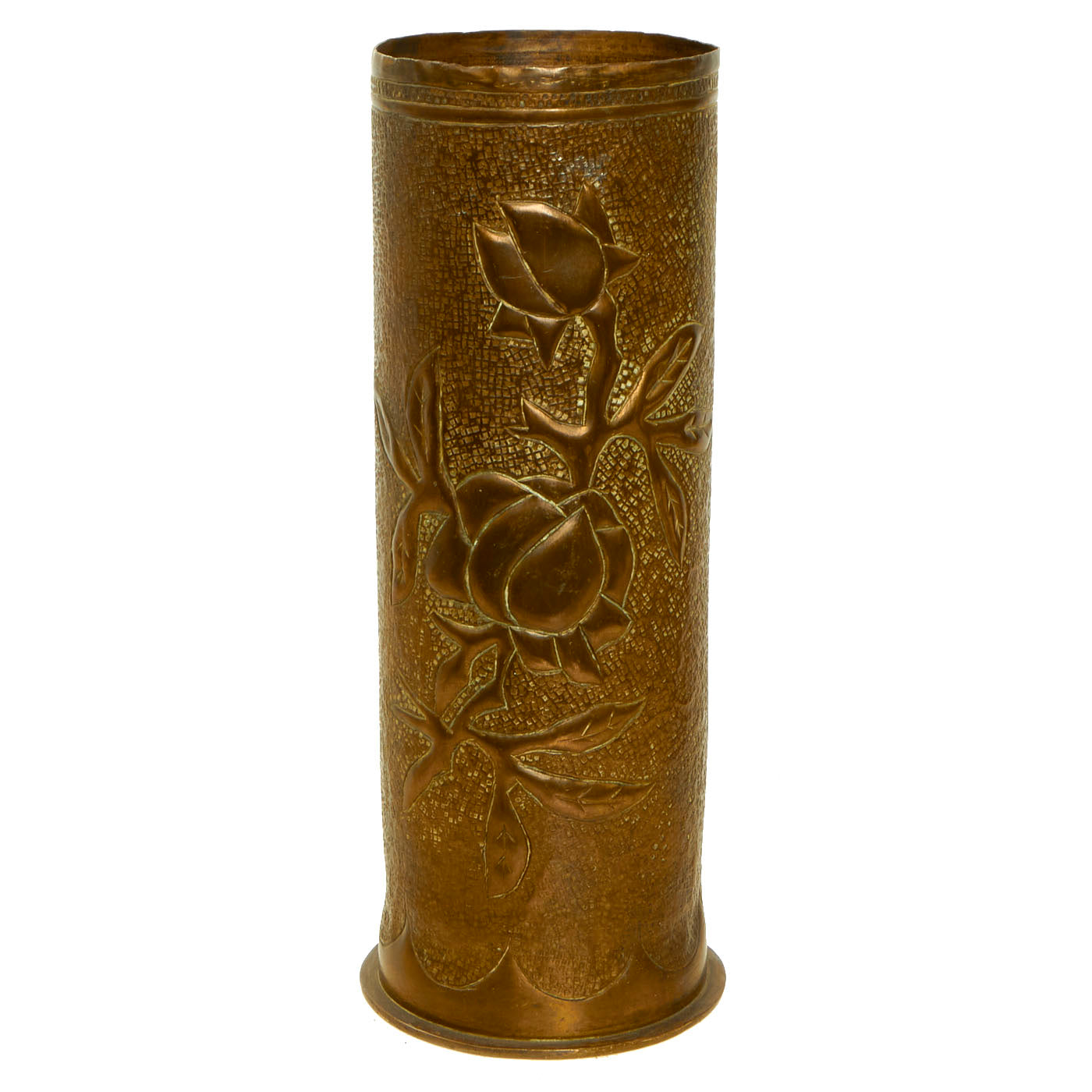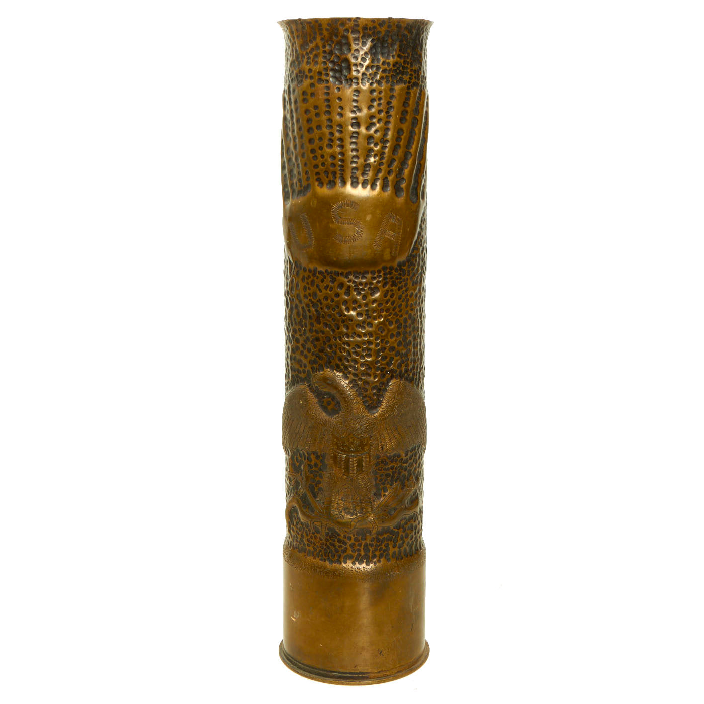 All items appear to be made from 75mm shell casings, which was the “go to” for trench art as these shell casings were literally everywhere. They are in wonderful condition and feature incredible artwork!