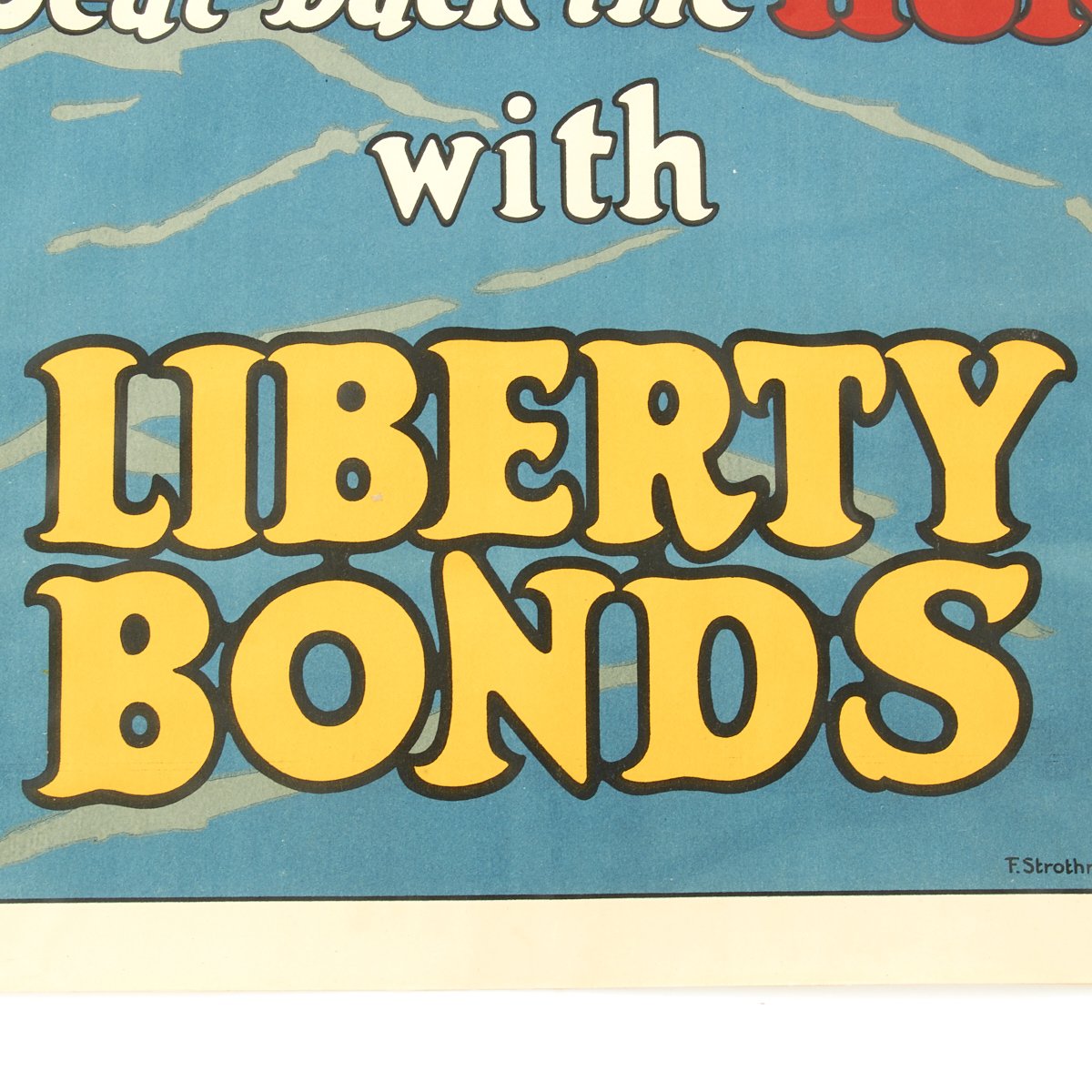 Original Item: Only One Available. Beat Back the Hun with Liberty Bonds. Artist F. Strothmann. Original World War 1 antique vintage poster; ready to frame. In very good to excellent condition. Size 20" x 30"
