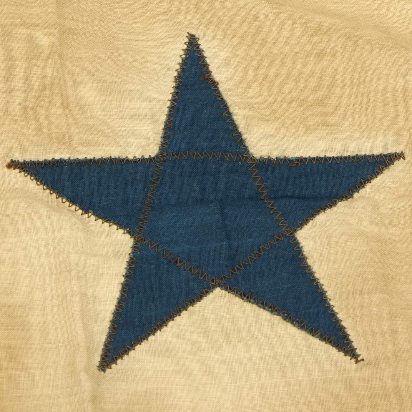 The flag is still in very good condition, with the expected age toning and fading of the colors. One side is definitely more faded than the other. It does have a header, but this has been tack stitched folded over, probably so it would not show when the flag was hung up on a wall.