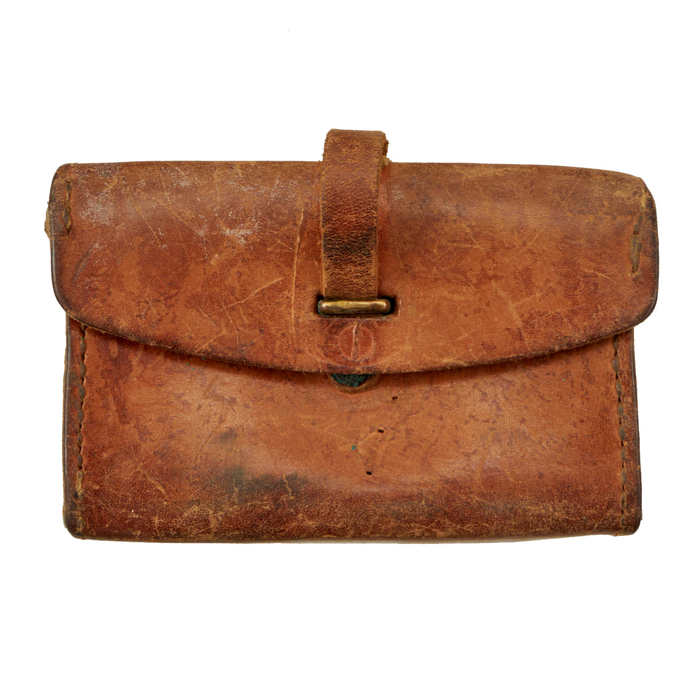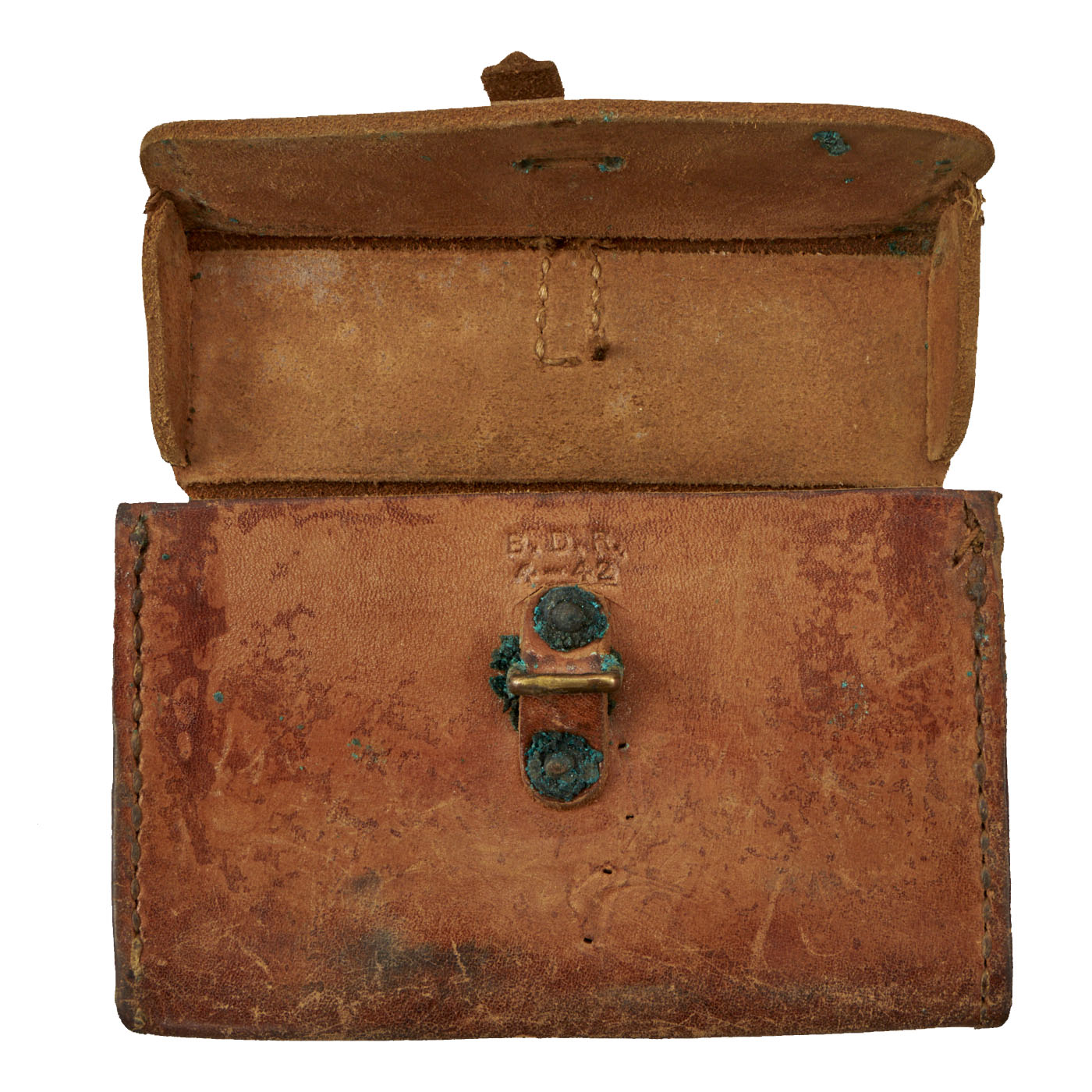Also included is a leather spare parts pouch (empty) which can be perfectly fit into one of the magazine cells. The pouch is nicely marked B.D.R 4-42 (April, 1942).