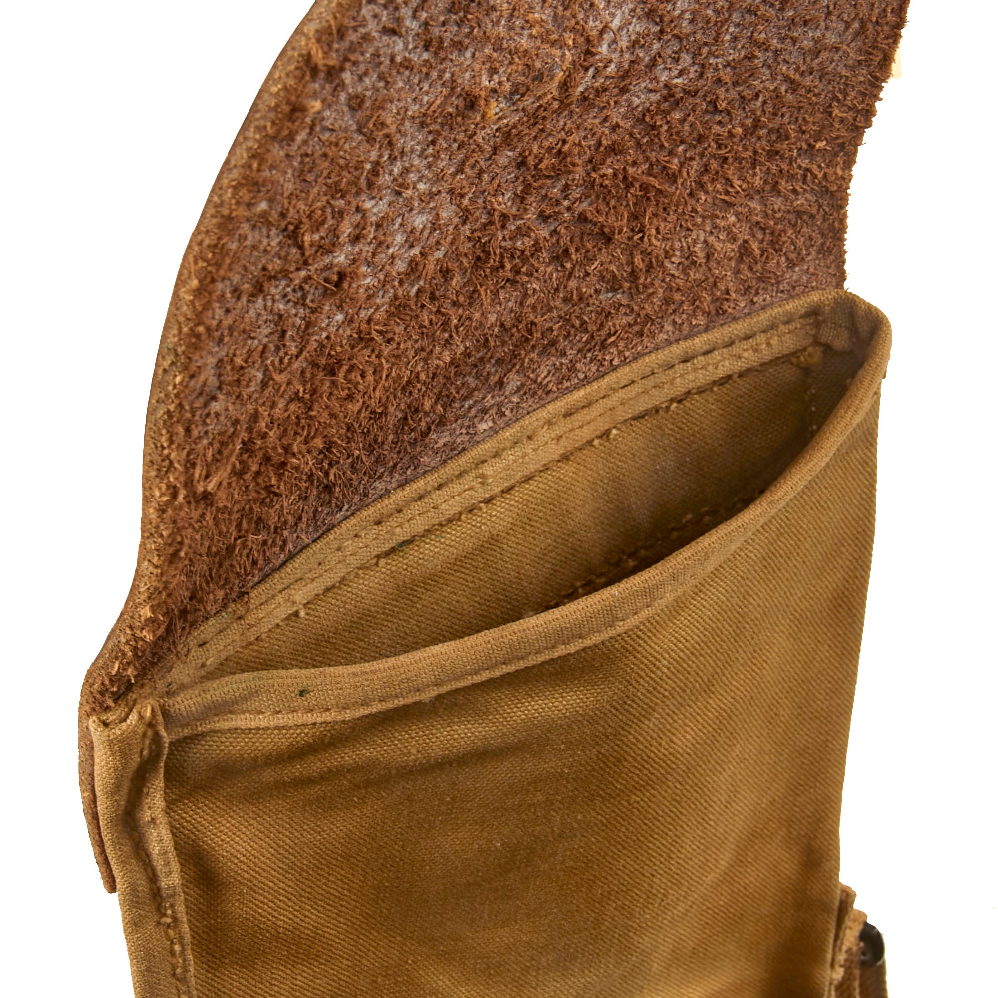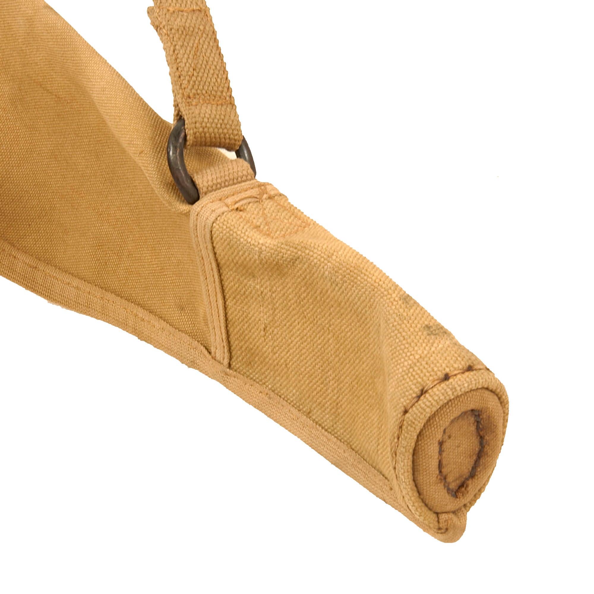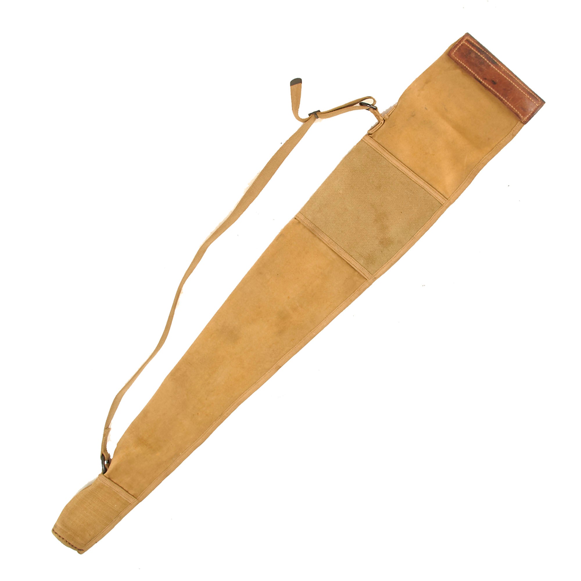 The rifle carry case is of an earlier type as it still has the top leather closure flap, while the later models had used canvas. These cases would have been used to keep your rifle protected from the elements while it was not being used. The case is complete with all buckles, straps and correct carry sling. A very stellar example!