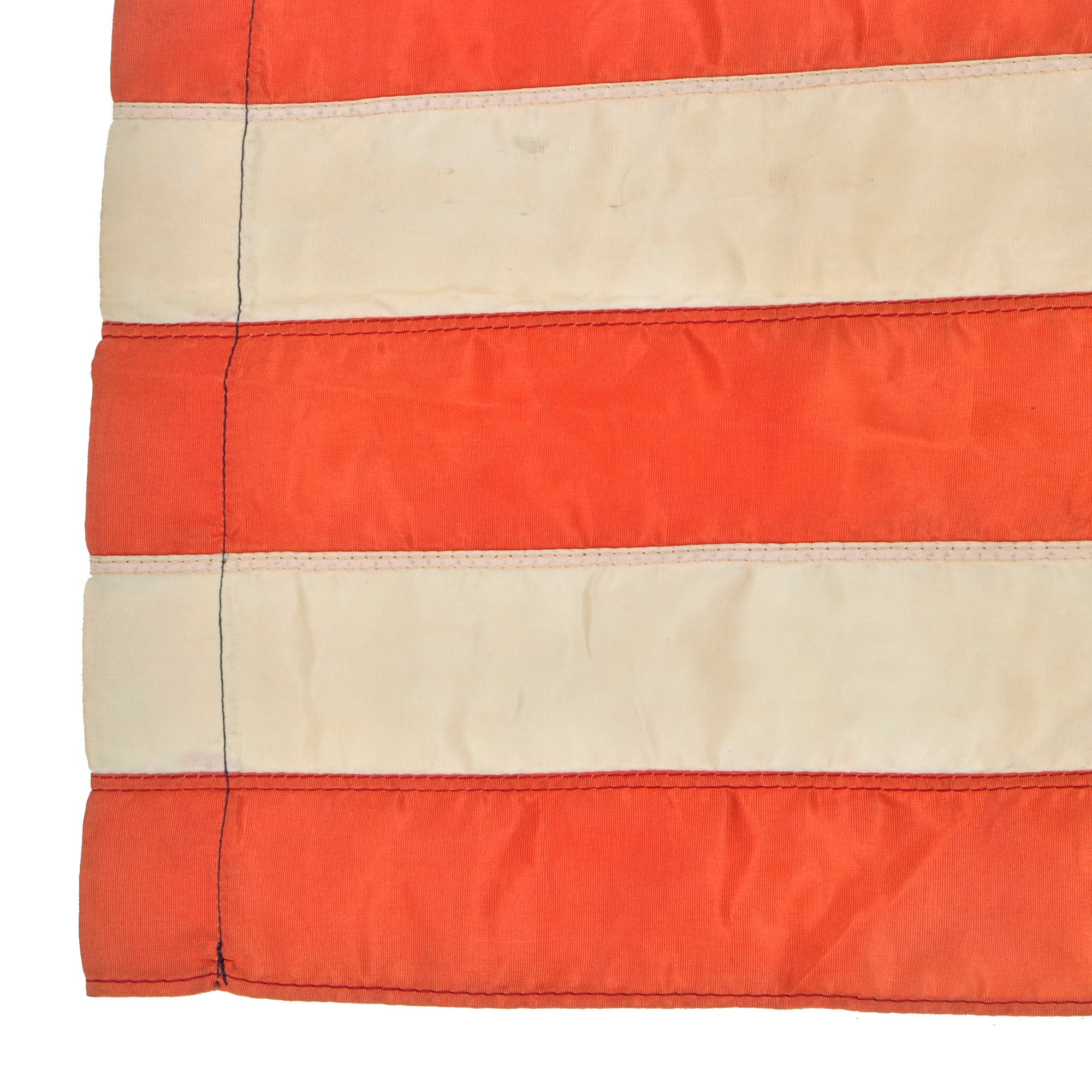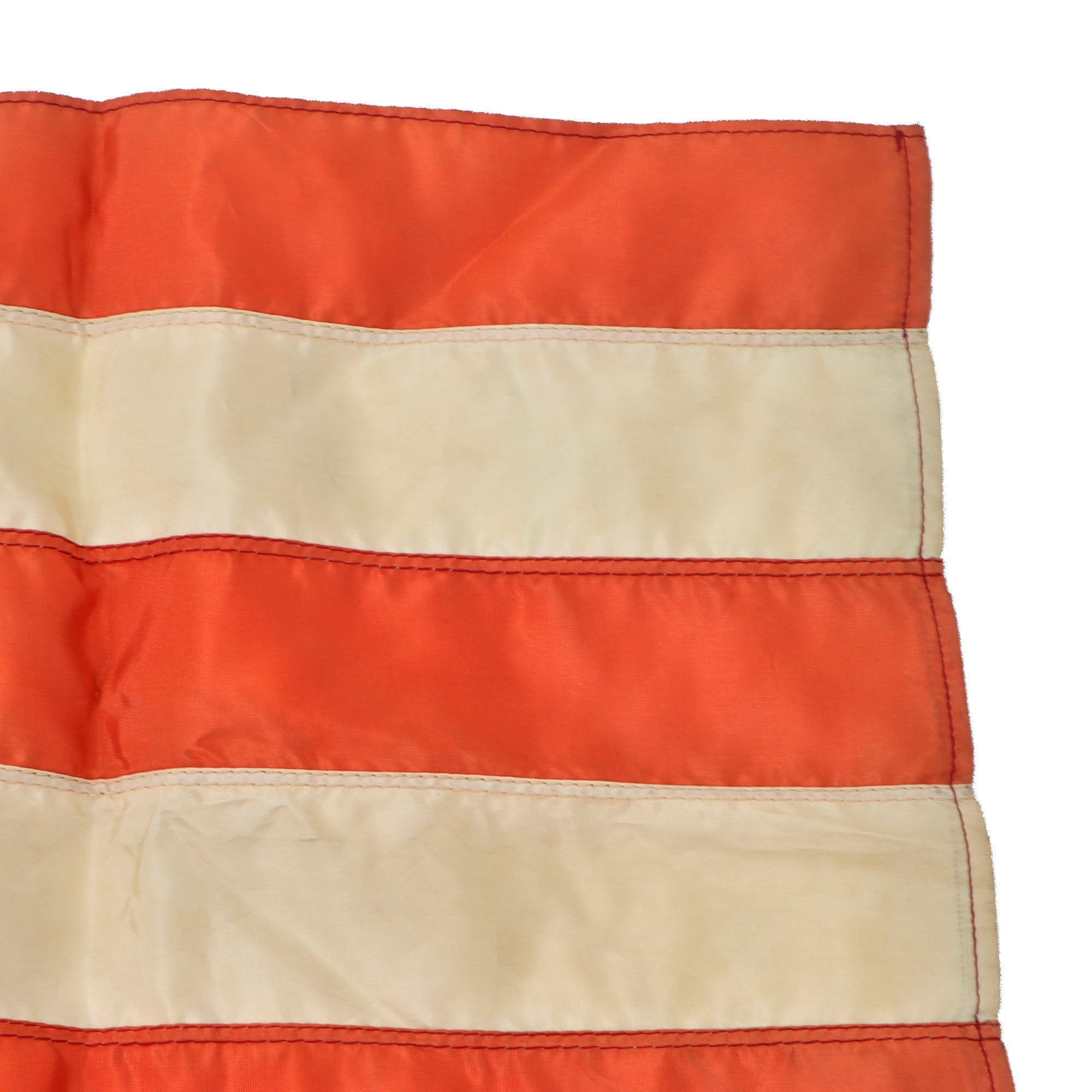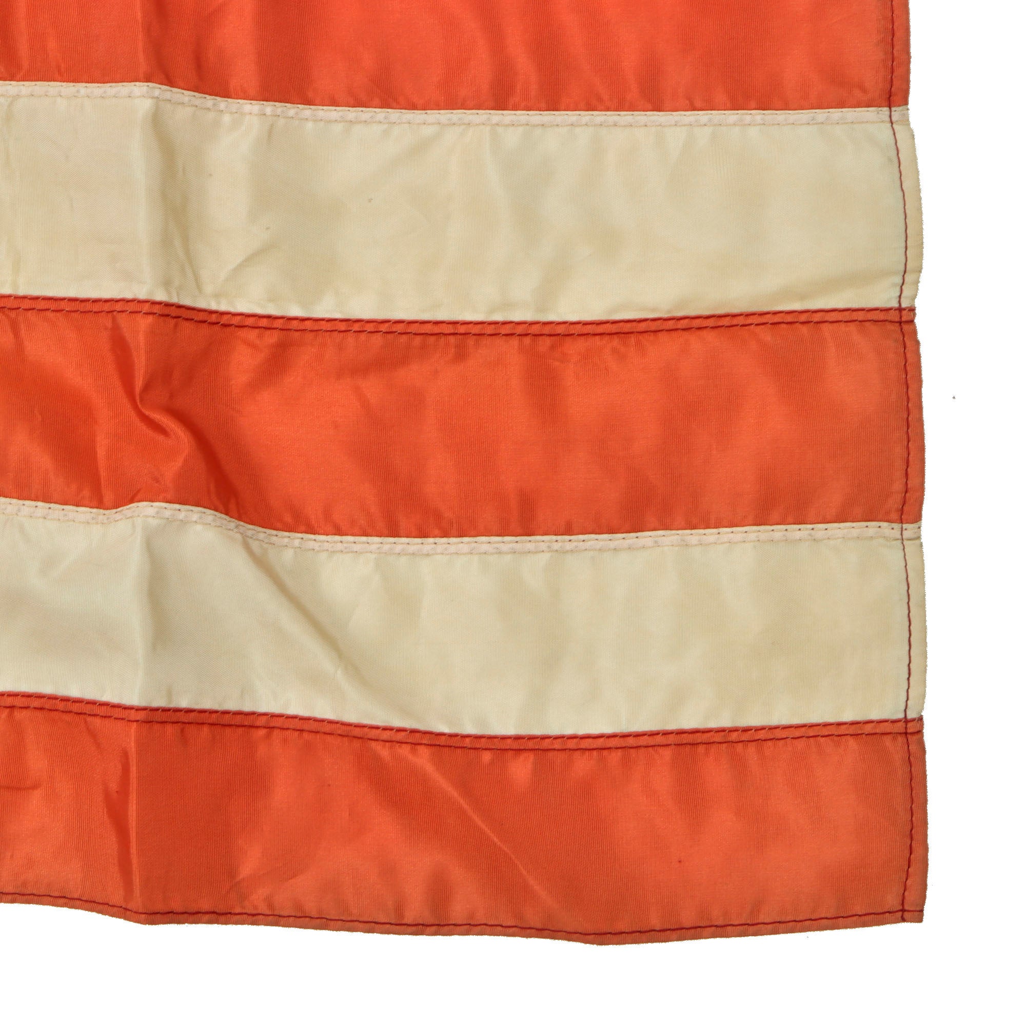 This is a very nice rayon-like material construction World War One Era American Flag with individually embroidered stars and great overall stitching. There are no maker markings we can see. Not much damage either.