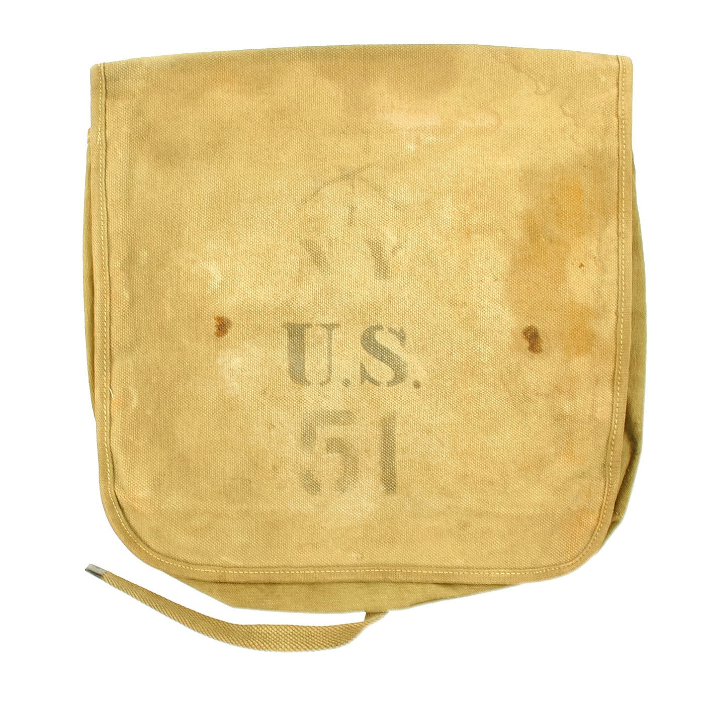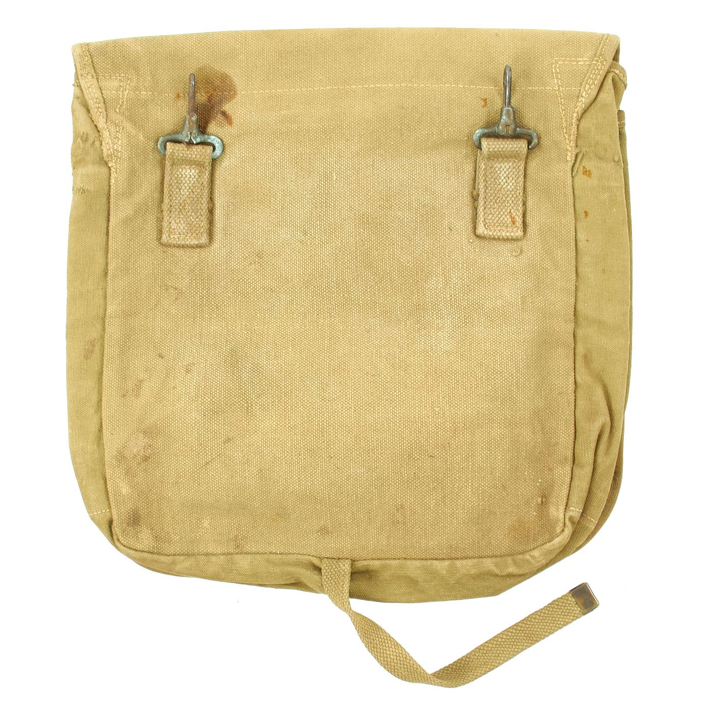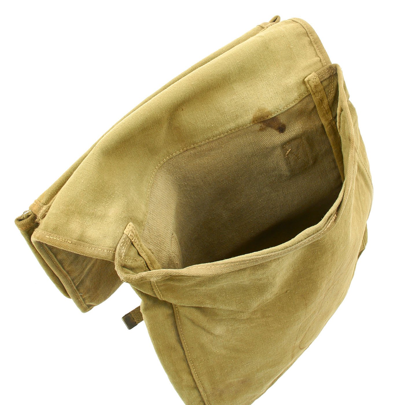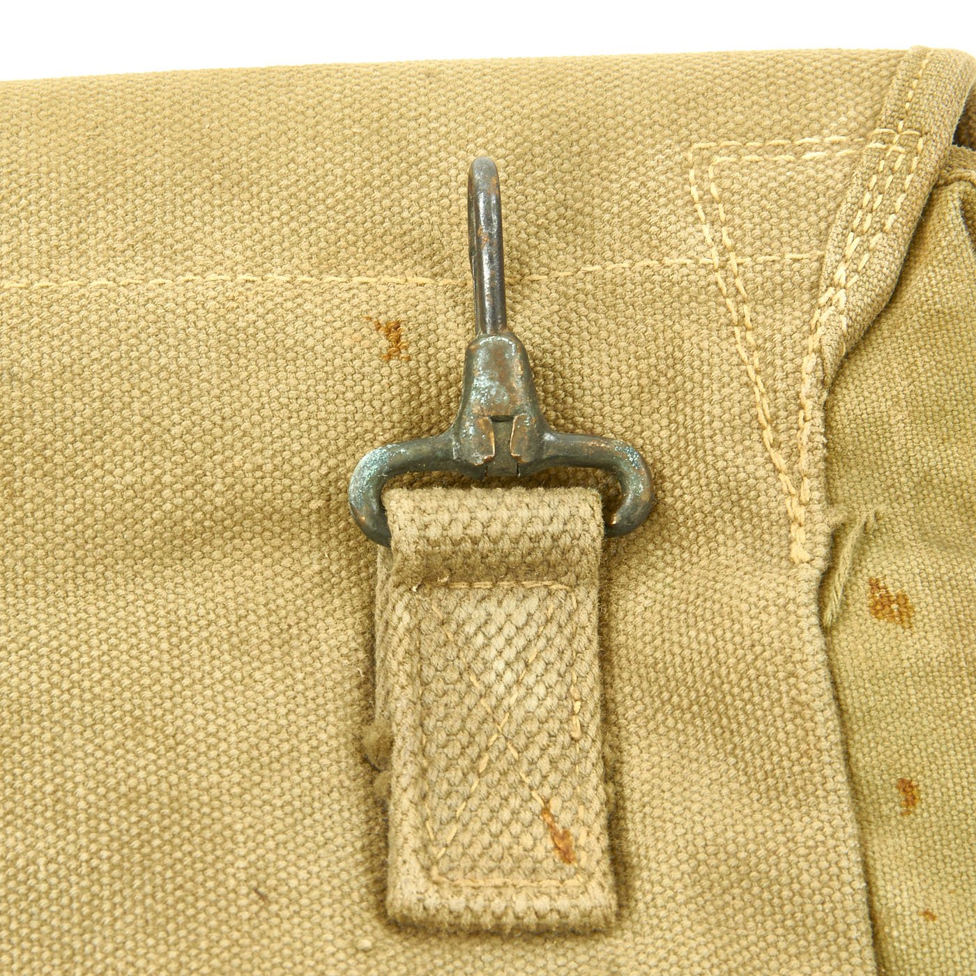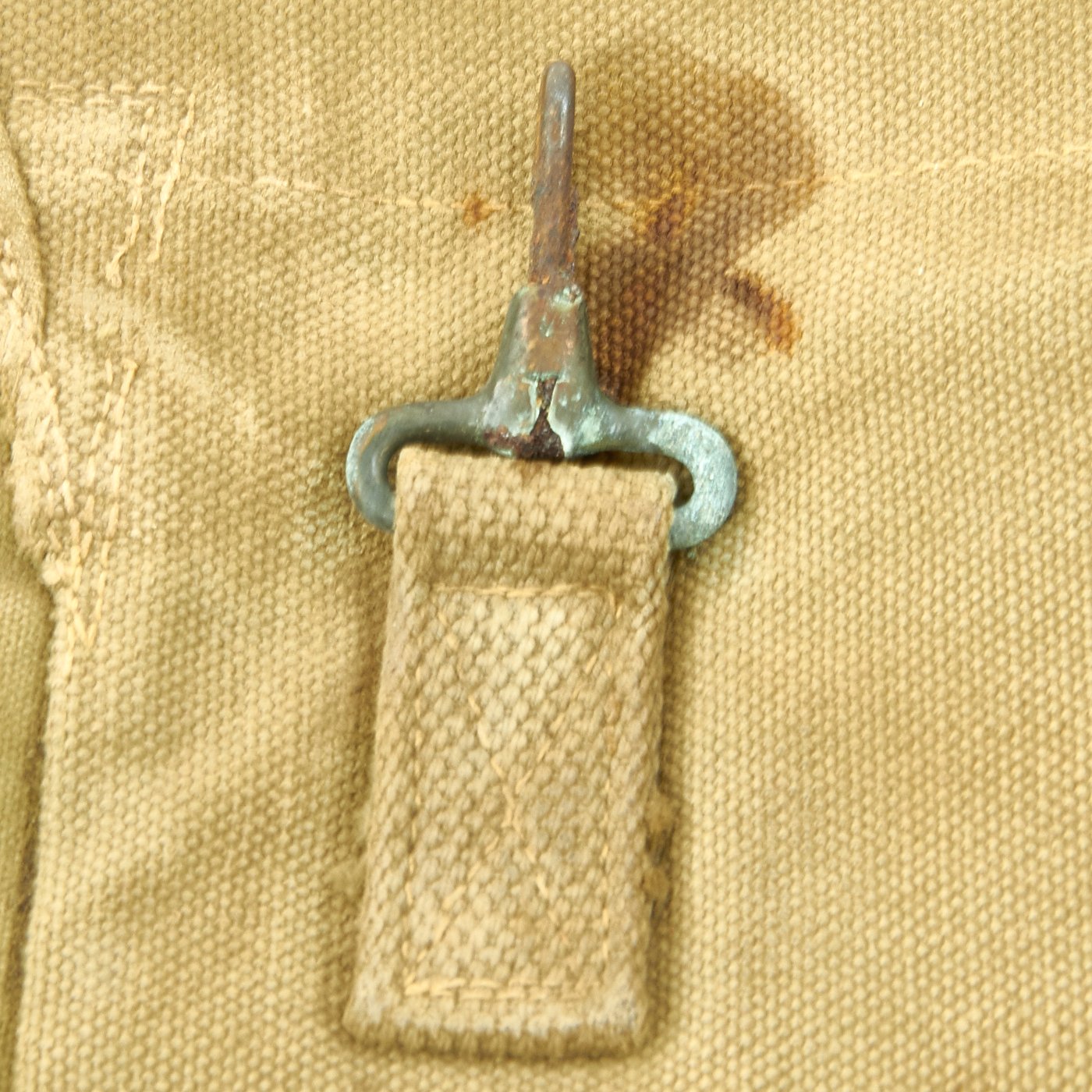Condition of the haversack is very nice, with wear and staining commensurate to the age. All components are present and functional, though one of the rear snap hooks is quite rusted, and has stained the canvas. This is a very nice example of a Unit-Marked M1904 Haversack. Ready to display!
