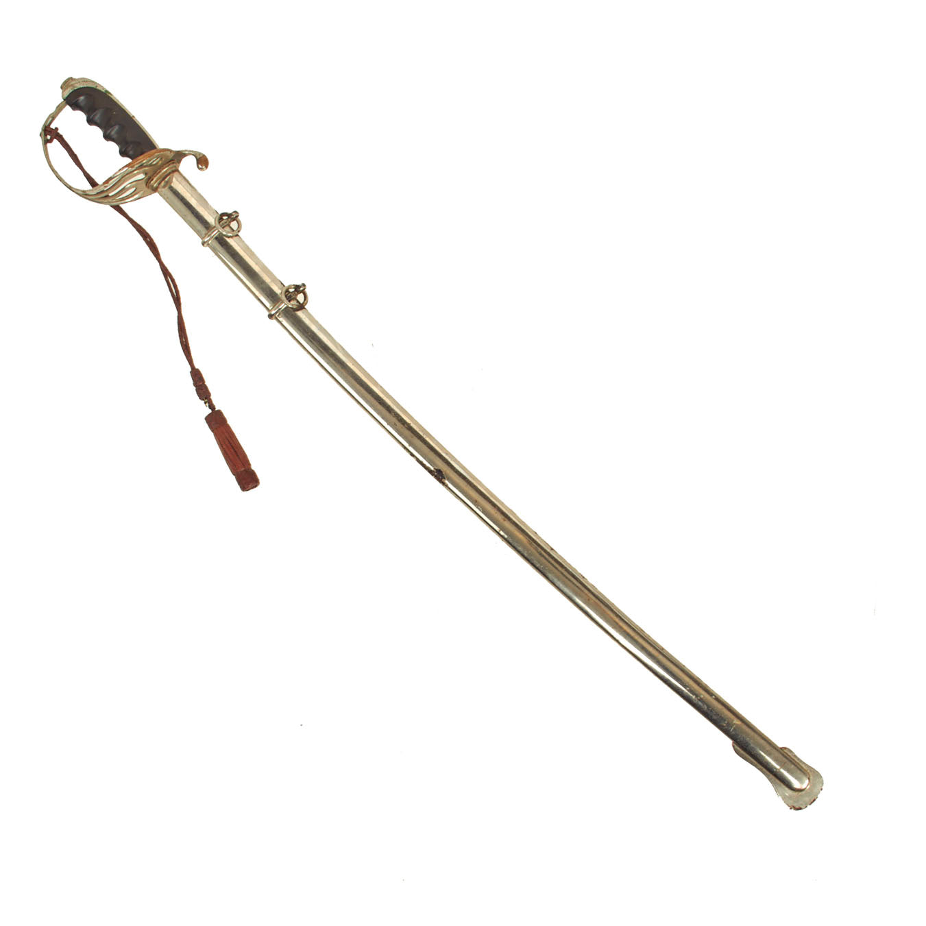 Original Item: Only One Available. The Model 1902 Army Officers' Saber is the current sword used by officers of the United States Army. The official nomenclature for the current regulation U.S. Army saber is “saber for all officers, Model 1902”. It was adopted on July 17, 1902 by authority of General Order No. 81. The M1902 saber was authorized for all officers, both infantry and cavalry, with the exception of Chaplains. The lightly curved blade measures between 30-34 inches long with weights initially specified by the U.S. Army to be between 20.2 and 22.8 ounces (573 to 647 grams) and a point of balance of 3.25 inches from the hilt as specified for infantry sabers.