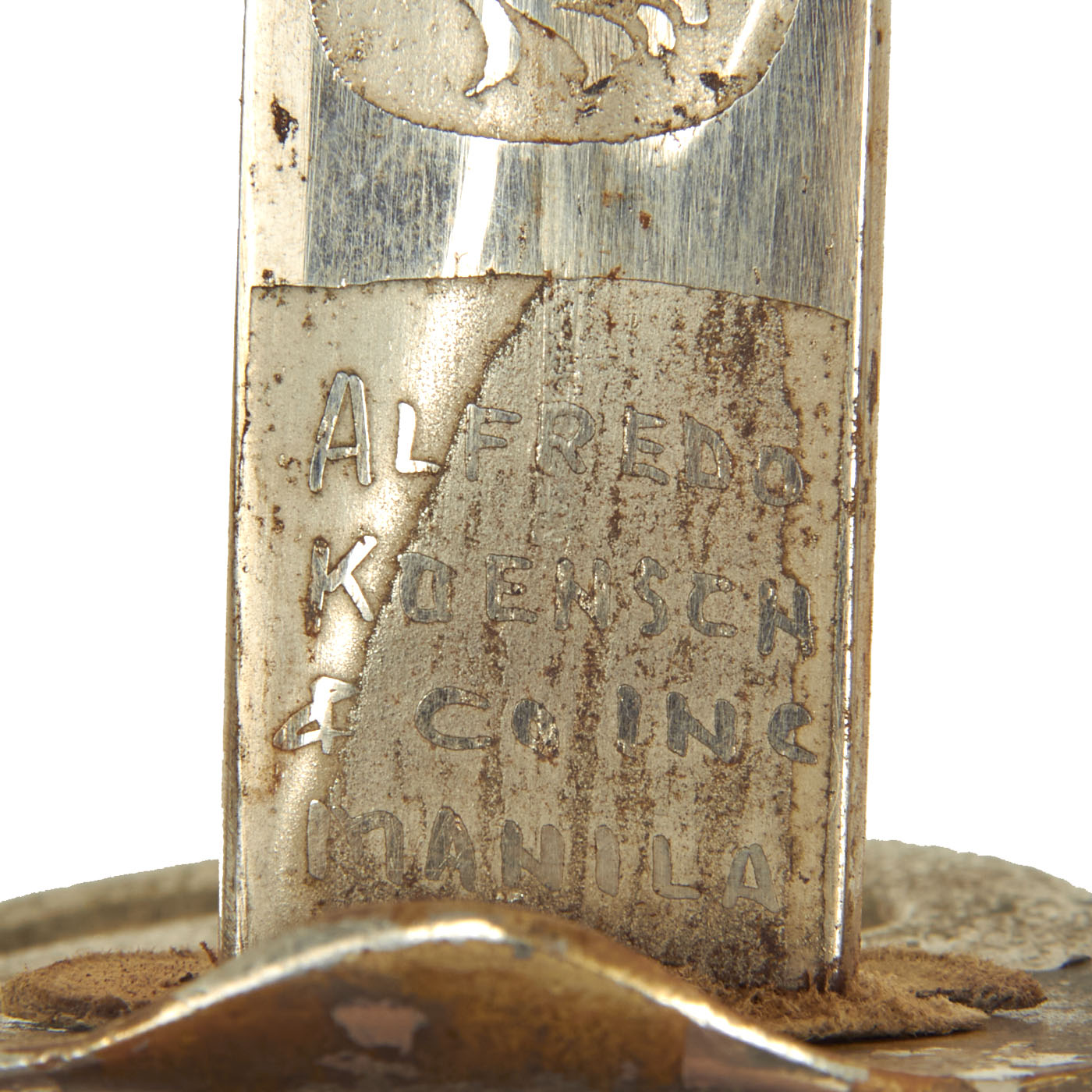 The ricasso is etched with an unknown maker or supplier information: