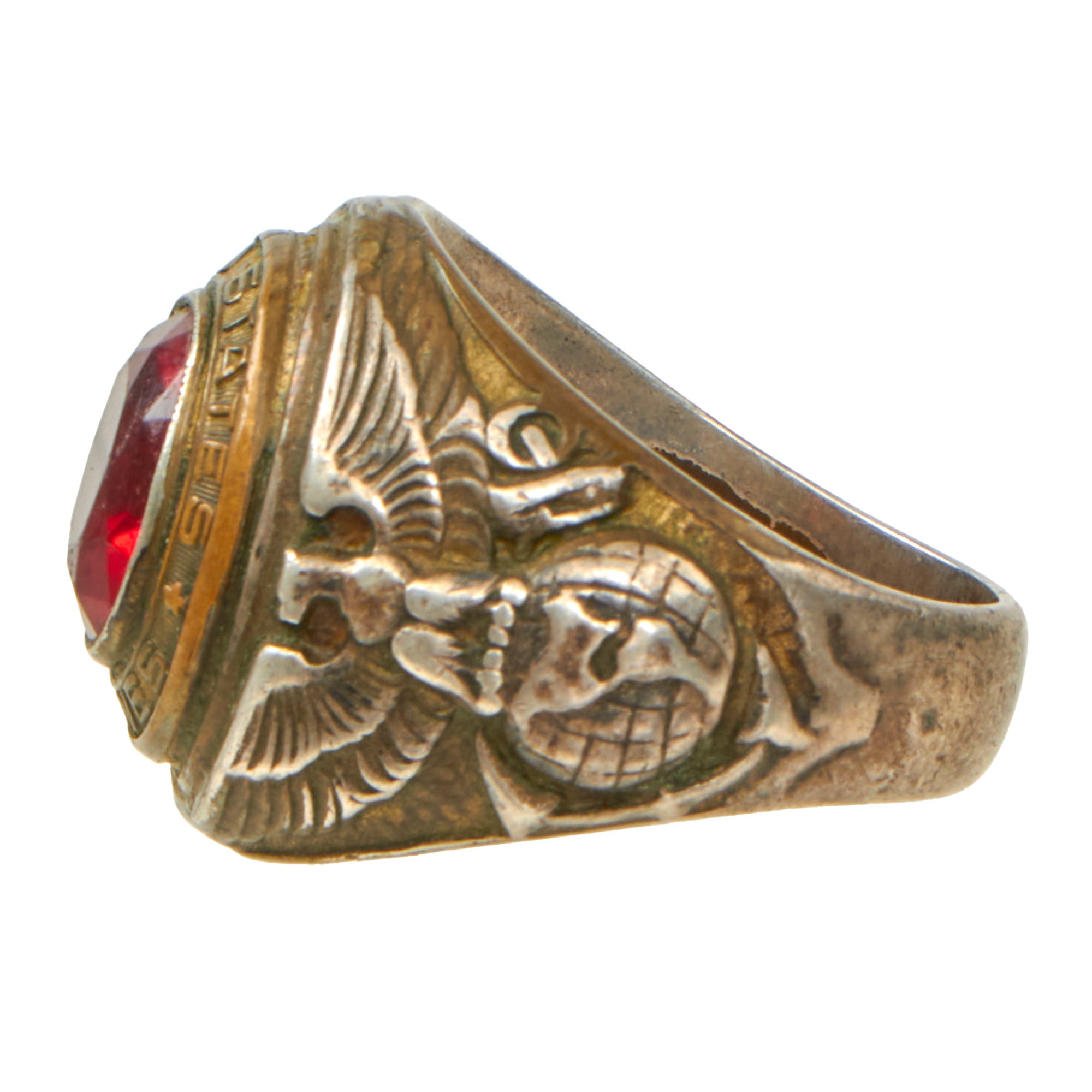 Original Item: Only One Available. This is an exquisite United States Marine Corps Officer's Class Style ring dating back to the World War I era. The ring was a prized possession often purchased by graduates of various schools designated to mold college graduates into Marine Corps leaders. This practice was not limited to officers, as anyone serving in the armed forces had the privilege to purchase and wear this ring. The ring is a symbol of pride and honor that represents the hard work and dedication of those who have served their country. Even today, graduating recruits from Marine Corps boot camp can customize and purchase a similar ring as a cherished reminder of their commitment to serving the nation.