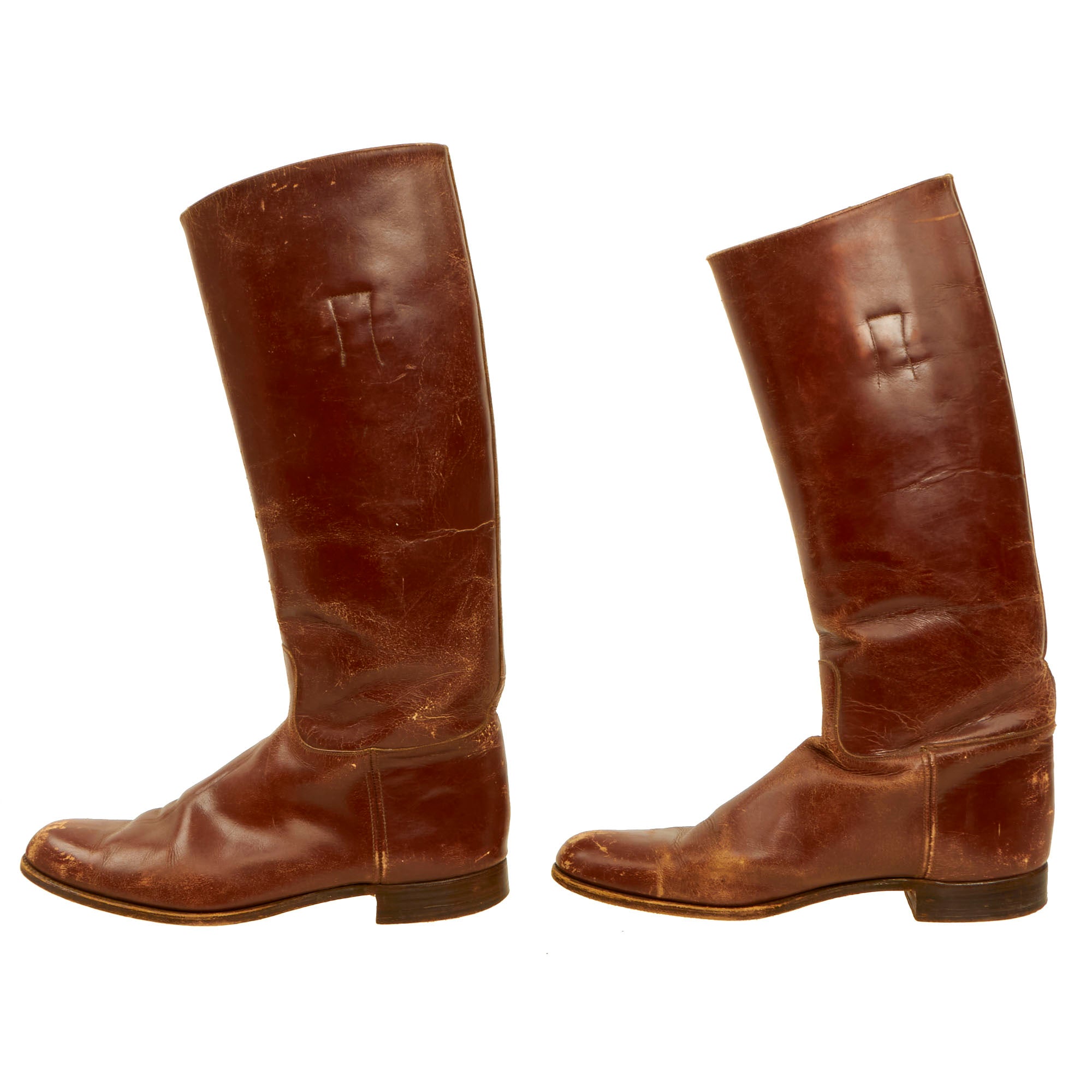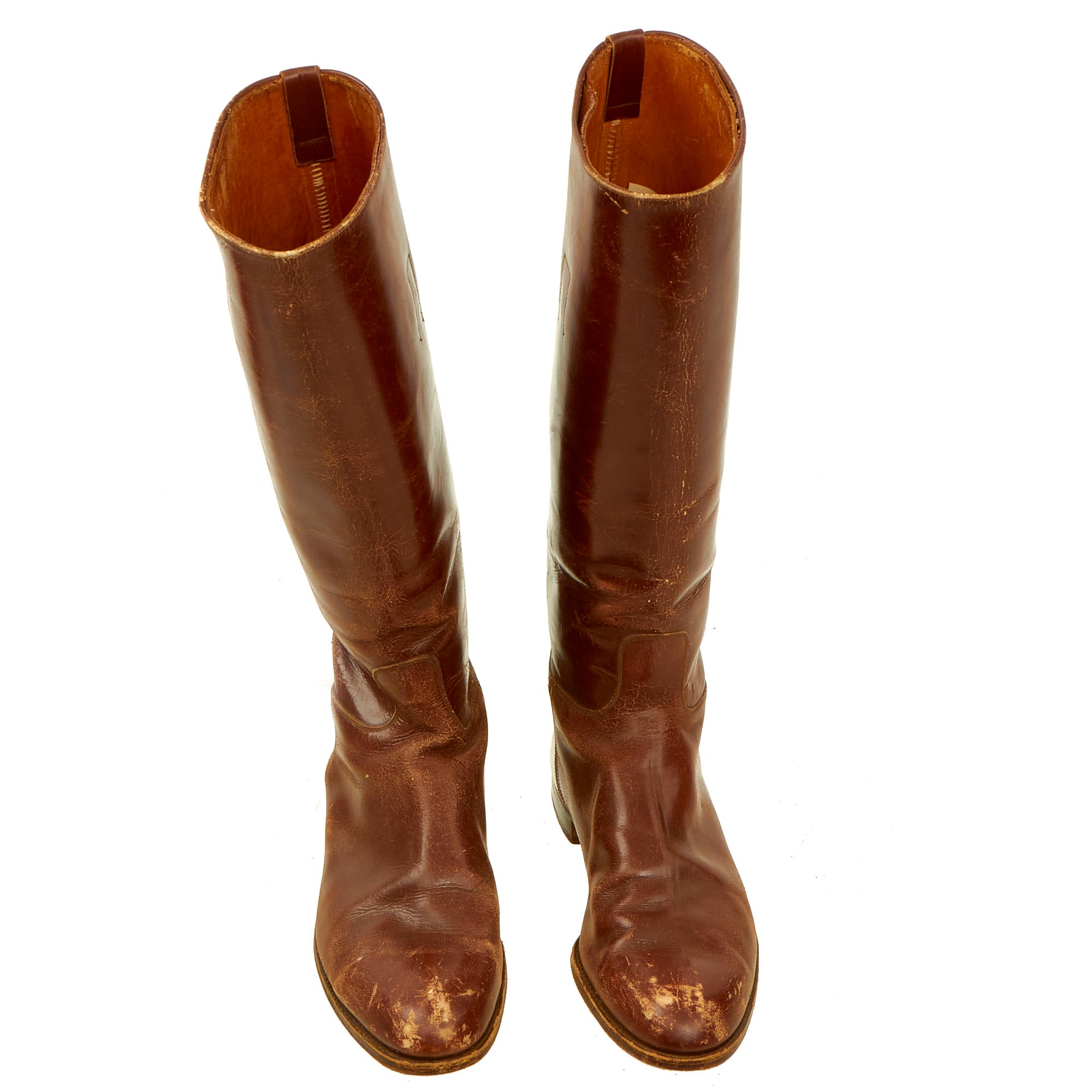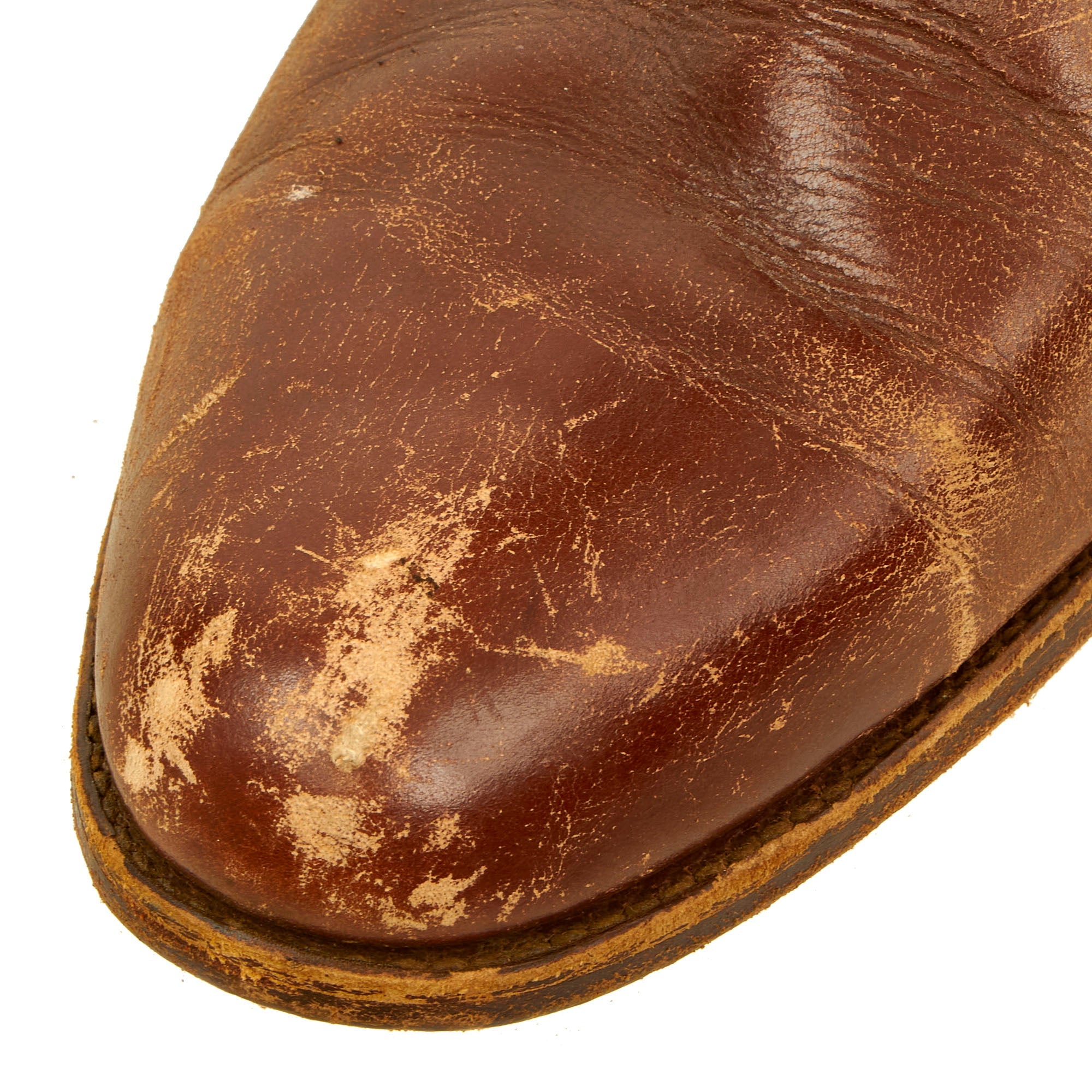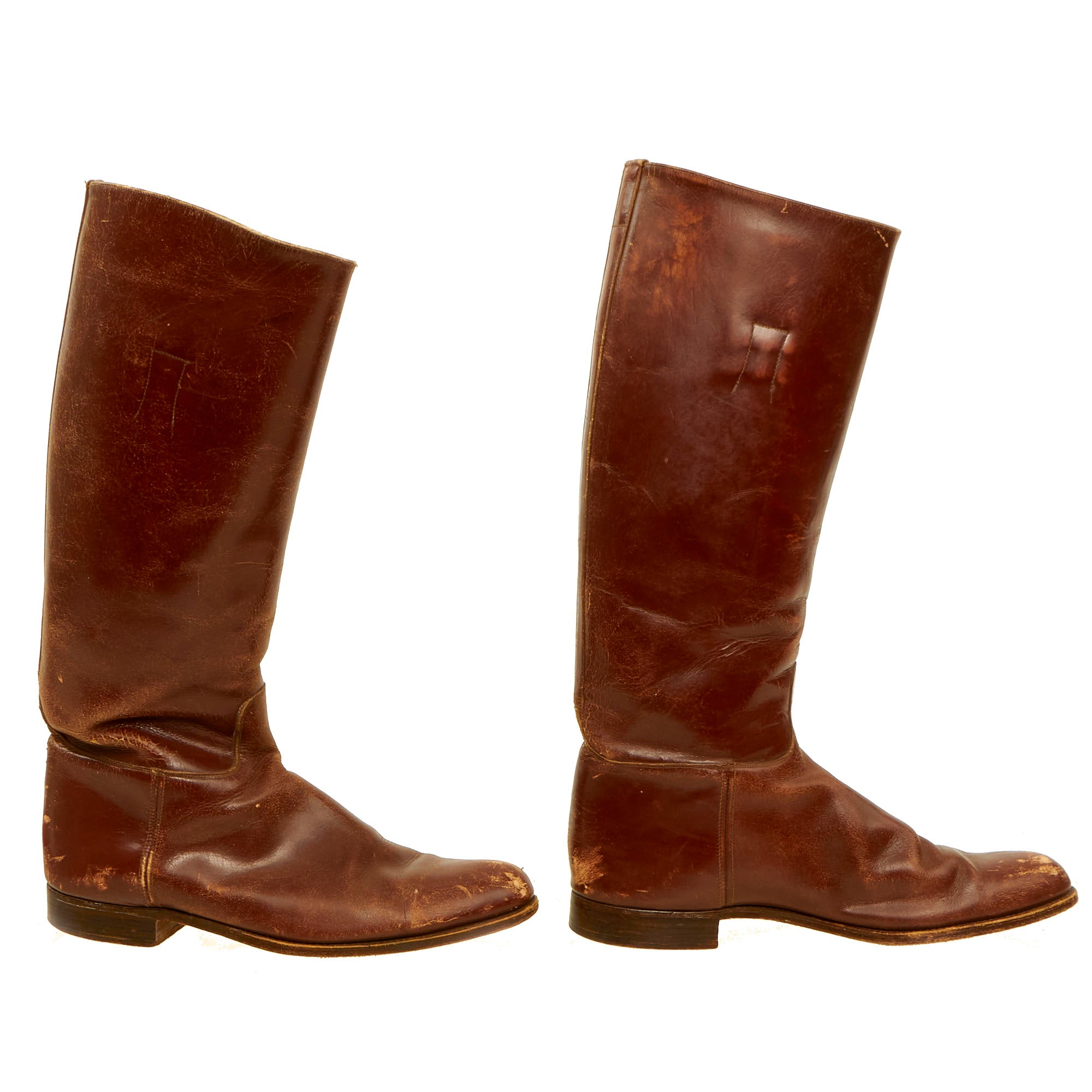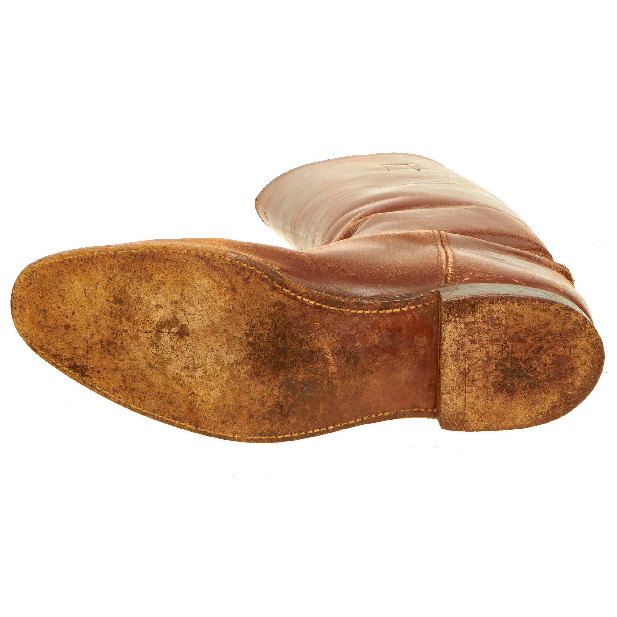 Original item: Only One Set Available. This is a very nice set of moderately used riding boots as worn by Cavalrymen during WWI. The boots appear to be a size 11 from the various number stamps on the interior and no maker’s labels are present.