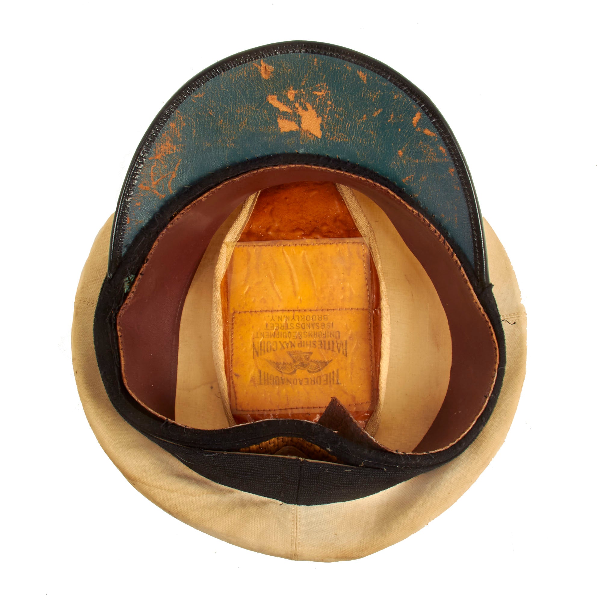 Original Item: Only One Available. Dating from World War One or the early inter-war period this is a rare United States Volunteer Life Saving Corps (USVLSC) officer's peaked visor cap featuring bullion wire insignia, gilt chine strap and buttons. The interior is maker marked: